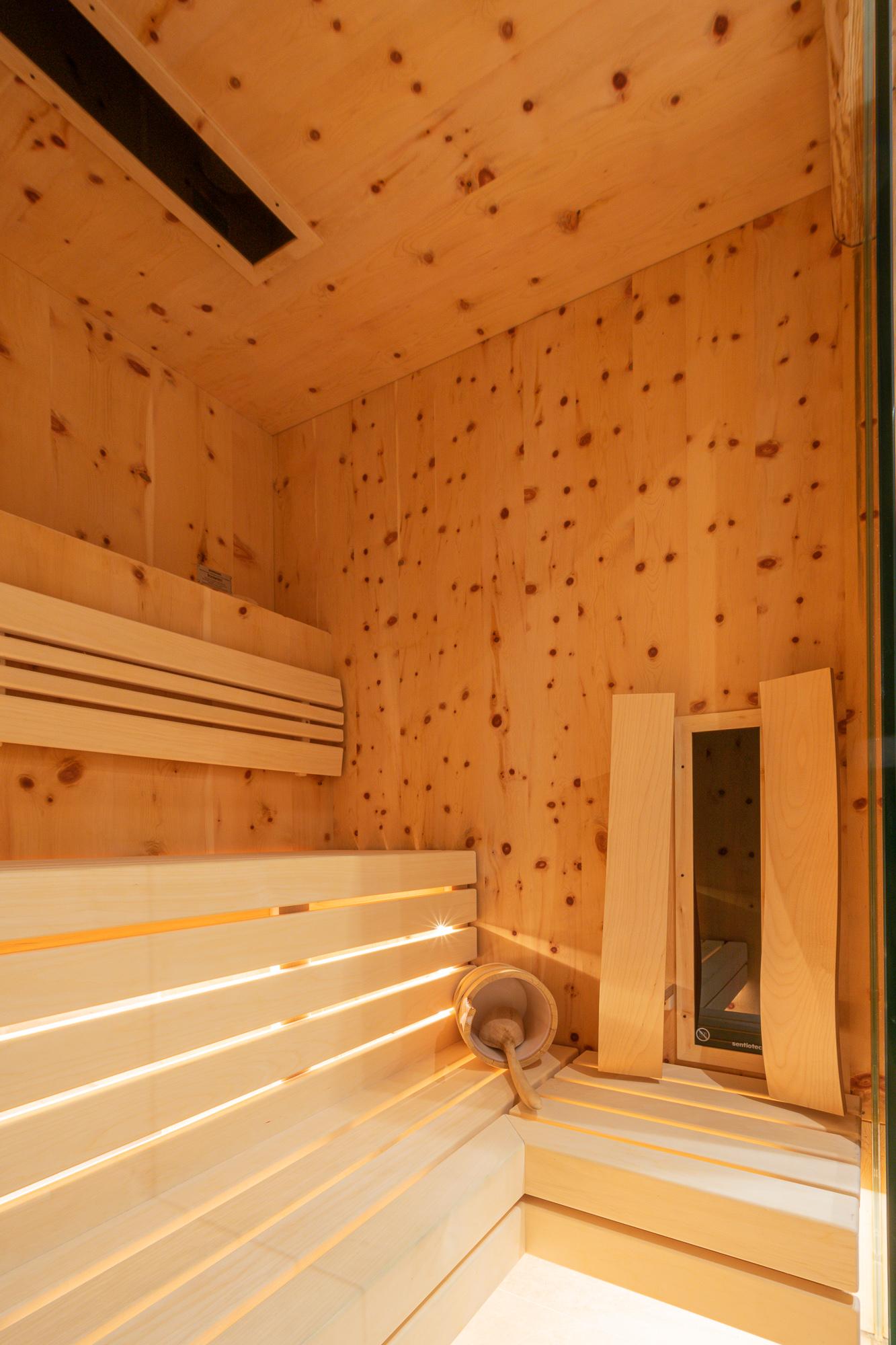 • Private Zirbensauna & Infrarotkabine im Badezimmer