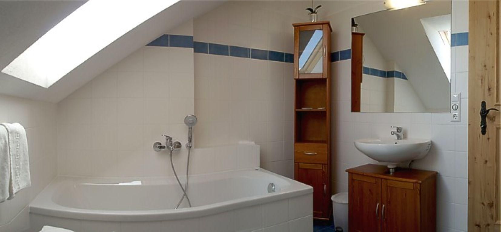 Ebenfalls auf dieser Etage sind 2 Badezimmer (1x mit einer Dusche und 1x mit einer Badewanne). Zwischen den beiden Badezimmern ist ein separates WC und eine Infrarotkabine.