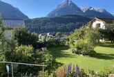 # STUDIO-Ferienwohnung WEST 22 m2: kleine, einfache Wohnung mit Schlaf- und Essbereich, kleine Küche, bietet eingeschränkte Bergsicht vom Sitzplatz aus.
