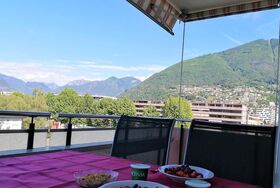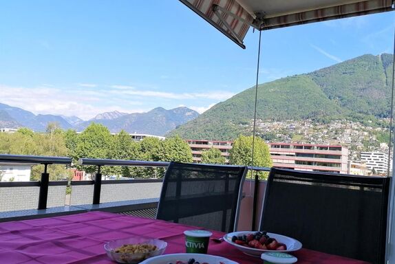 Am Stadtrand von Locarno, an idealer Lage Nähe Maggia-Delta und Lido, vermieten wir unsere gemütliche 2-Zimmer-Ferienwohnung (ca. 50 m2) für 2 Personen mit grossem Balkon im 4. Stock (Lift) eines Mehrfamilienhauses mit Blick nach Süden, Westen und Norden, gedeckter Parkplatz inklusive.