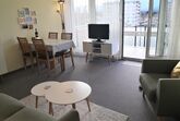 Wohnzimmer: Esstisch mit Stühlen, Sitzecke, TV-Möbel mit TV, WLAN,