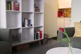 Sonstige Wohnzimmerausstattung (Wohnzimmer1): Kleine Bibliothek, Gesellschaftsspiele, Bügeleisen, Schuhputz- und Nähutensilien.