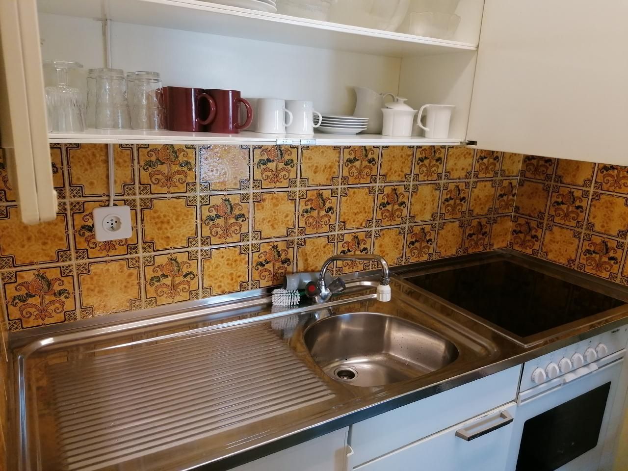 Küche: kleine, gut eingerichtete Küche, mit allem, was es braucht. Küchenkombination mit Kühlschrank