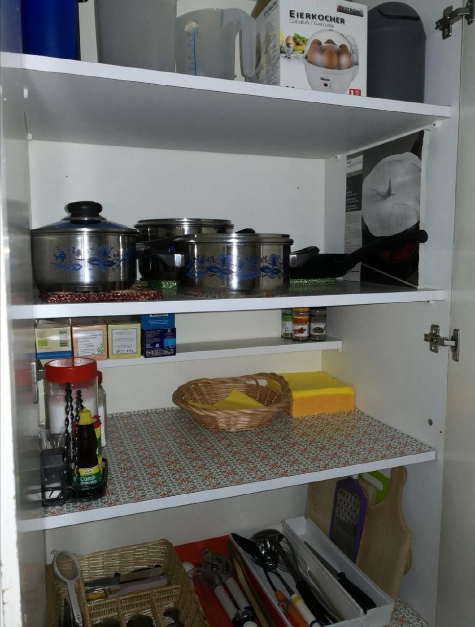 Wasserkocher und Eierkocher. Standard-Gewürze vorhanden.