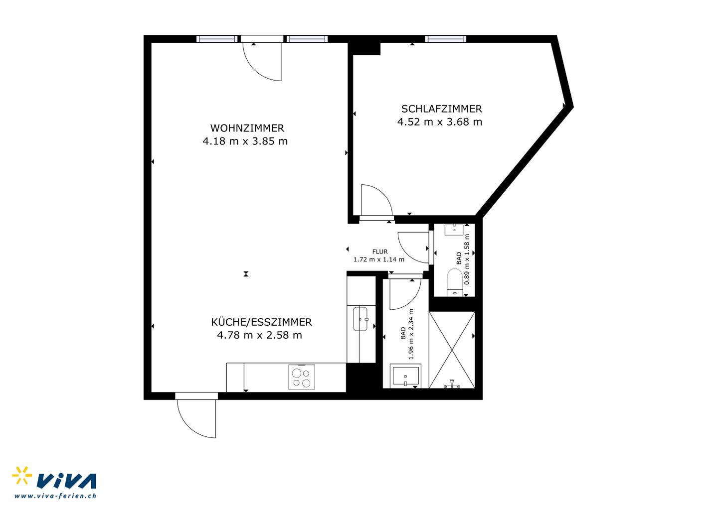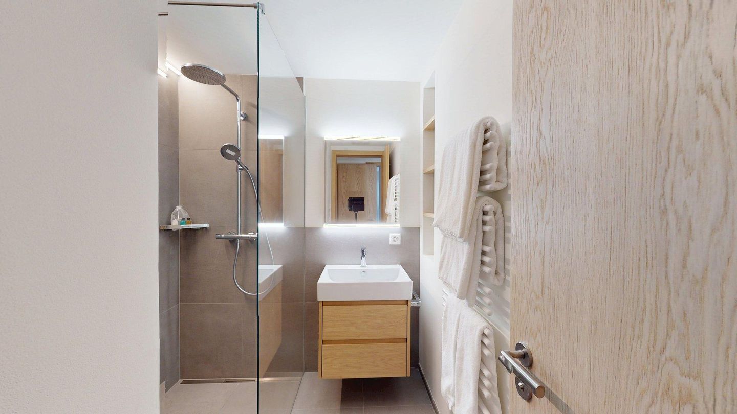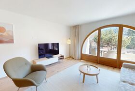 Die hochwertig renovierte 2.5-Zimmer-Ferienwohnung (Renovation Frühling 2025) überzeugt mit modernem Wohnkomfort, offenem Raumkonzept und stilvollem Wohn- und Küchenbereich (Achtung kein Lift). Ein Entertainment-System mit WLAN und TV mit zahlreichen Kanälen sorgt für beste Unterhaltung. Die Küche ist mit Induktionsherd, Backofen, Spülmaschine und Nespresso-Maschine bestens ausgestattet – ideal für gesellige Kochabende mit Blick auf die Berge. Das Schlafzimmer bietet ein bequemes Bett, frische Bettwäsche, einen Schreibtisch mit USB-Anschlüssen und viel Ruhe. Das moderne Bad verfügt über eine Dusche; das WC ist separat. Ski- und Fahrradkeller sowie Waschküche stehen zur gemeinschaftlichen Nutzung bereit. Ein Garagenplatz ist vorhanden.