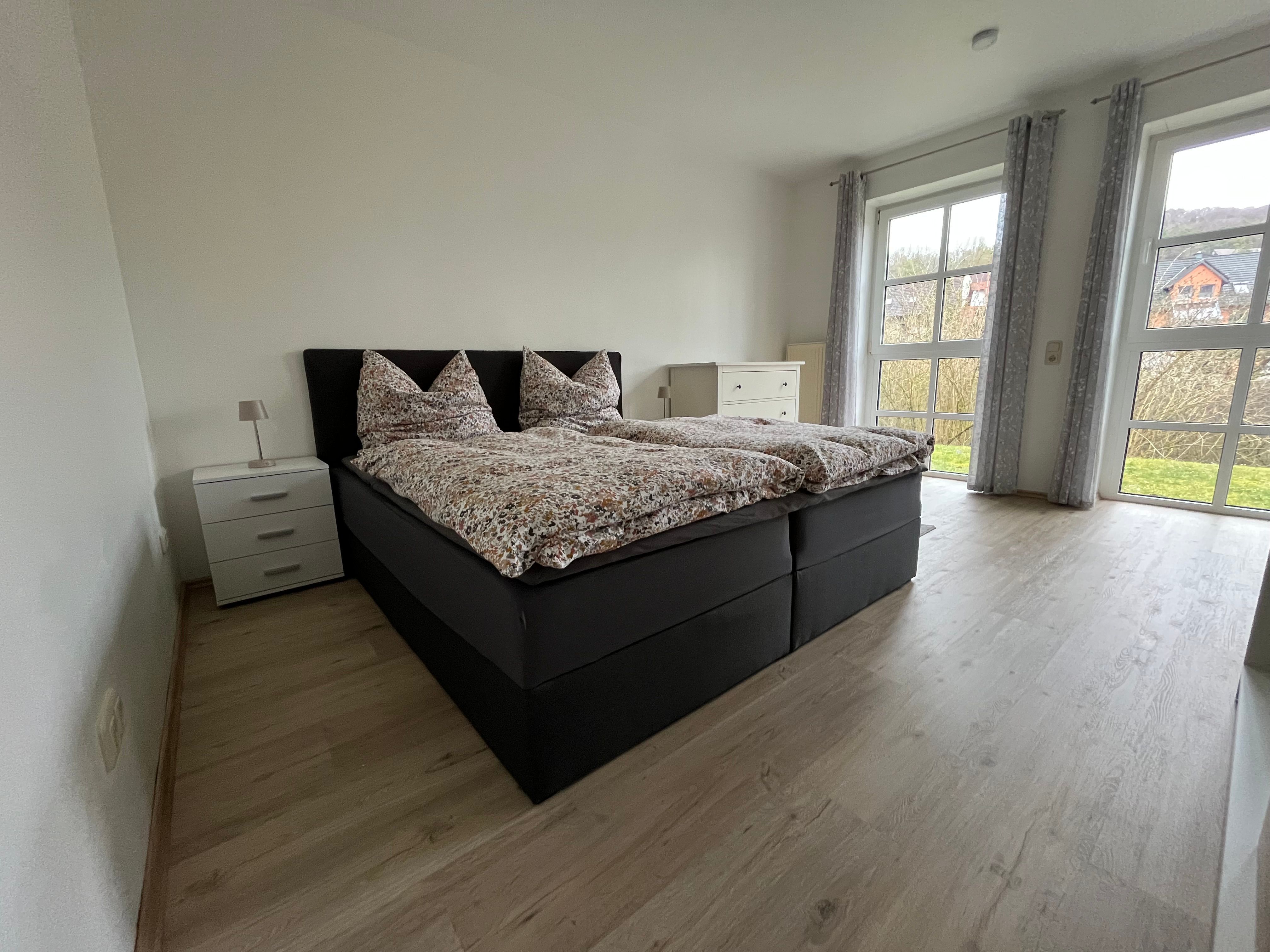 Es gibt ein Wohn-Esszimmer mit SAT/HD Fernseher, ein separates Schlafzimmer mit Boxspringbett, eine Küche und ein Bad mit Dusche und WC.