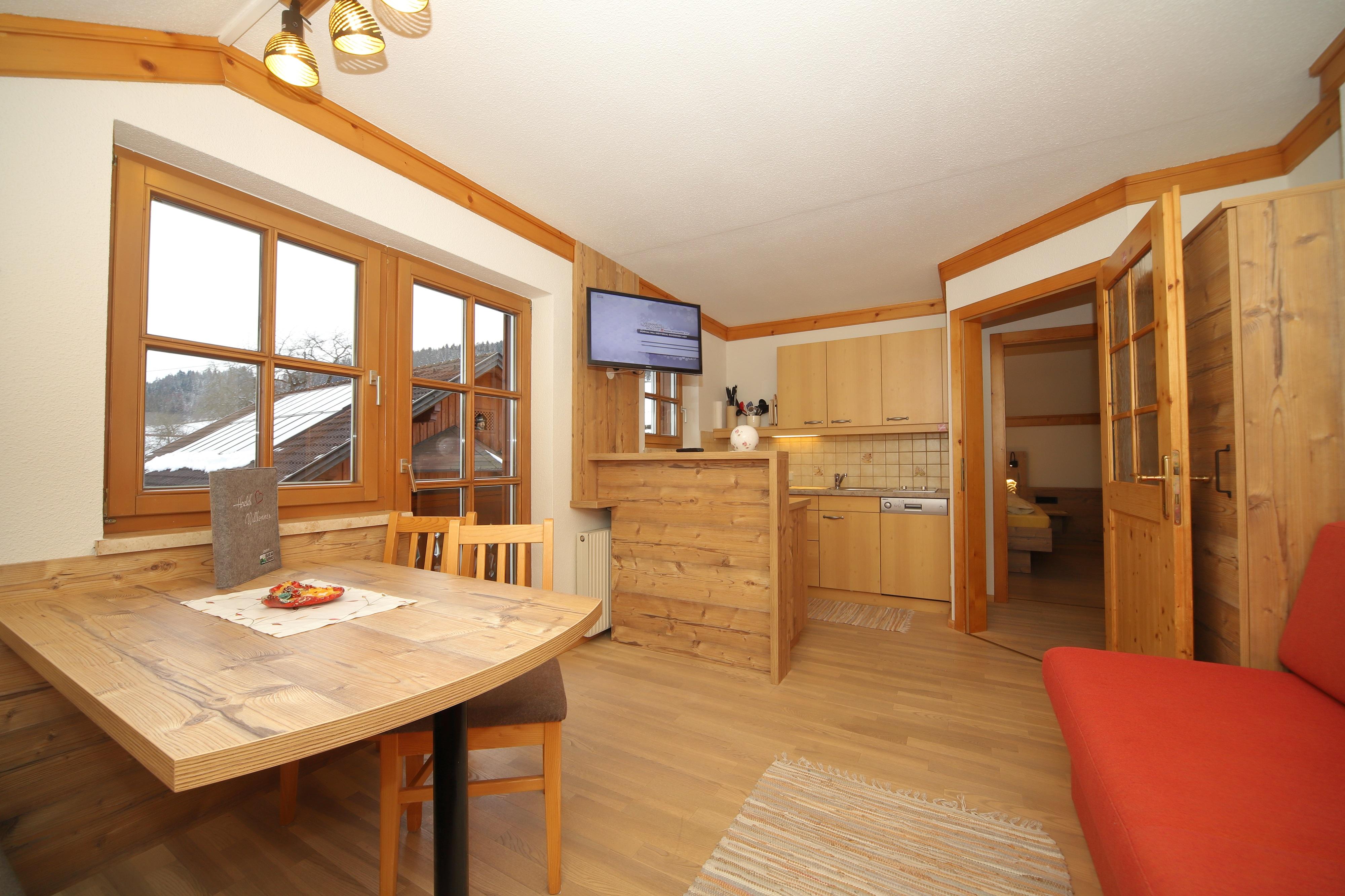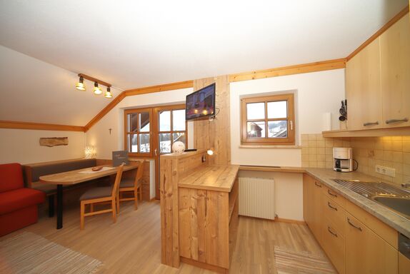 Dieses helle, freundliche Apartment. mit Blick Richtung Ramsau, Schladming und die Hochwurzen lädt zum Genießen und Ausruhen ein. Die Wohnung ist mit helle Fichtenholz-möbeln ausgestattet und liegt sehr sonnig und ruhig . Auf dem westseitig gelegenen Balkon kann man herrliche Sonnenuntergänge beobachten und dabei wunderbar entspannen. Apartment 6 ist ca. 40 m² groß, 1 Schlafraum, 1 Wohnschlafraum mit Küchenzeile, kleiner Vorraum, eigener Balkon, SAT TV und W-Lan. Geschirr und Besteck für 6 Pers. Mikrowelle, Wasserkocher, Kaffeemaschine und Geschirrspüler. Wir freuen uns auf Sie !