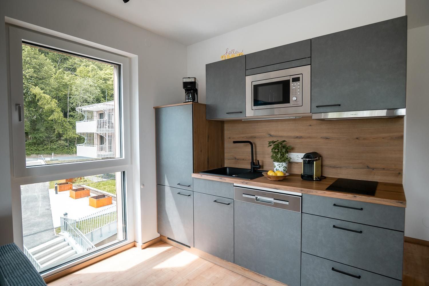 Das BLUE LAKE Apartment No12 liegt nur wenige Gehminuten vom Klopeiner See entfernt und befindet sich im 2. Stock. Das 36 m² große Studio bietet Platz für bis zu 4 Personen. Es verfügt über ein Doppelbett sowie eine Schlafcouch für 2 Personen im abgetrennten Wohnbereich. Zur Ausstattung gehören ein eigener Balkon, kostenloses WLAN und ein überdachter Parkplatz (Carport).