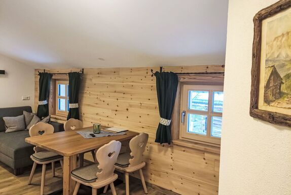 Dachsteinblick, 3-Zimmer-Wohnung 40 m2. Geschmackvoll und mit viel Holz eingerichtet: Wohn-/Esszimmer mit Esstisch und Sat-TV (Flachbildschirm). 1 Doppelzimmer. 1 Zimmer mit 2 Betten. Offene Küche (Backofen, Geschirrspüler, 4 Glaskeramikplatten, Wasserkocher, Mikrowelle, elektrische Kaffeemaschine). Dusche/WC. E-Heizung. Terrasse 9 m2. Terrassenmöbel. Sehr schöne Panoramasicht auf die Berge und die Landschaft. Zur Verfügung: Internet (WLAN, gratis). Bitte beachten: Nichtraucher-Unterkunft. 1 Haustier/Hund erlaubt. Rauchmelder. Bettwäsche (Bettbezüge und Spannleintücher) sind selbst mitzubringen! 50409-000120-2025
