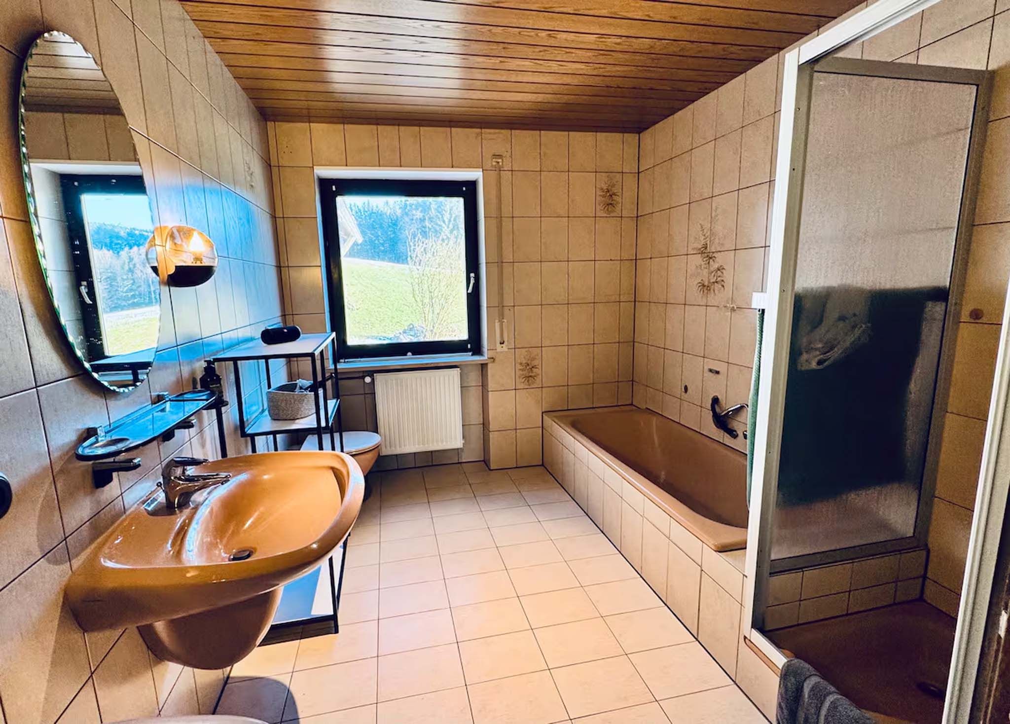In unserem Apartment NERO möchte man am liebsten gar nicht mehr aus den Federn, denn es bietet eine kuschelige Atmosphäre, die zum Entspannen einlädt. Doch die Freiheit lockt, und so könnt ihr im Sommer die Wälder zum Wandern erkunden oder im Winter Schneeschuhwandern. Das Apartment ist ideal für Freunde, Familien oder Gruppen, die fernab vom Alltag gemeinsame Zeit verbringen möchten. Genießt laue Abende auf dem großen Südwestbalkon mit fantastischen Sonnenuntergängen oder entspannt im gemütlichen Wohnbereich vor dem Kachelofen. Mit vier Schlafzimmern inkl. hochwertigen Boxspring-Doppelbetten, einem großzügigen Wohnbereich und einer voll ausgestatteten Küche bietet NERO alles, was ihr für einen komfortablen Aufenthalt benötigt. Das Badezimmer ist modern gestaltet und verfügt über eine Dusche sowie eine extra Badewanne. Separat gibt es ein Gäste-WC mit Waschbecken. Schnelles WLAN und Fußbodenheizung sorgen für zusätzlichen Komfort, während die ruhige Lage für erholsame Nächte sorgt.