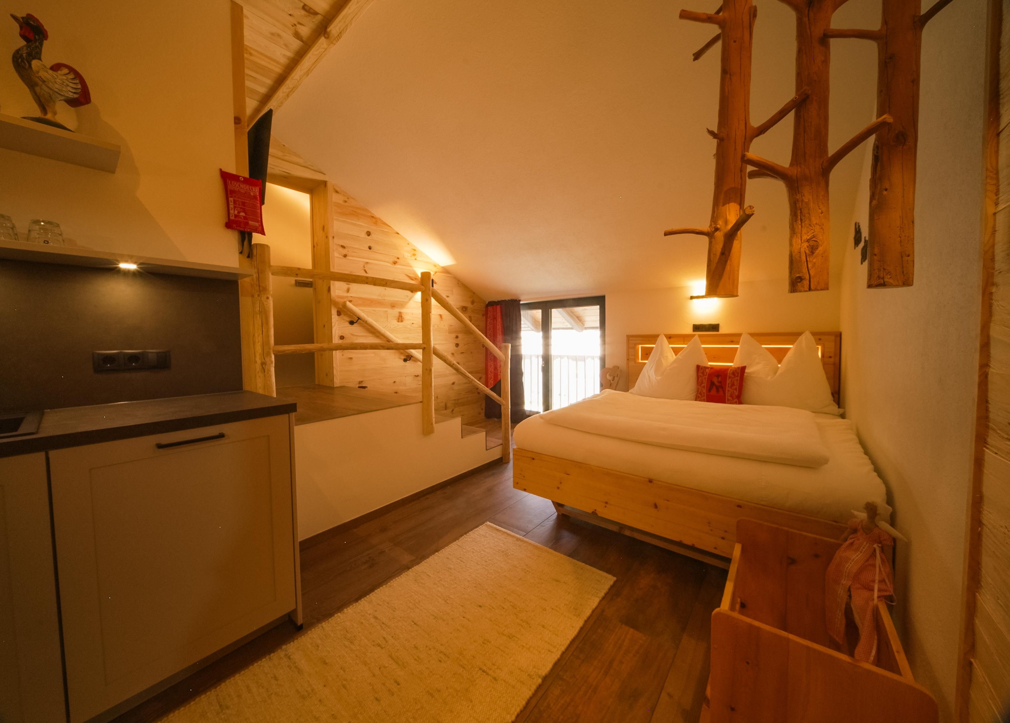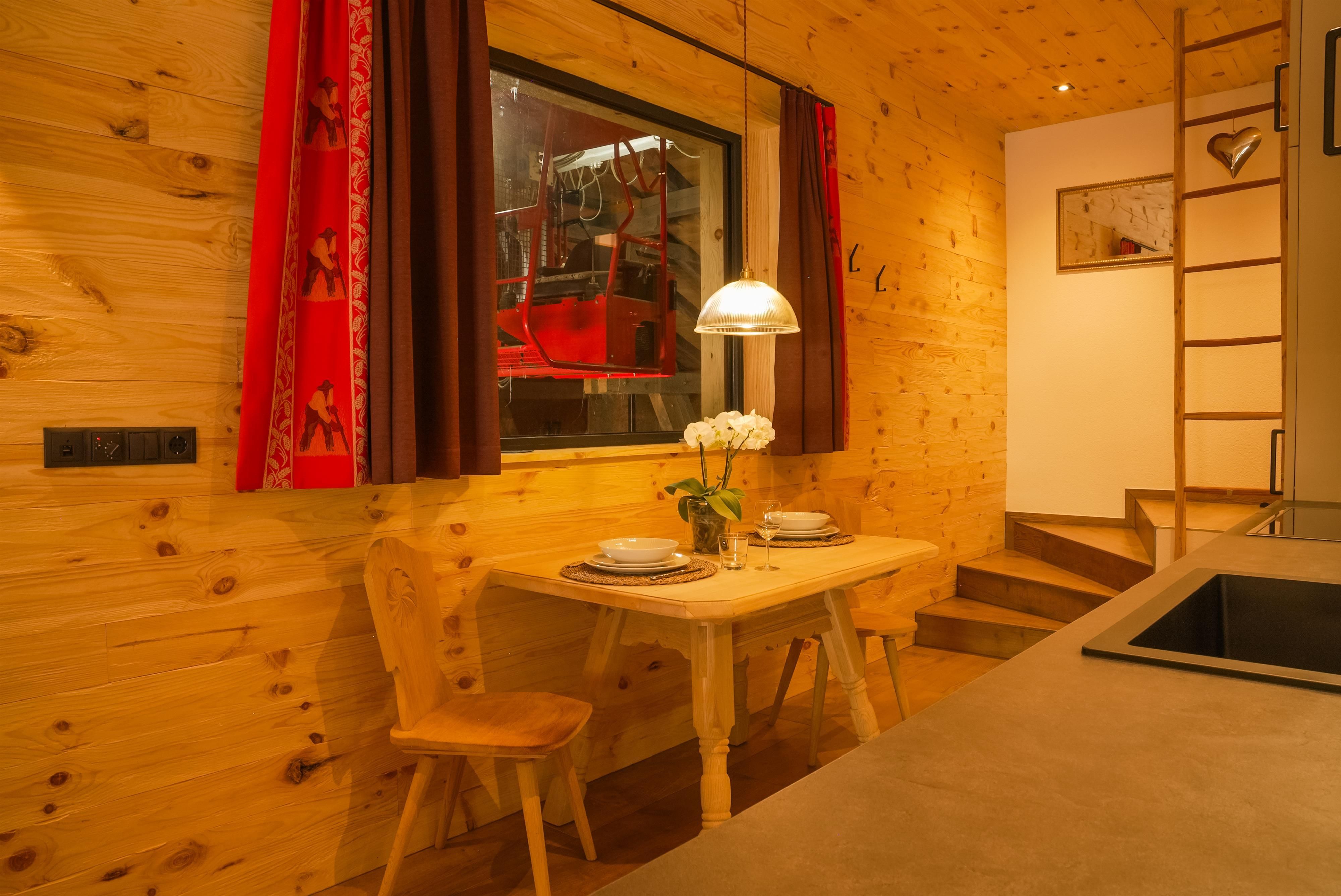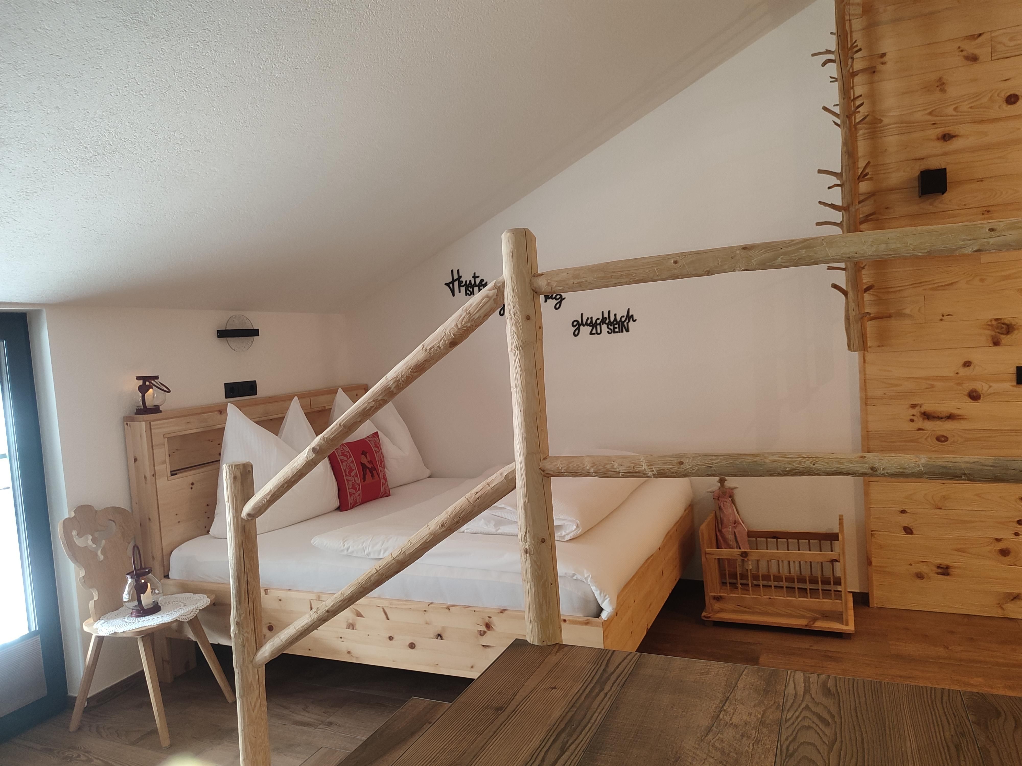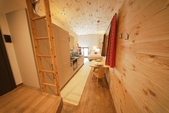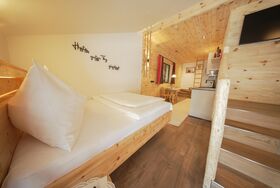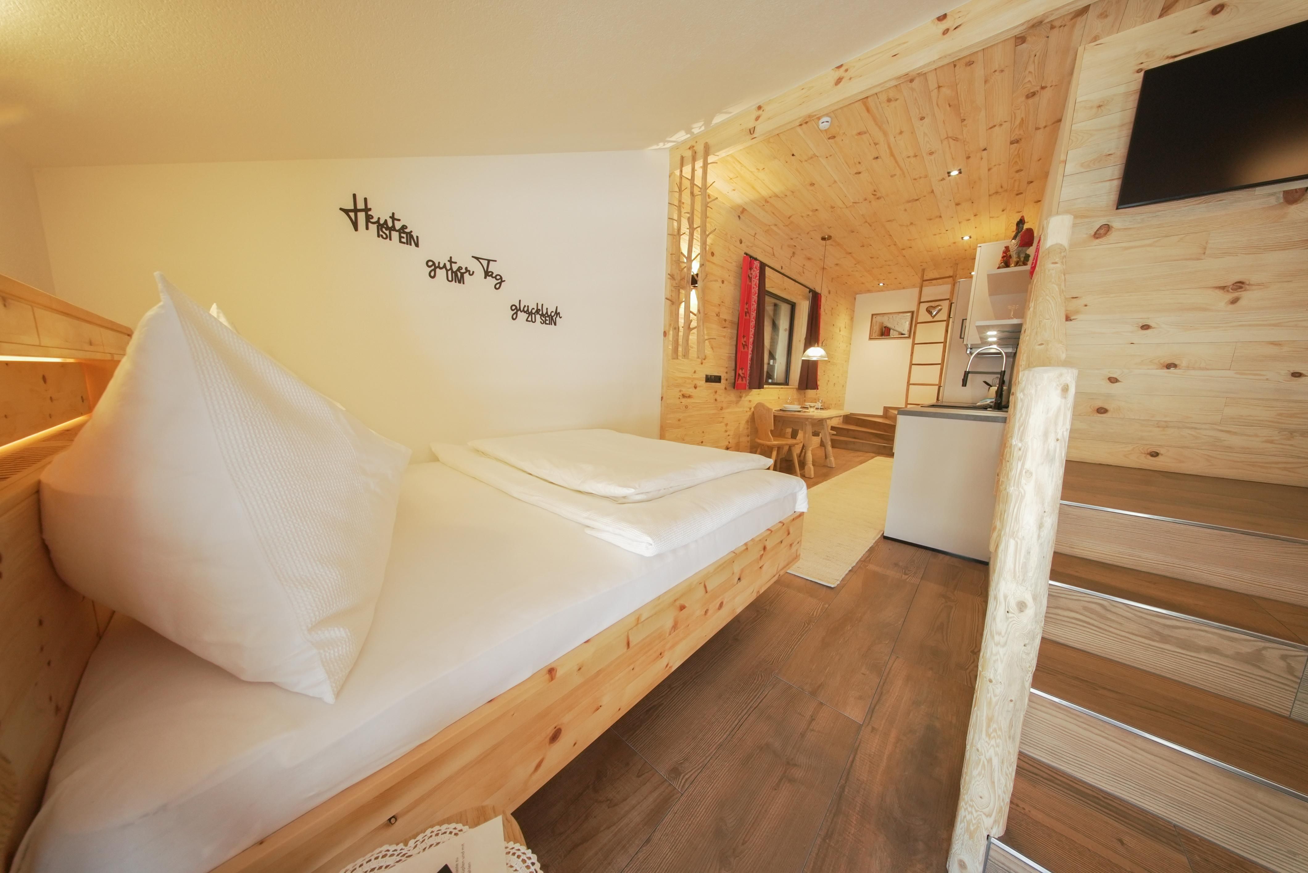 Ein besonderes Apartment ist unser Apartment Heuboden mit Blick in den Heuboden vom Wiglhof. Es ist ca. 30 m und bietet Platz für 1-2 Personen im 2. Obergeschoss. Die Wohnung verfügt über ein geräumigen Wohn- und Schlafraum mit einem 1,60 m großen ZIRMBETT für wohltuendem Schlaf. Eine großzügige Wohnküche mit E-Herd und Backrohr, Dunstabzug, Kühlschrank, Wasserkocher, Kaffeemaschine, Toaster, mit einer gemütlichen Sitzgelegenheit und Sat-TV.
