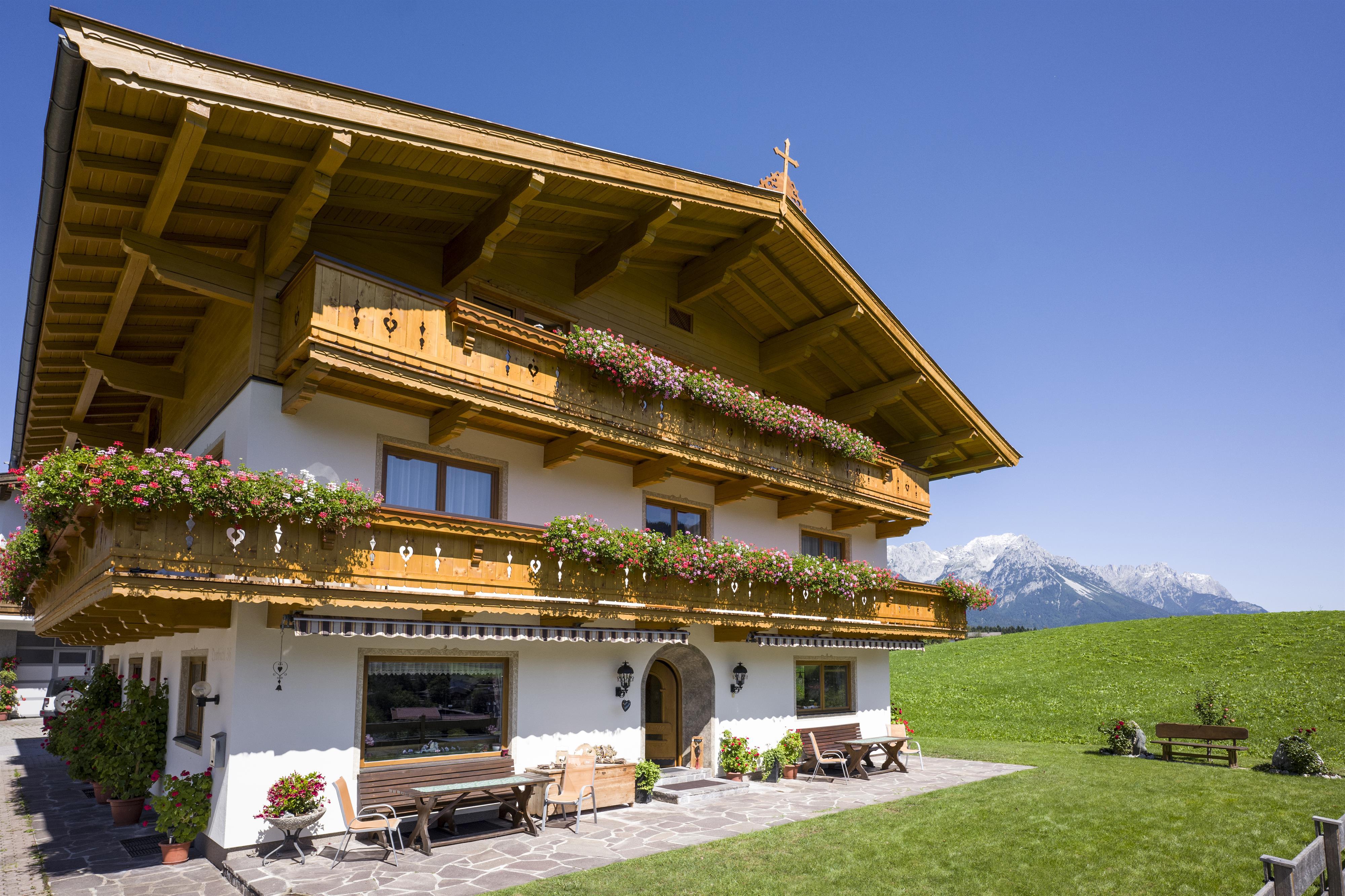 Eingebettet inmitten der Tiroler Bergwelt dem Wilden Kaiser, der Hohen Salve und dem Pölvengebirge ist unser Hof zentraler Ausgangspunkt zahlreiche Wandermöglichkeiten da der Wanderbus bzw. Skibus im Winter nur wenige Meter vom Hof entfernt ist.
