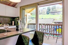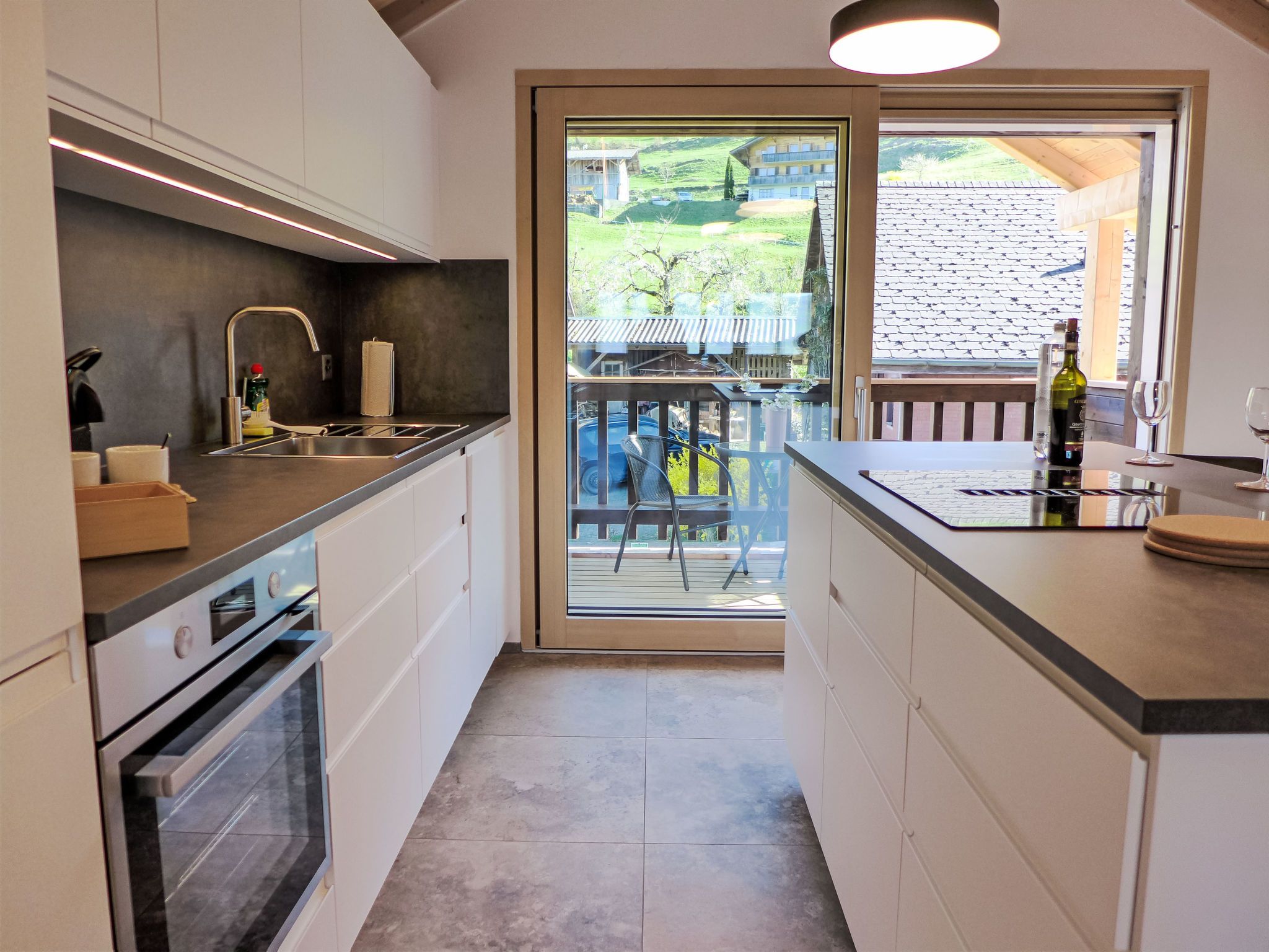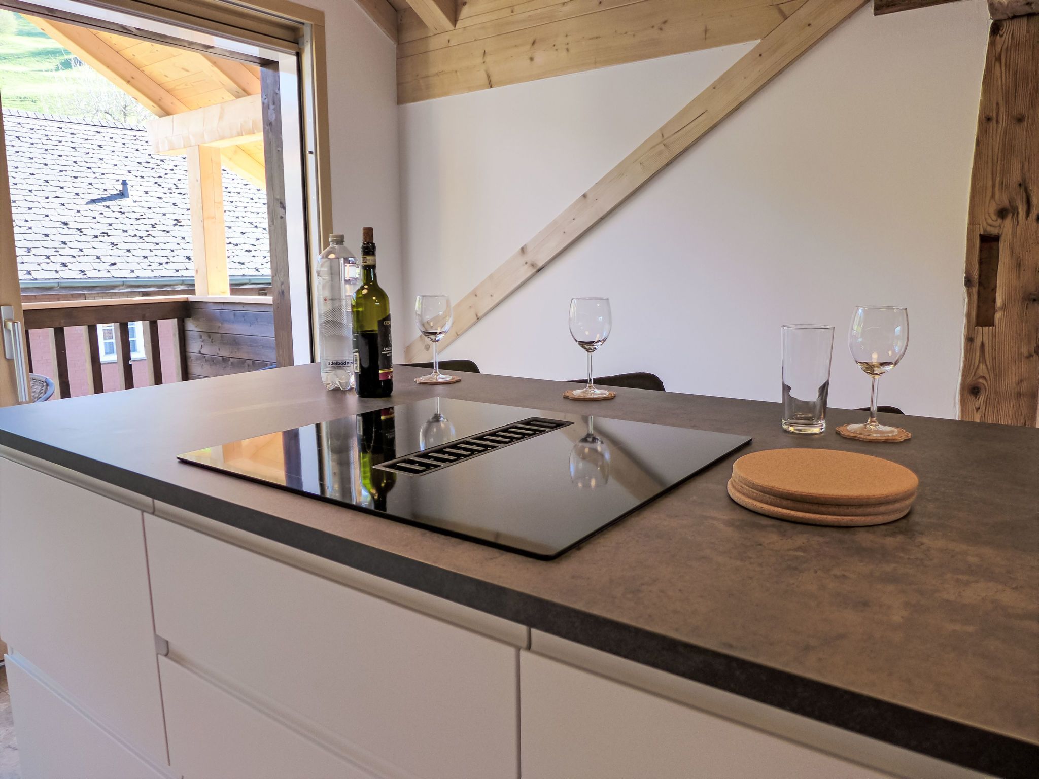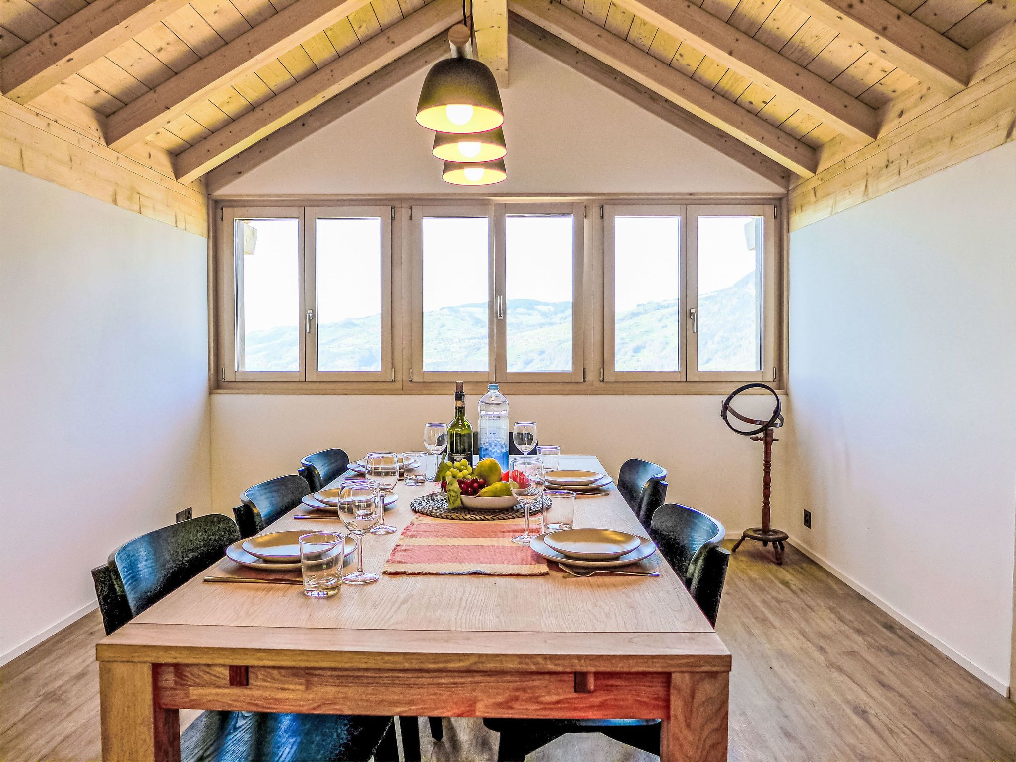 Huus Chloster, Apt Büel, 3-Zimmer-Wohnung 100 m2, im Dachgeschoss. Geräumig und hell, vollständig renoviert im Jahre 2025, sehr komfortabel und geschmackvoll eingerichtet: offenes grosses Wohn-/Esszimmer mit Panoramafenster mit Esstisch und Kabel-TV. 1 Zimmer mit Dachfenster mit 1 Doppelbett (2 x 90 cm, Länge 200 cm). 1 Zimmer mit 1 Diwanbett (80 cm, Länge 200 cm), 1 Doppelbett (2 x 90 cm, Länge 200 cm). Grosse, offene Küche (Geschirrspüler, 4 Induktionskochplatten, Toaster, Wasserkocher, Tiefkühler, elektrische Kaffeemaschine, Kapseln für die Kaffeemaschine (Nespresso) extra, Racletteofen, Kochinsel, Fondue Set (Chinoise, Käse)). Ausgang zum Balkon. Dusche/WC. Fussbodenheizung. Solarstrom. Balkon, Südlage. Herrliche Panoramasicht auf den See, die Berge und die Landschaft. Zur Verfügung: Kinderhochstuhl, Babybett bis 2 Jahre (extra), Haartrockner. Internet (WLAN, gratis). Parkplatz (1 Auto). E-Ladestation. Bitte beachten: nicht geeignet für Kinder unter 7 Jahren. Nichtraucher-Haus. Feuerlöscher.