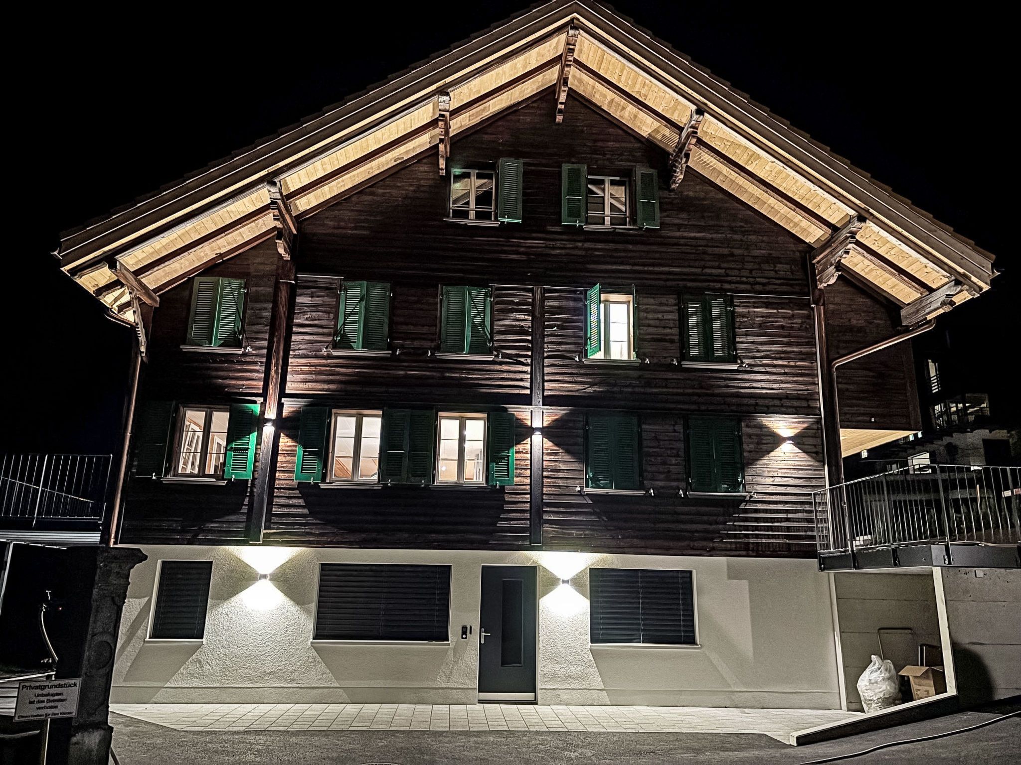 Krattigen 12 km von Interlaken: Grosses, sehr schönes Chalet Huus Chloster, Baujahr 1802, renoviert im Jahre 2025. Ruhige, sonnige Lage am Hang. Im Hause: Zentralheizung. Schmale Zufahrt bis zum Haus. Parkplatz beim Haus. E-Ladestation. Lebensmittelgeschäft 250 m, Supermarkt 5 km, Einkaufszentrum 12 km, Restaurant 250 m, Bushaltestelle 200 m, Bahnstation Spiez 5 km, Freibad 7 km, Hallenbad 2.8 km, Strandbad 4.5 km, See Thunersee 4.5 km. Sporthafen 7 km, Golfplatz (18 Loch) 10 km, Wanderwege ab Haus 10 m, Skisportanlagen 4 km. Nahe gelegene Sehenswürdigkeiten: Interlaken, Blausee. Bekannte Skigebiete sind gut erreichbar: Adelboden - Lenk, Jungfrau Region. Bekannte Seen in der Umgebung sind gut erreichbar: Thunersee. Bitte beachten: kein Fahrstuhl vorhanden. Jugendgruppen nur auf Anfrage.
