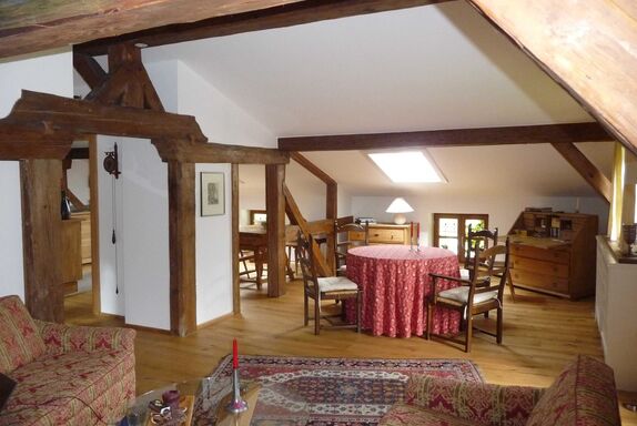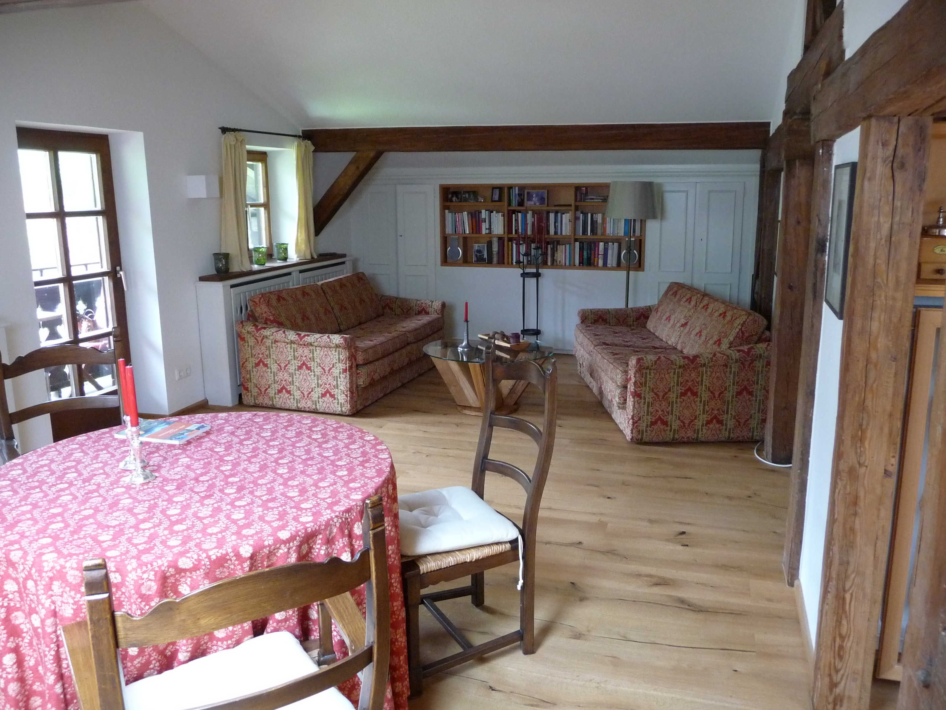 „Ferienwohnung am Weißachsteg“. Aufwändig modernisierte Ferienwohnung in altem Bauernhaus direkt am Naturschutzgebiet.
