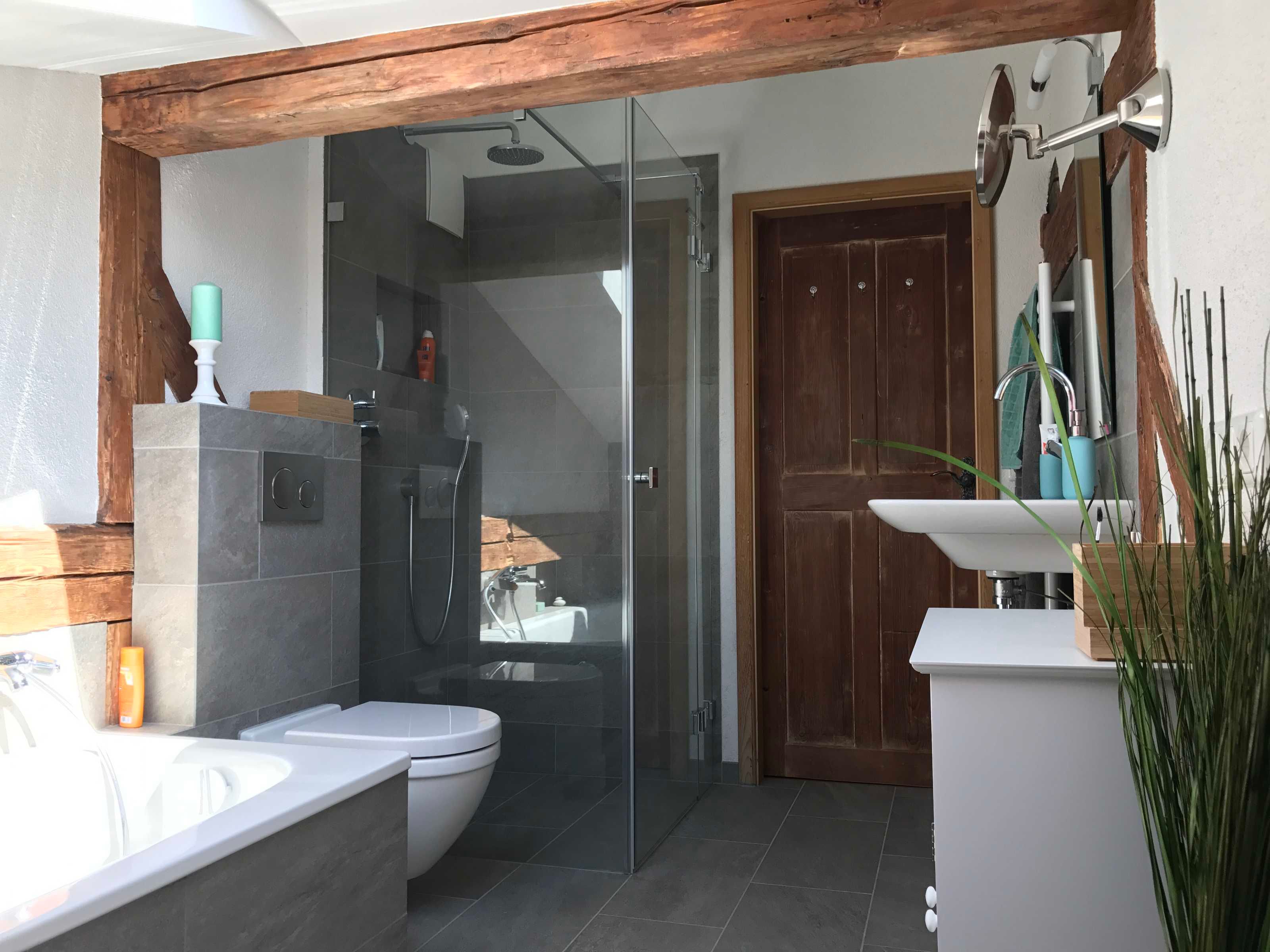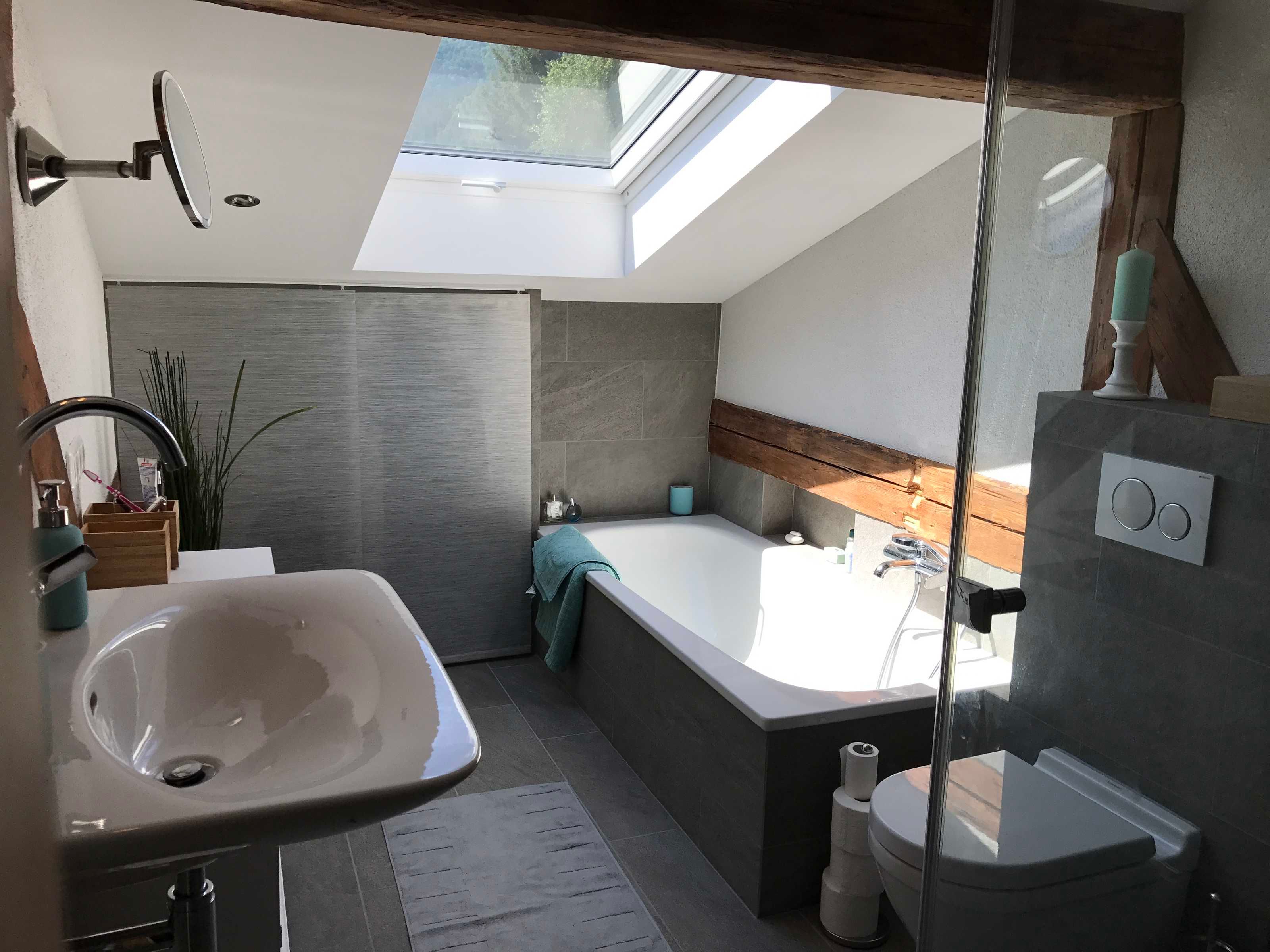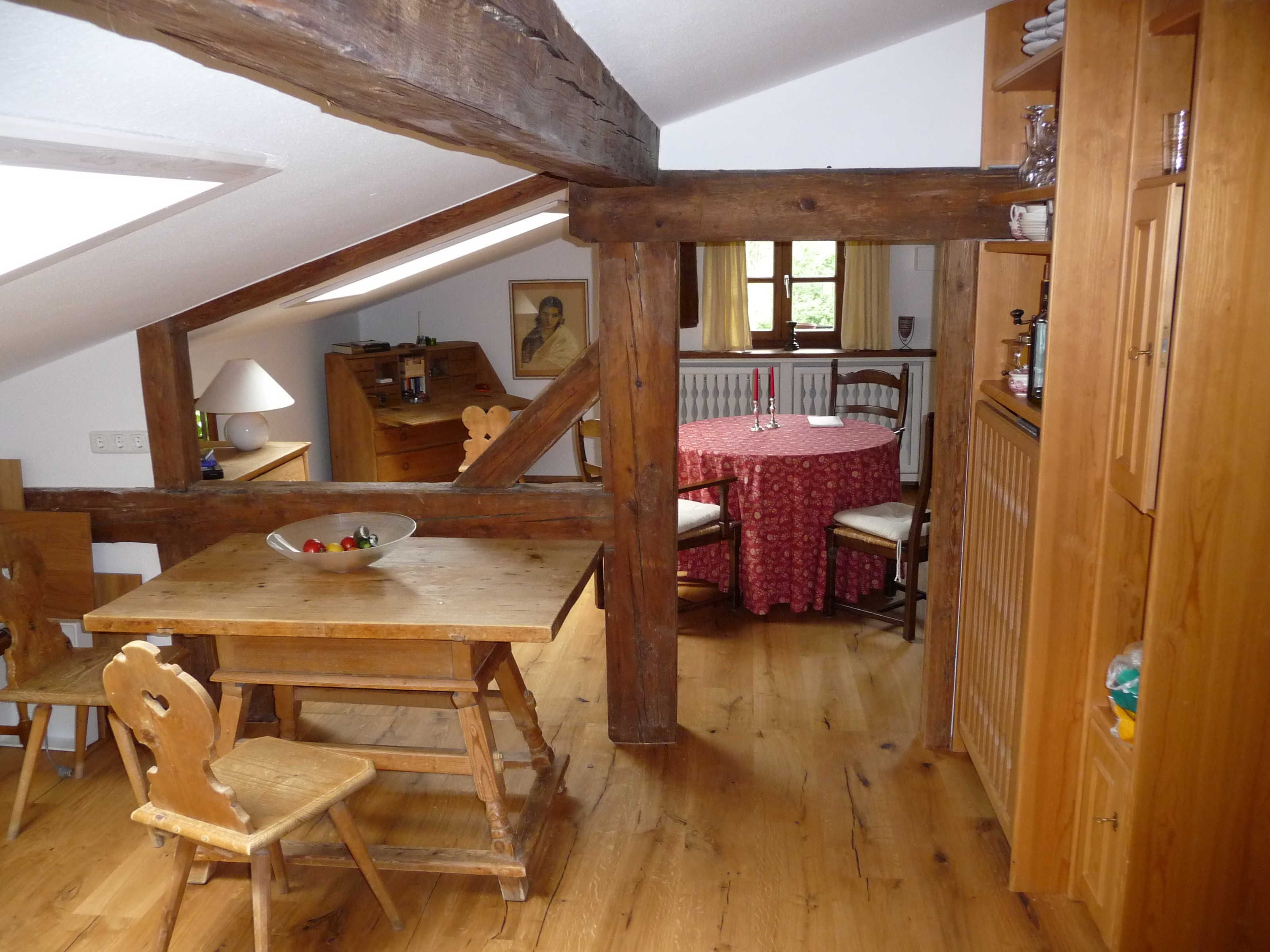 Herzlich willkommen in unserem bildschönen, historischen Bauernhaus in Kreuth-Oberhof, am äußersten Rand von Rottach-Egern. Die Dachgeschosswohnung wurde 2017 aufwändig renoviert und vereint modernen Komfort mit ländlichem Flair (alte Holzbalken und neue Eichendielen). Großzügiges Wohnzimmer mit zwei Sofas, Essecke und Sekretär. Gemütliches Schlafzimmer mit Doppelbett (180x200m). Modernes Bad mit ebenerdiger Dusche und großem Fenster, offene Eichenholzküche mit hochwertiger Ausstattung (Induktionsherd, Spülmaschine, Mikrowelle, Nespresso-Maschine). Es gibt schnelles WLAN und eine kleine Auswahl von Belletristik. Ein Teil des Gartens kann genutzt werden, hier gibt es auch zwei bequeme Sonnenliegen. Gäste können die Garage nutzen oder eine Parkbucht vor der Einfahrt.