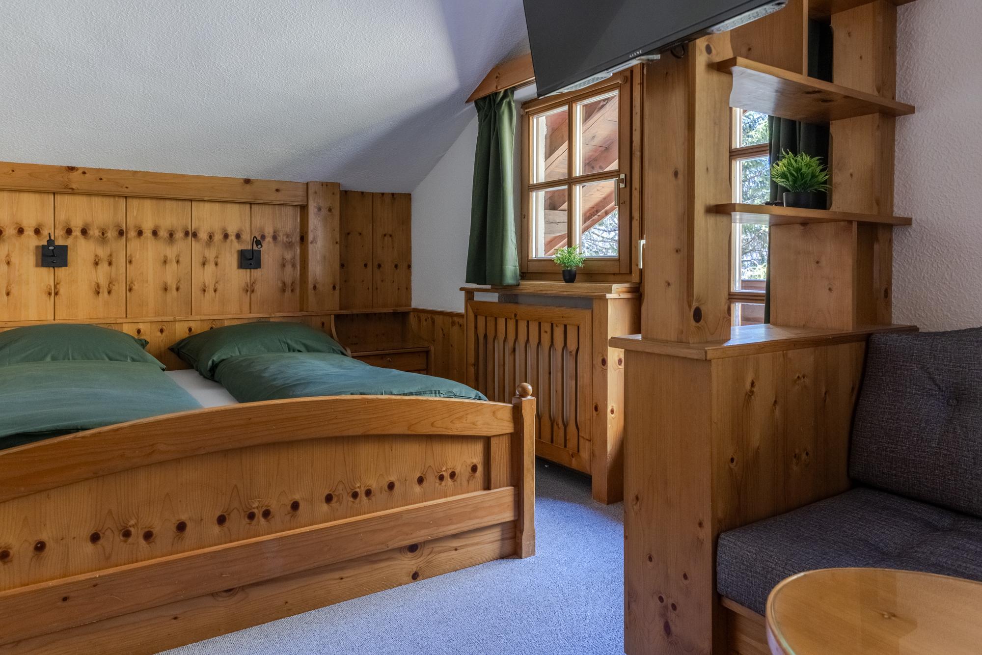 Doppelzimmer (ca. 25 m²) mit gemütlicher Couchecke (Schlafmöglichkeit für ein Kind) und Smart-TV mit Satellitenempfang. Das Badezimmer ist mit Dusche und WC ausgestattet. Der möblierte Balkon eröffnet einen herrlichen Blick auf das Panorama der Ötztaler Alpen – ideal, um zur Ruhe zu kommen und die Umgebung in vollen Zügen zu genießen.
