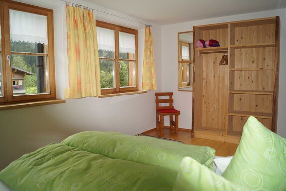 Wohnung 1 ist großzügig eingerichtet und hat ca. 60m². Sie besteht aus einer Wohnküche mit Couch und zwei separaten Doppelbettzimmern und einer Dusche mit WC. Bettwäsche, Handtücher, Geschirr und Kaffeemaschine sind vorhanden. Auf Wunsch stellen wir Ihnen gerne ein Reisebett zur Verfügung.