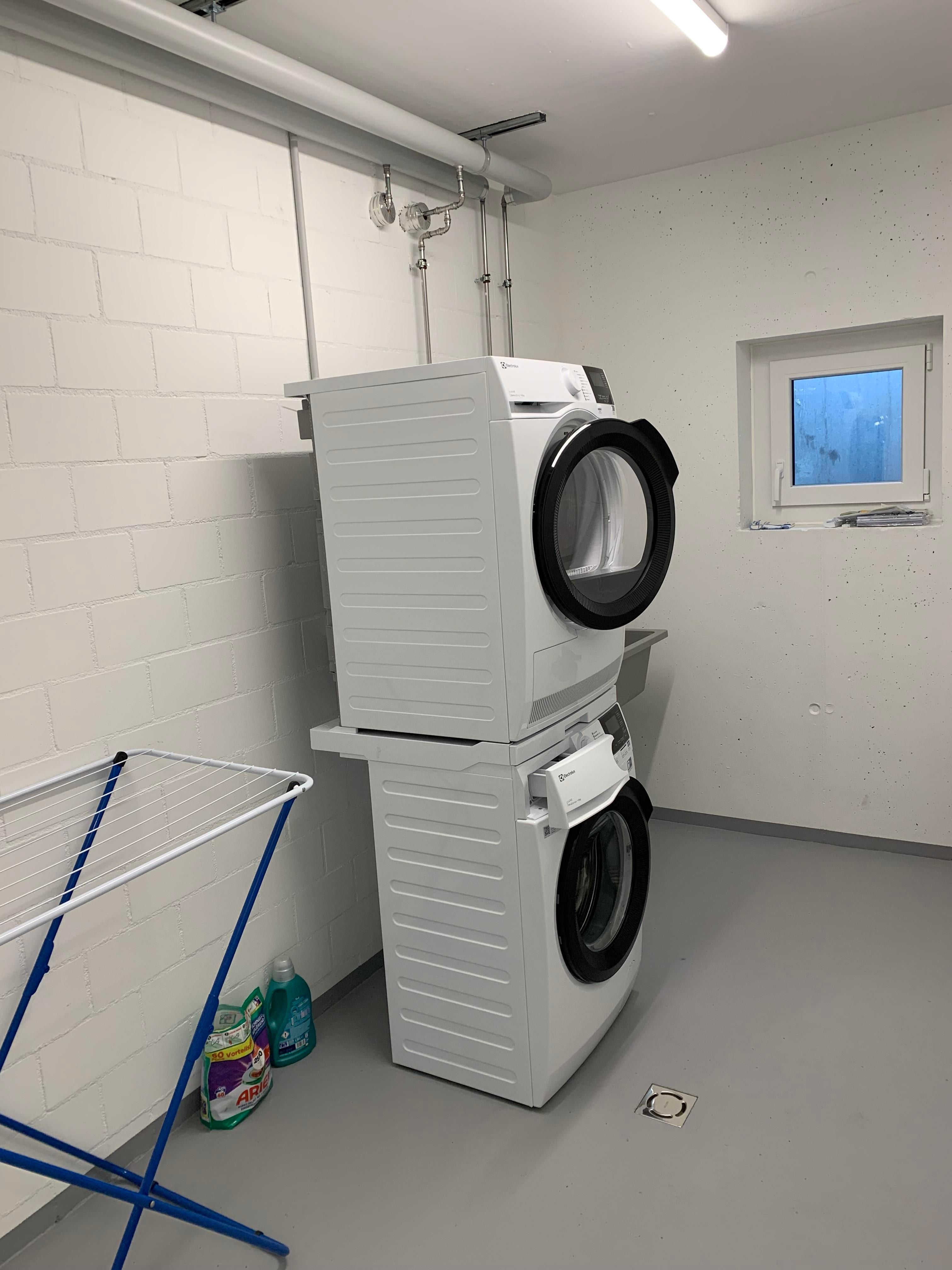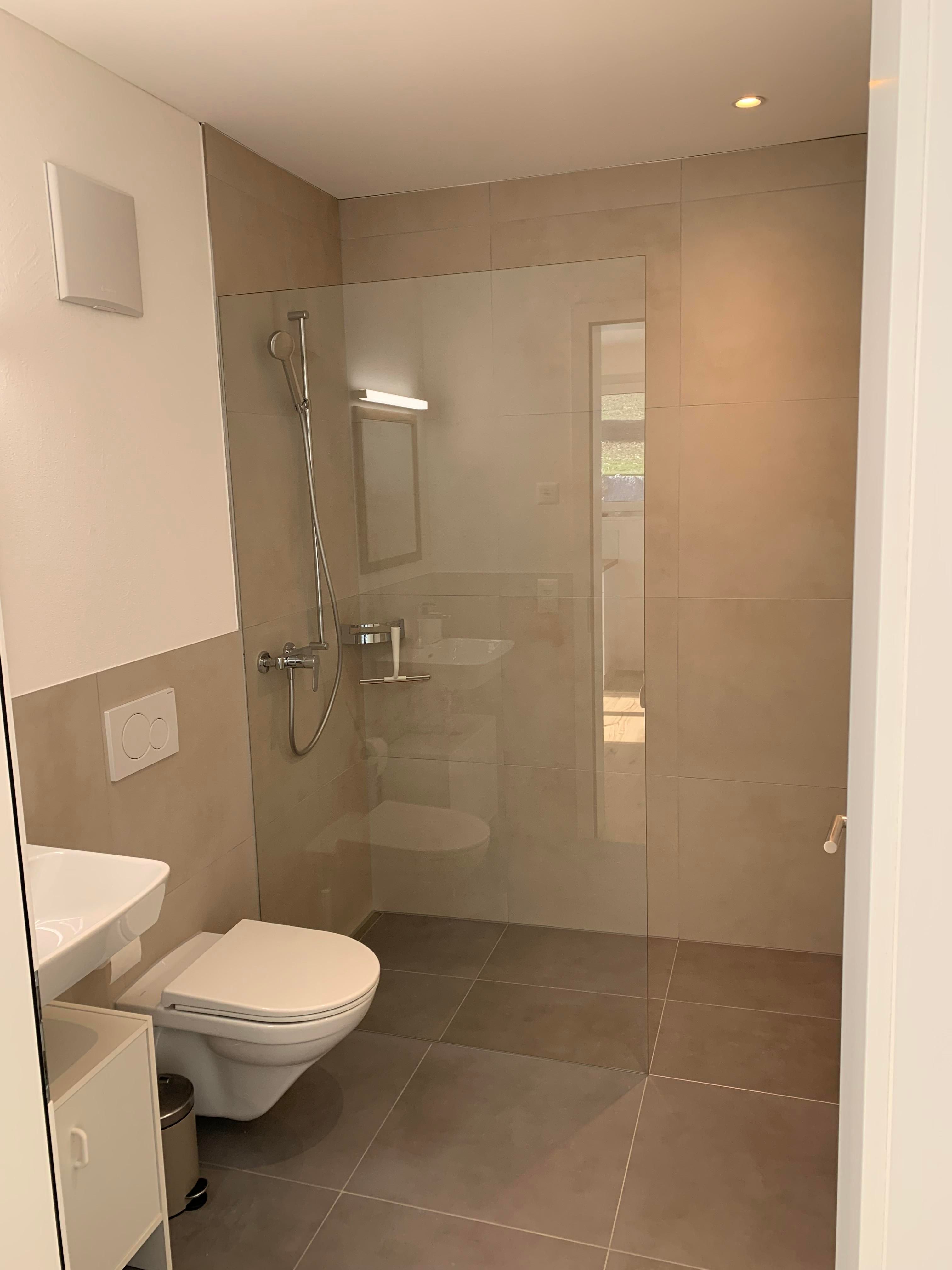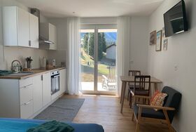 Der Fernseher ist schwenkbar, und die Küche ist vollständig ausgestattet. Das Badezimmer verfügt über ein WC und eine Dusche. Zudem stehen ein Bikeraum sowie ein Skiraum zur Verfügung. Die Nutzung der Waschmaschine und des Trockners ist inklusive, ebenso wie TV, WLAN und Strom. Ein kleiner Kellerabteil kann auf Anfrage genutzt werden.