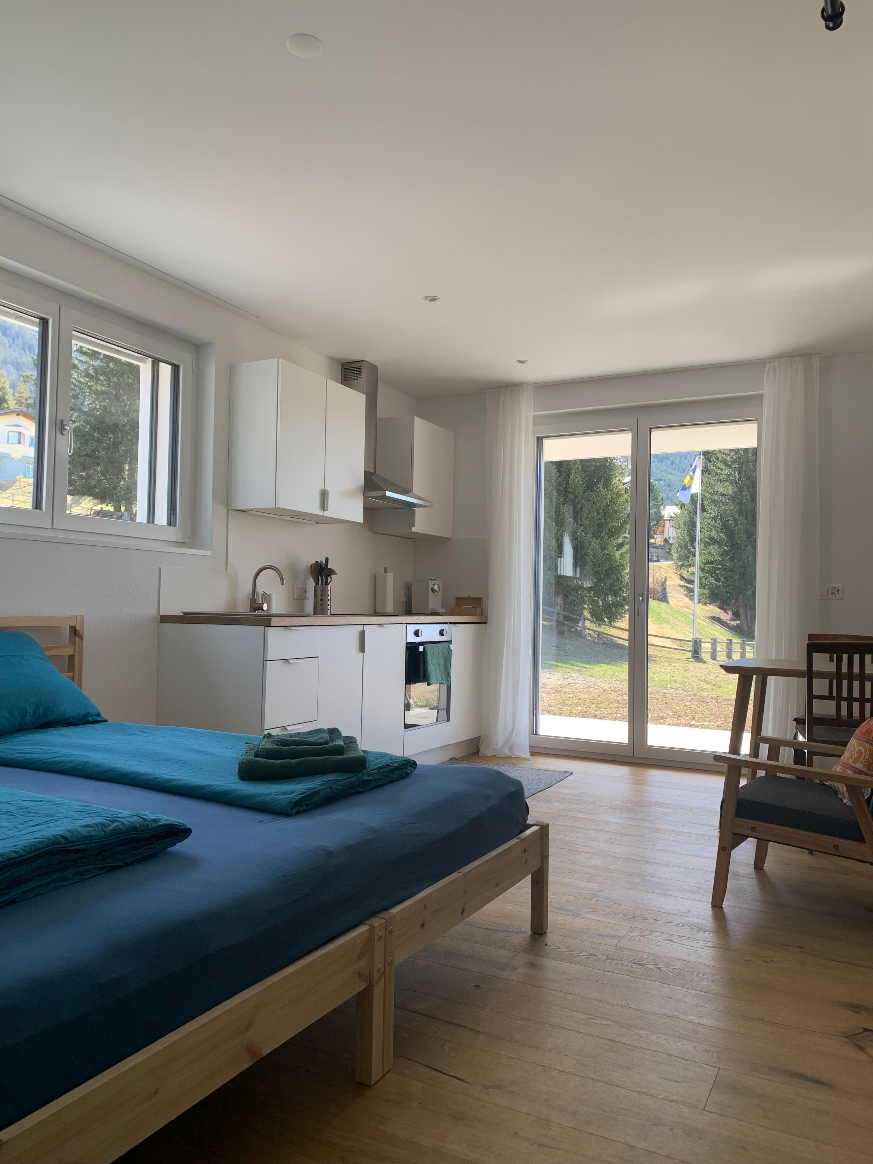 Das kleine Studio liegt in erhöhter, sonniger Lage im Herzen von Lenzerheide, direkt im Dorfzentrum. Es befindet sich unmittelbar an der Dorfpiste und bietet einen Parkplatz. Die Skipiste sowie Wander- und Bikewege beginnen direkt vor der Tür. Geniesse die atemberaubende Aussicht und den herrlichen Blick auf die umliegenden Berge.