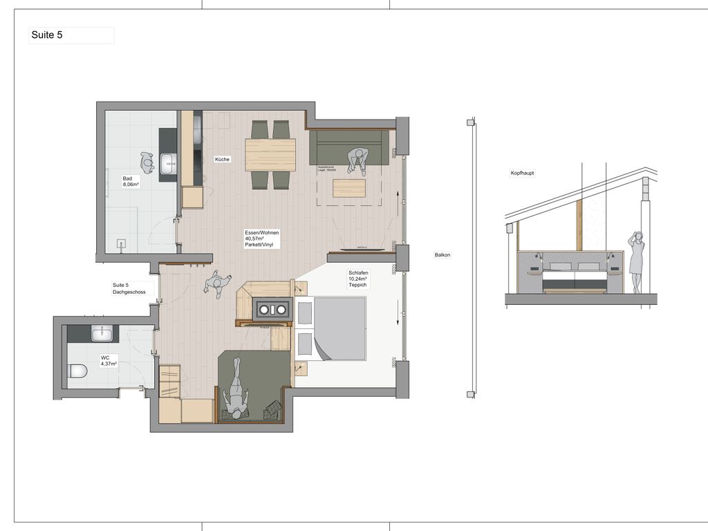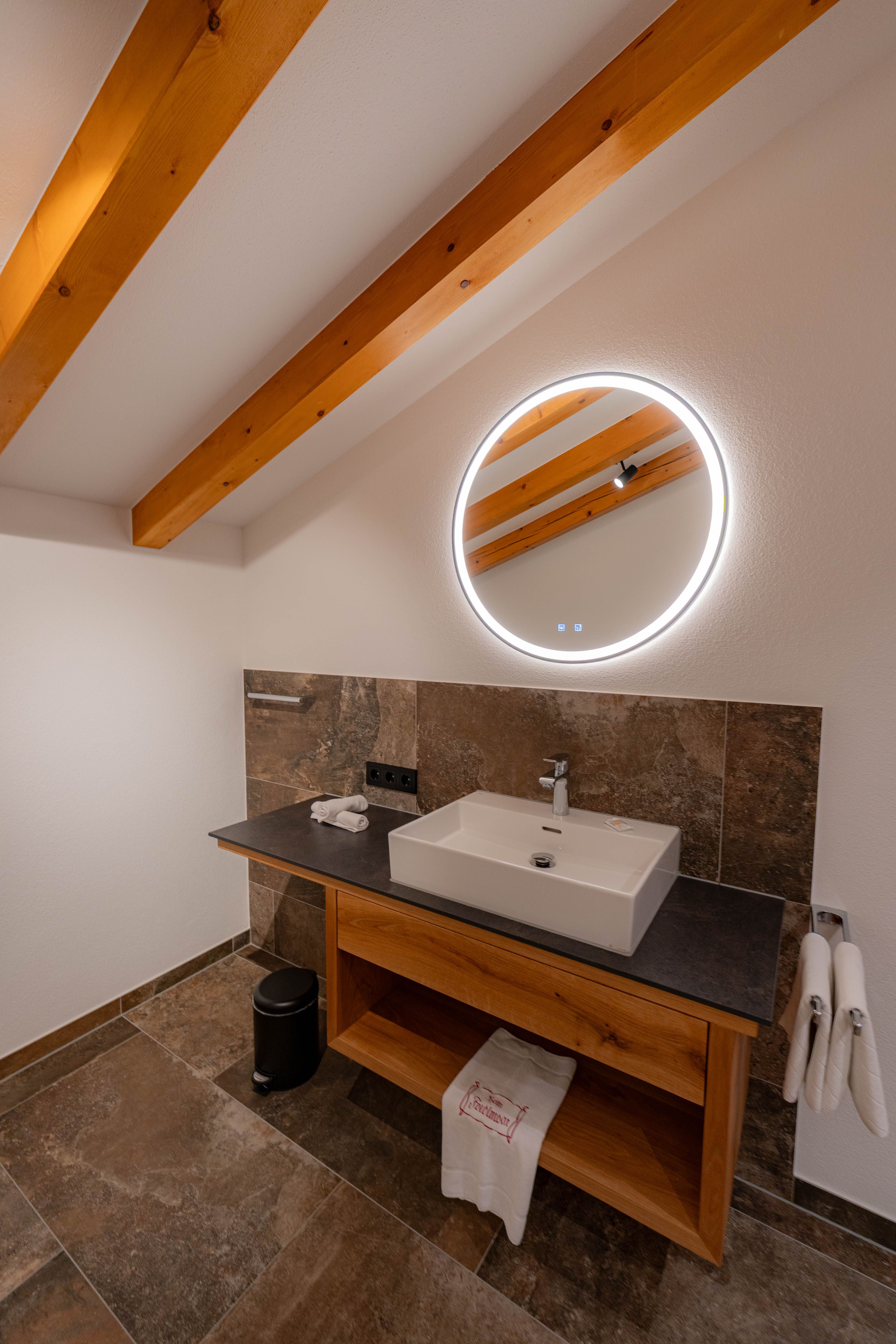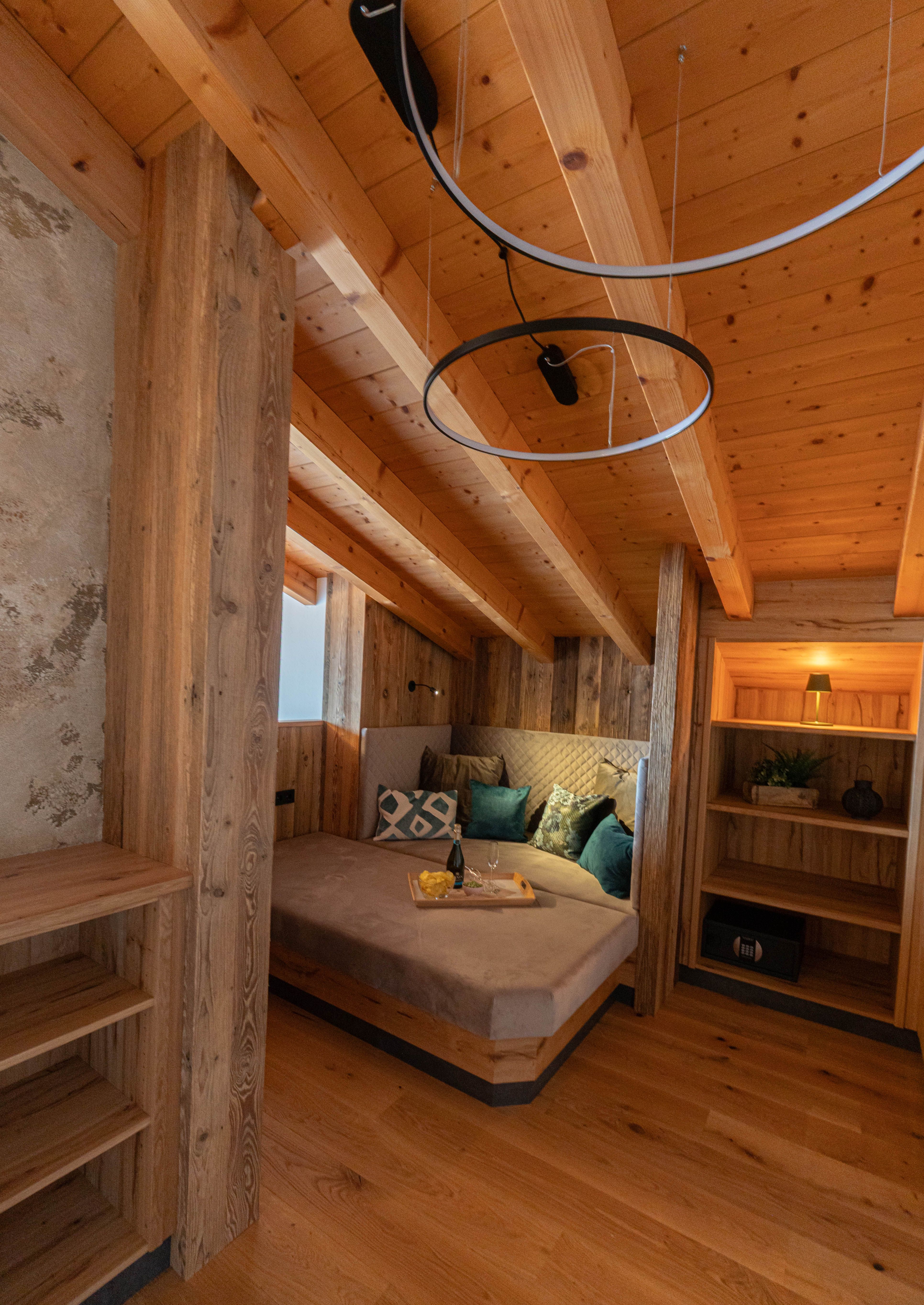 Einzigartig und mit einem atemberaubenden Blick auf die umliegende Bergkullisse begeistert unsere Dachgeschoss-Suite „Stoaadler“.