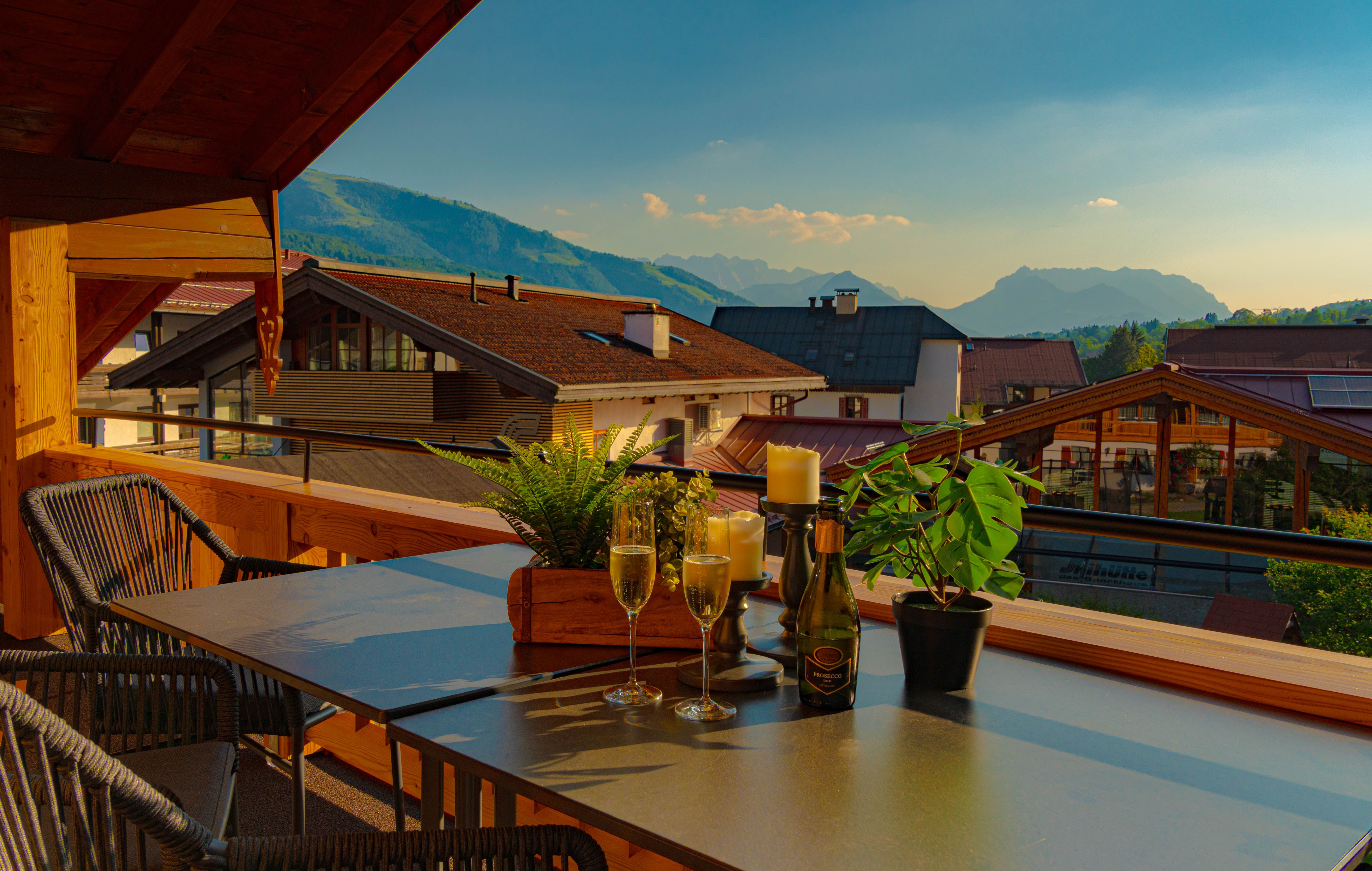 Der Westbalkon lädt dazu ein, den Blick auf die Berge zu bewundern – ein persönlicher Rückzugsort für unvergessliche Momente im Freien.