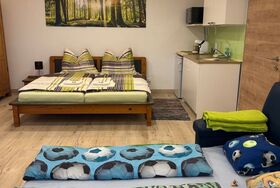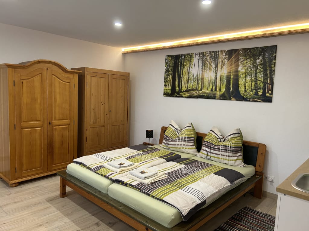 Unsere neu errichtete Ferienwohnung bietet neben einem Doppelbett 180x200 cm (fußfrei) ein gemütliches Sofa, das zu einem Schlafsofa umgewandelt werden kann.