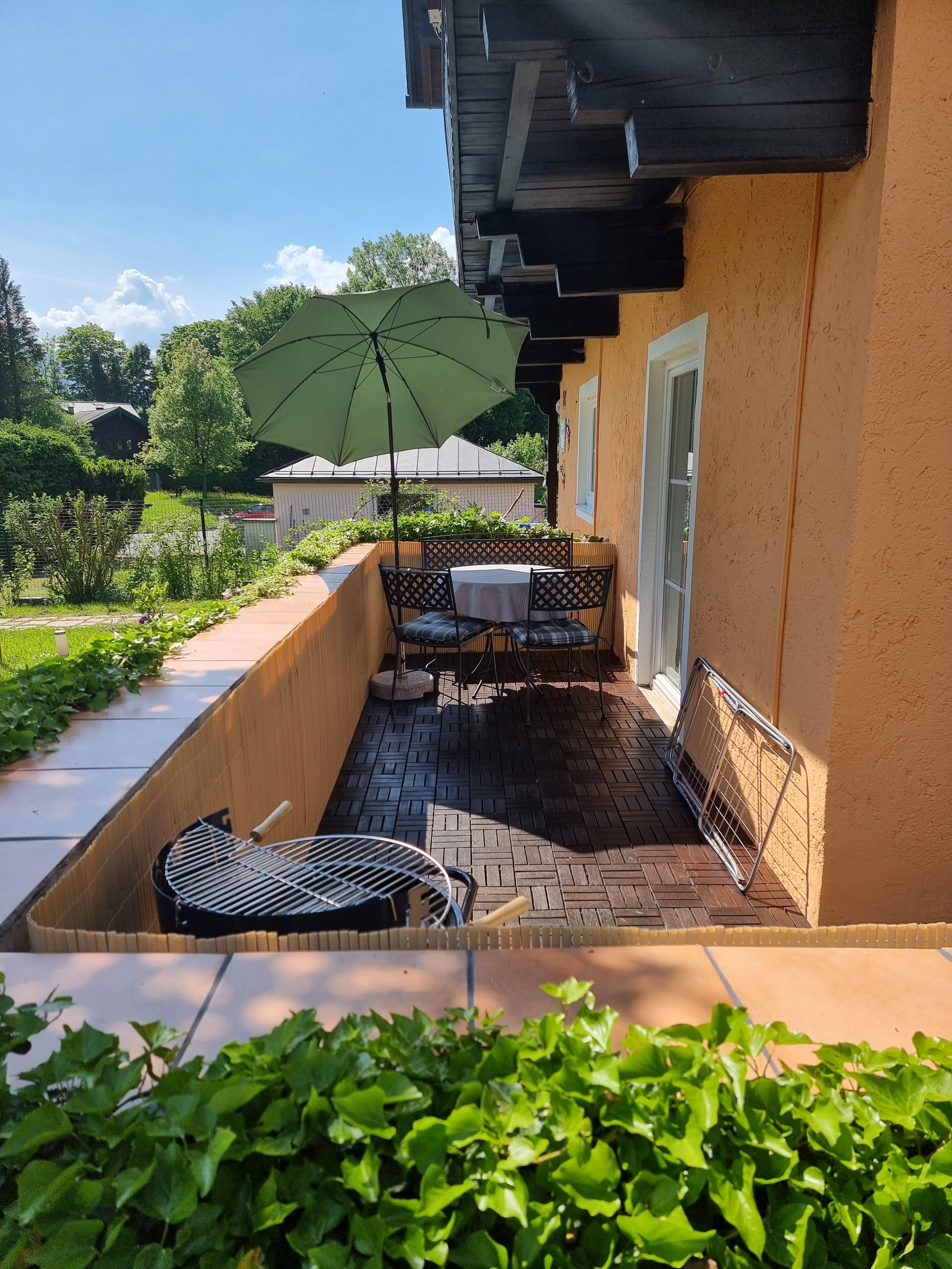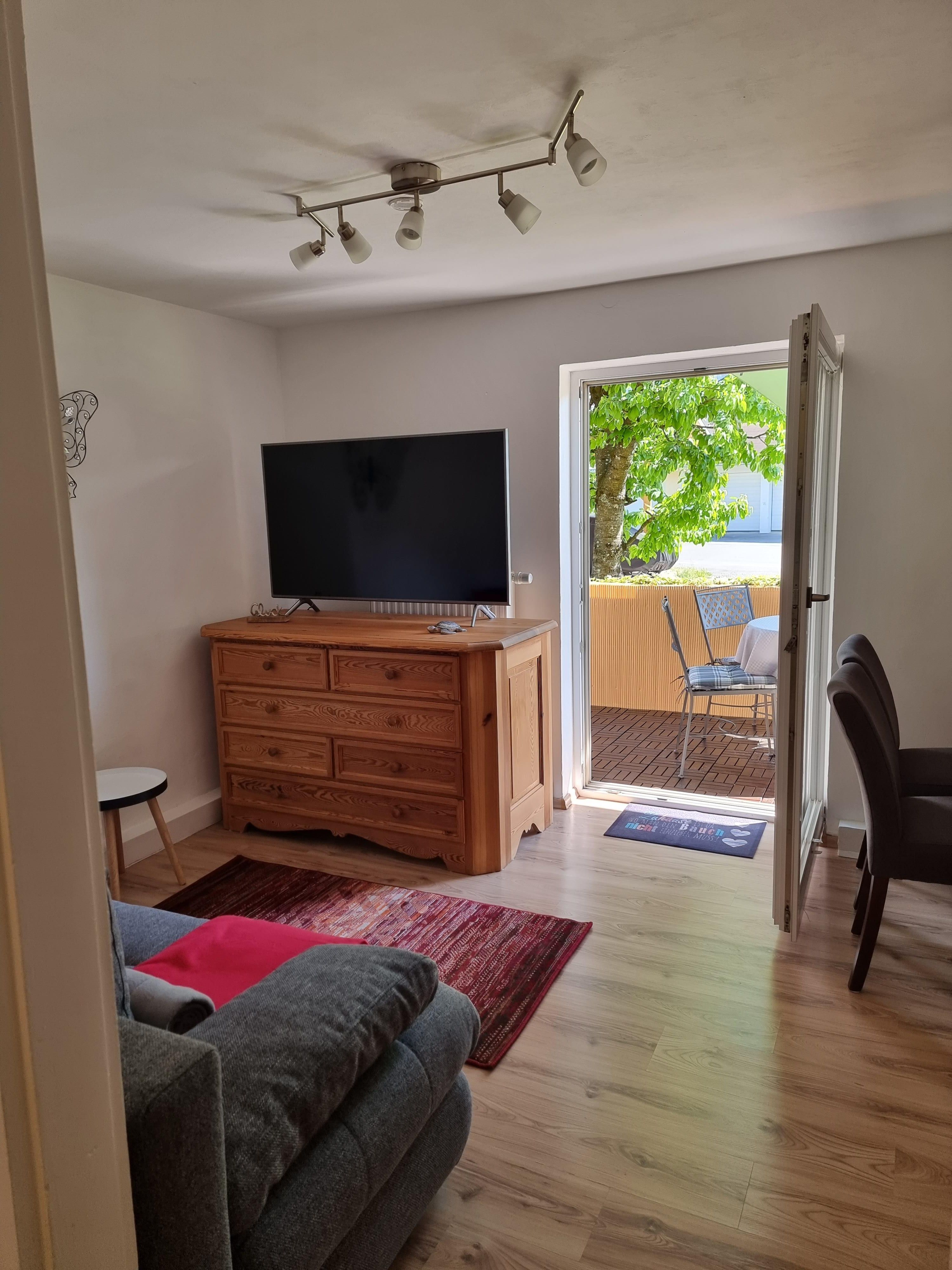 Aufgeteilt ist die Wohnung in Schlafzimmer, Wohnzimmer, Flur mit vollausgestatteteter Küche sowie einem großzügigen Badezimmer. Zum Appartment gehört eine eigene Terrasse mit Grill, die einen wunderbaren Blick auf die umliegenden Berge bietet.