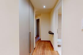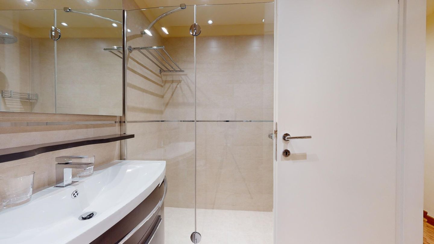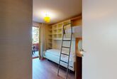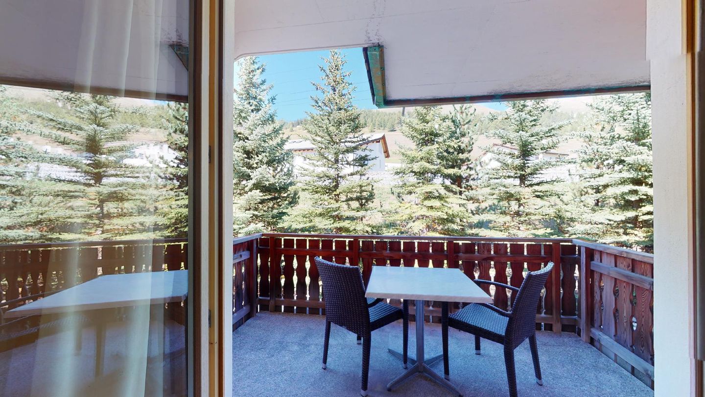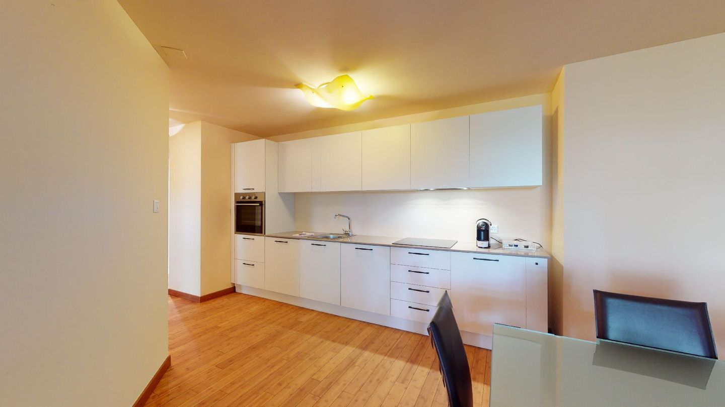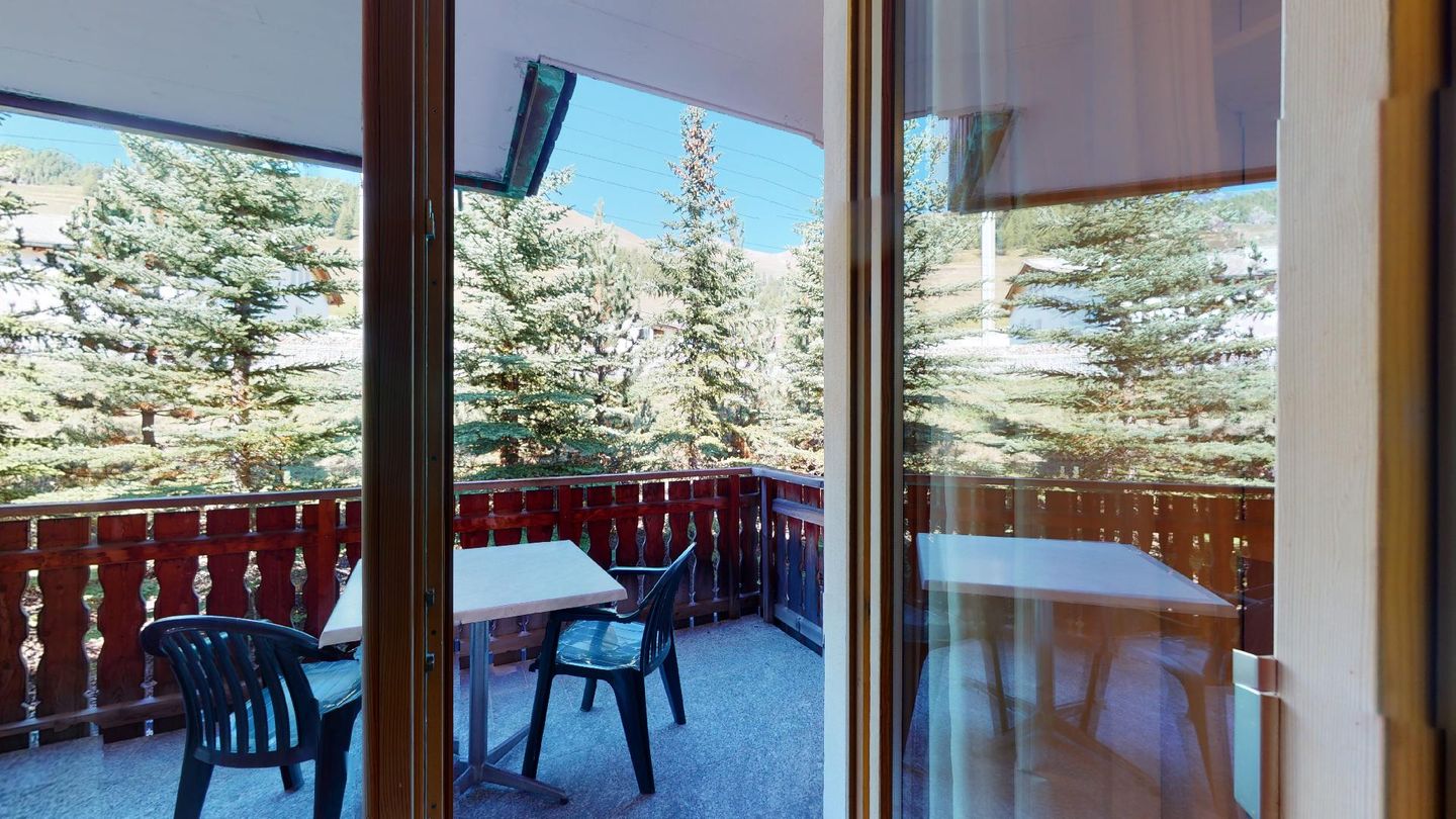 Moderne 3½ Zimmerwohnung im 1. Stock, ca. 66m² gross. Eingang mit Garderobe. Offenes Wohn- und Esszimmer mit Küchenzeile. Esstisch mit sechs Stühlen, ein Sofa, Smart-TV und Balkon. Küche mit Herd, Ofen, Kühlschrank und Geschirrspüler. Ein Doppelzimmer mit Smart-TV. Ein Zimmer mit einem Einzelbett und einem Hochbett, Balkon. Badezimmer mit Dusche, Lavabo, Toilette und Bidet. WLAN. Gemeinsamer Ski- und Veloraum, sowie Waschmaschine im Untergeschoss. 1 Parkplatz in der Tiefgarage (Höhe max. 210 cm).