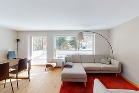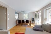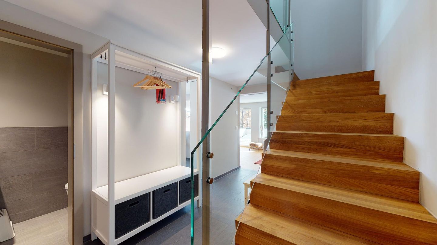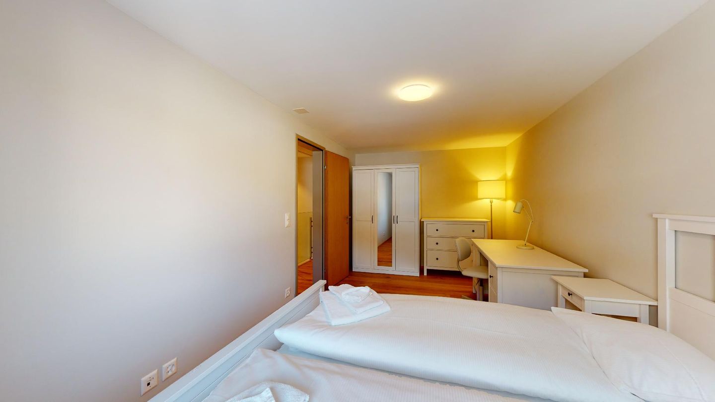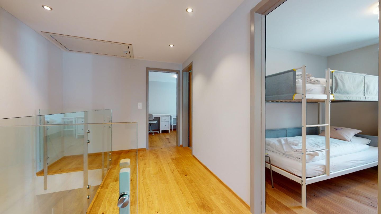 Im 2020 renovierte 5½-Zimmer Wohnung (106m2) im 1. Stock, auf zwei Etagen verteilt. 1. Stock: Halboffene Küche mit Kühlschrank, Herd, Ofen, Geschirrspüler, Chicco d'Oro Kaffeemaschine und grosser Durchreiche zum Esstisch. Wohn-/ Esszimmer mit grossem Esstisch, Sofa und Balkon. Ein Schlafzimmer/TV-Zimmer mit Doppelbett, Sofa, Smart-TV (bitte eigene Netflix und Amazon Logindaten mitbringen) und eigenem Badezimmer. Ein Gäste-WC.