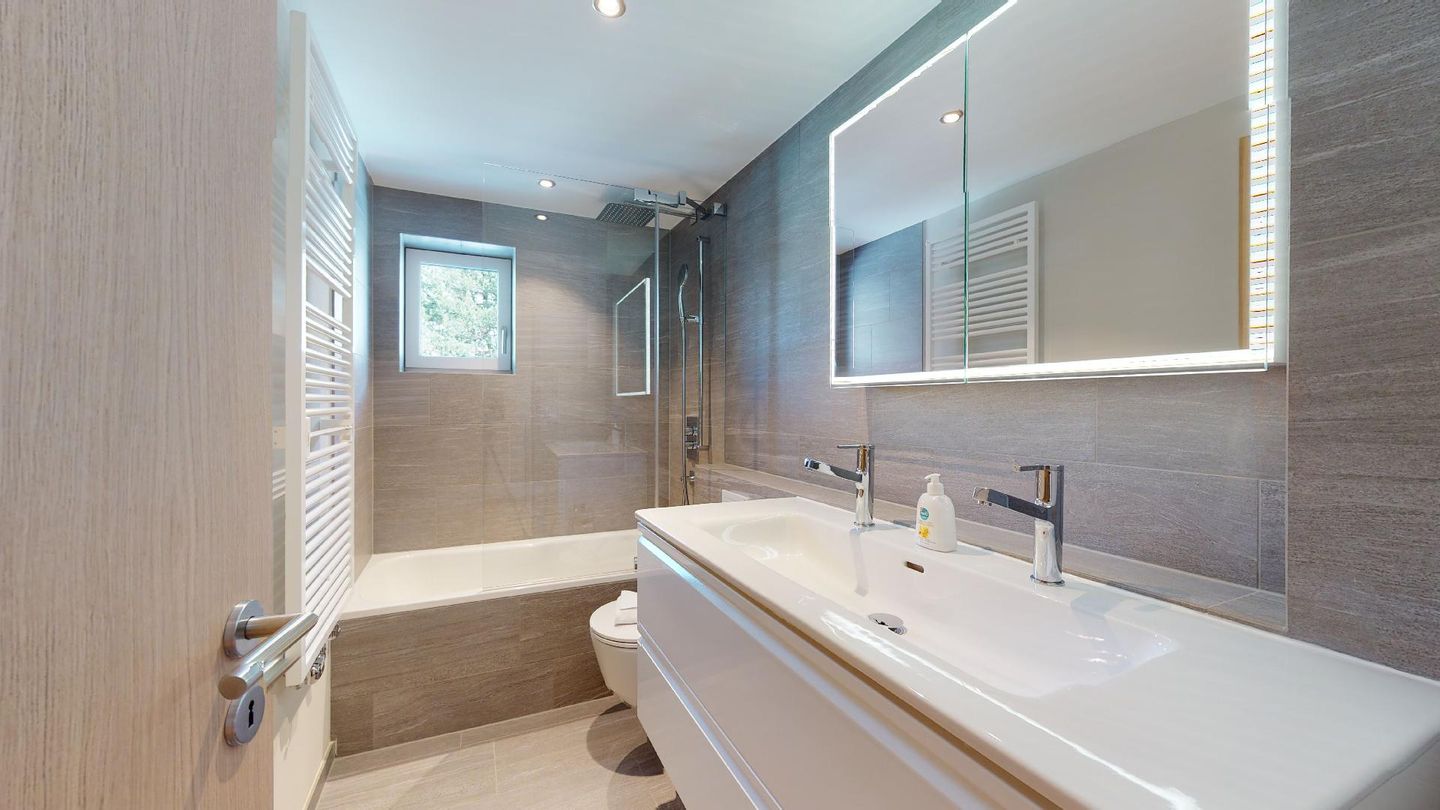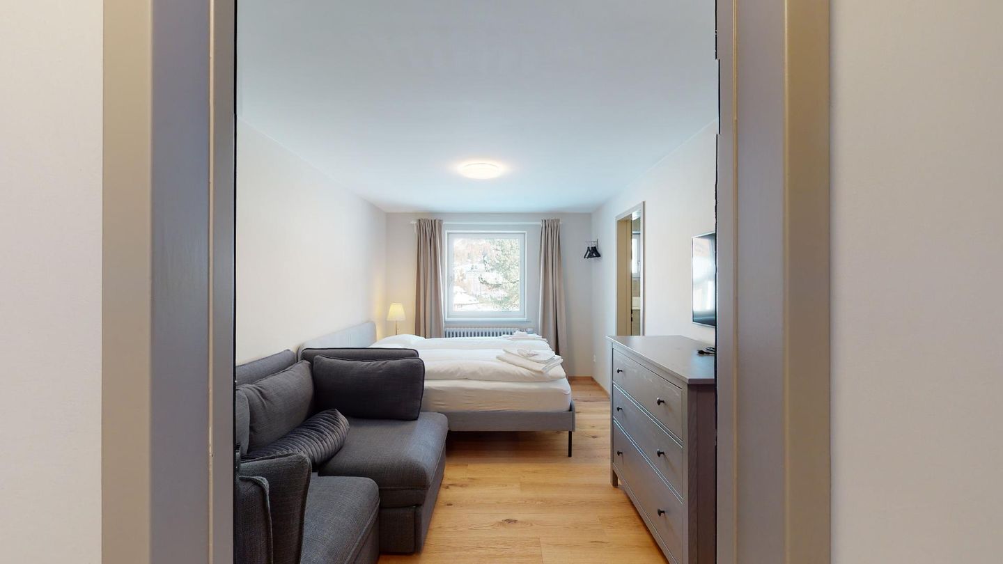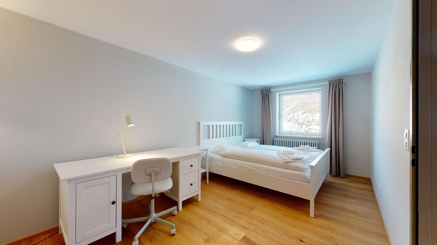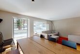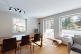 Im 2020 renovierte 5½-Zimmer Wohnung (106m2) im 1. Stock, auf zwei Etagen verteilt. 1. Stock: Halboffene Küche mit Kühlschrank, Herd, Ofen, Geschirrspüler, Chicco d'Oro Kaffeemaschine und grosser Durchreiche zum Esstisch. Wohn-/ Esszimmer mit grossem Esstisch, Sofa und Balkon. Ein Schlafzimmer/TV-Zimmer mit Doppelbett, Sofa, Smart-TV (bitte eigene Netflix und Amazon Logindaten mitbringen) und eigenem Badezimmer. Ein Gäste-WC.