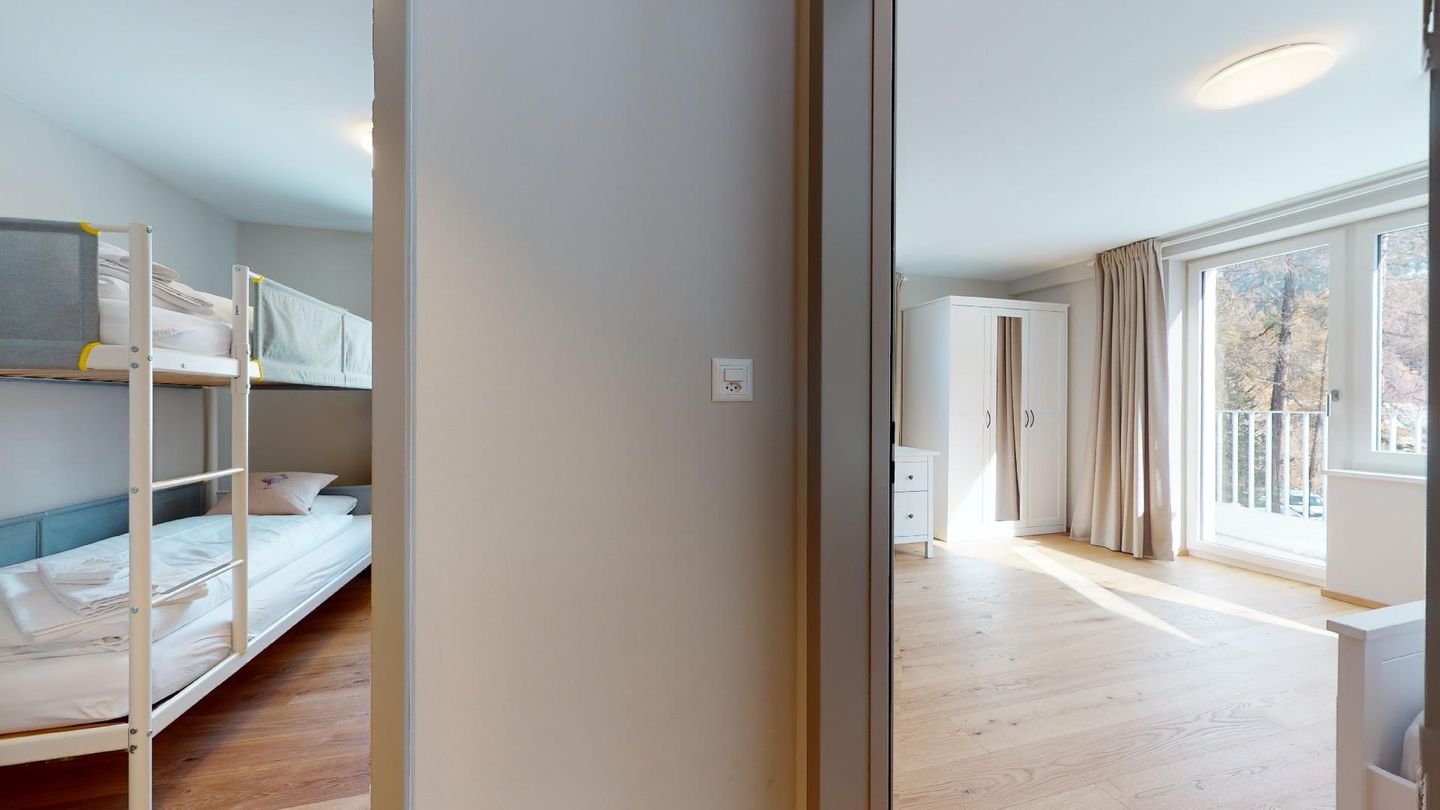 2. Stock: Zwei Doppelschlafzimmer, eines davon mit Balkon und ein Schlafzimmer mit Etagenbett. Ein Badezimmer.