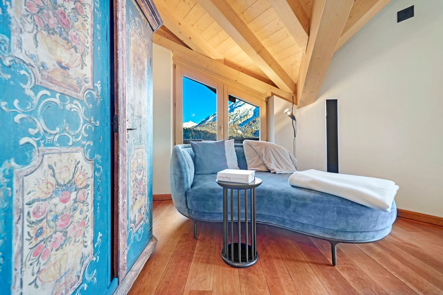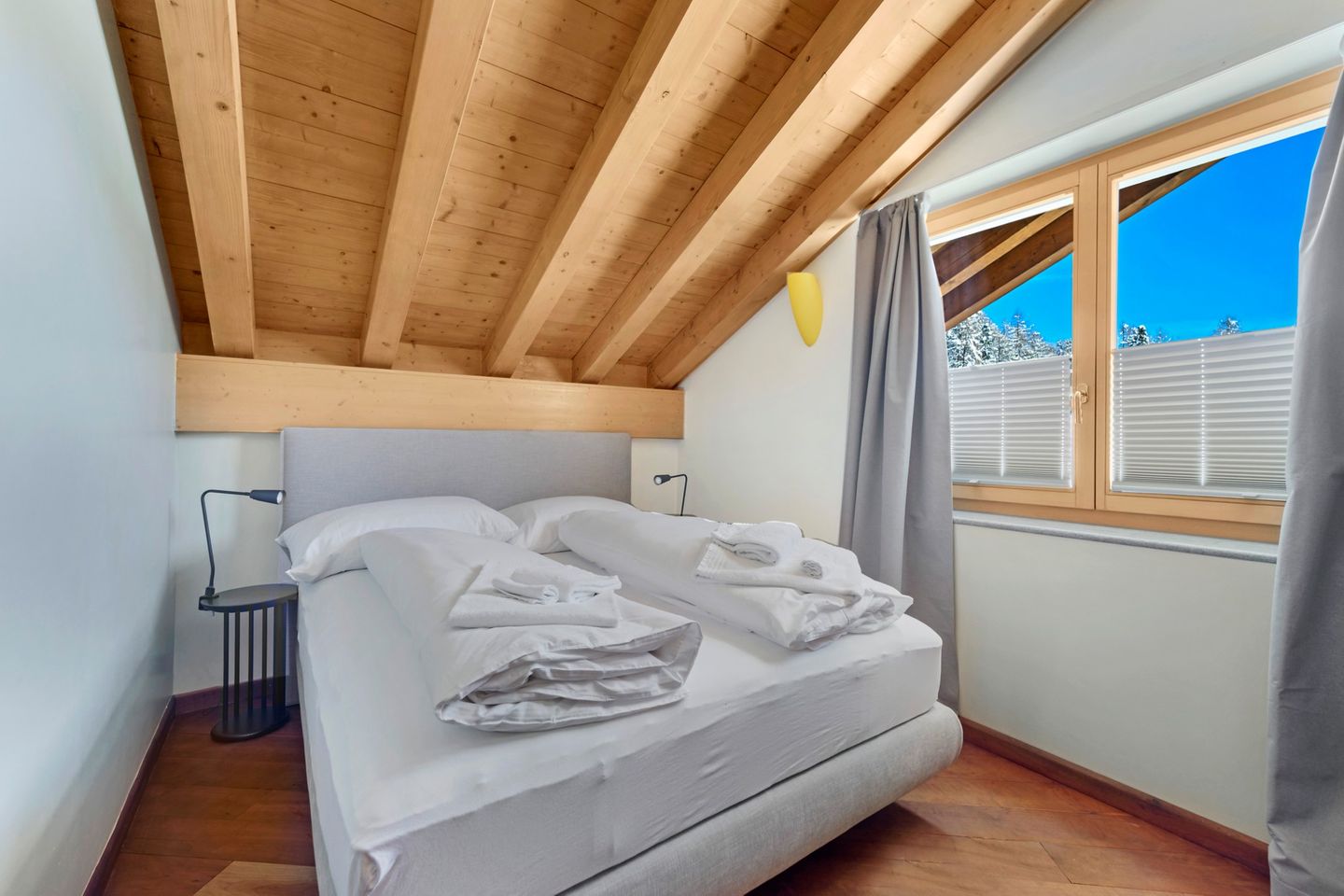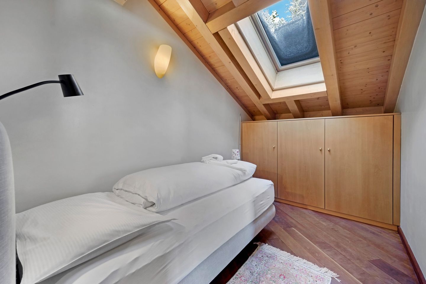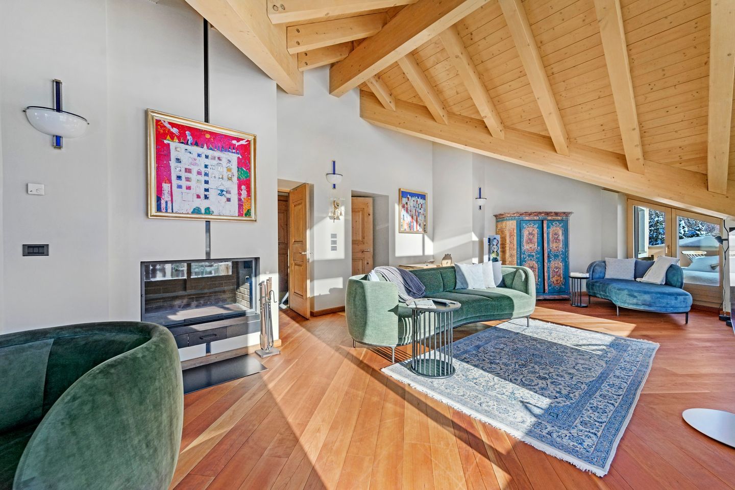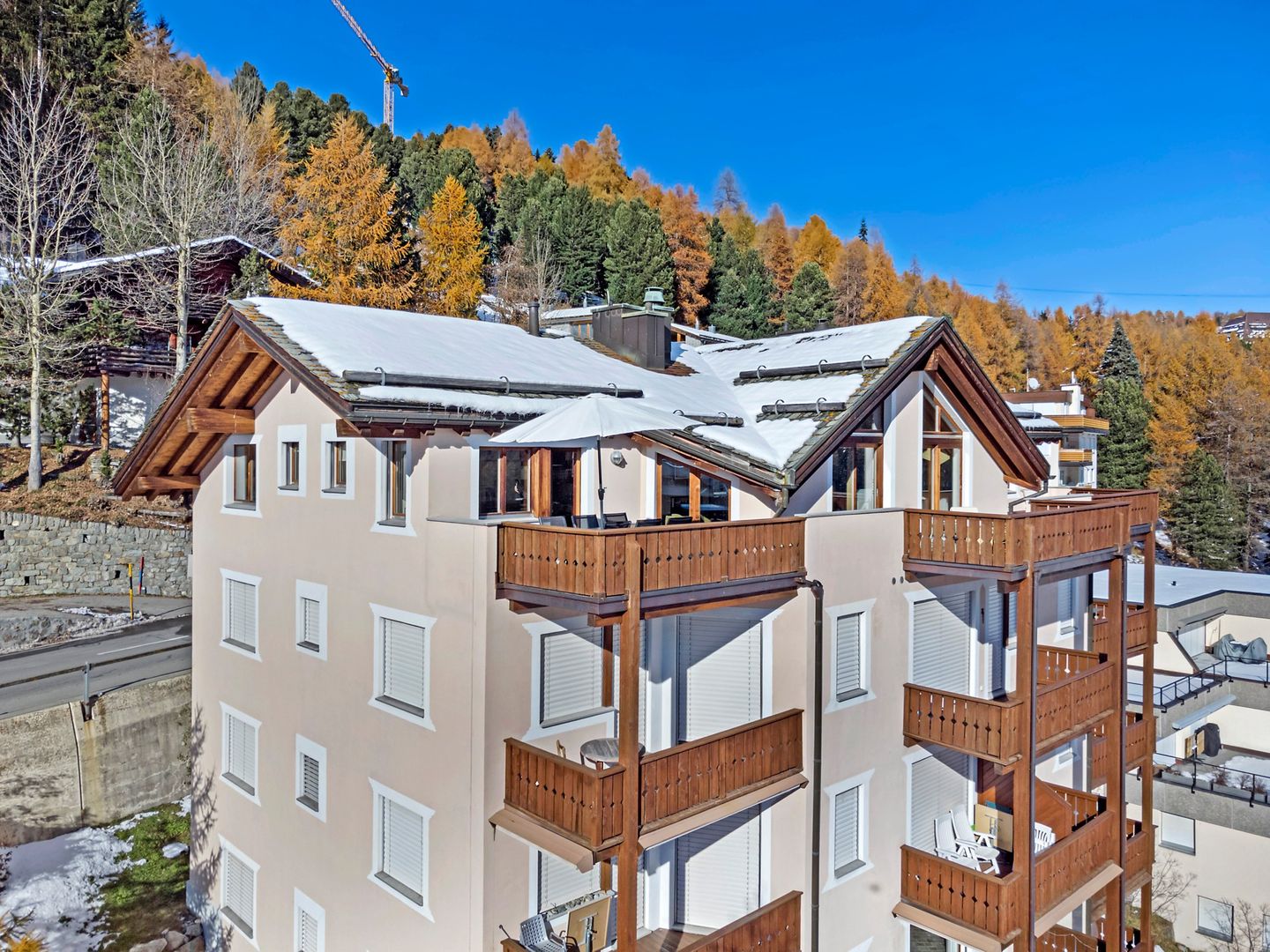 5½-Zimmerwohnung im Dachgeschoss mit atemberaubender Sicht über die Engadiner Seen- und Berglandschaft. Grosses Entrée mit Garderoben und Staumöglichkeiten. Grosses Wohnzimmer mit Cheminée und Ausgang auf die Terrasse mit einmaliger Sicht. Wunderschöne Küche mit grossem Esstisch. Separates WC. Doppelzimmer mit begehbarem Kleiderschrank und Badezimmer Ensuite (Badewanne/Lavabo/WC/Bidet). Doppelzimmer mit Ausgang auf die Terrasse und Badezimmer Ensuite (Dusche/WC/Bidet/Lavabo). 1 Einzelzimmer & 1 Doppelzimmer mit gemeinsamen Badezimmer (Dusche/WC/Lavabo/Bidet). 2 Garagenplätze. Skiraum und Waschküche zur gemeinsamen Benutzung.