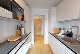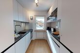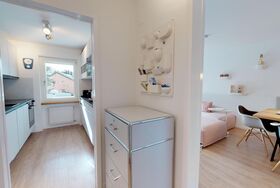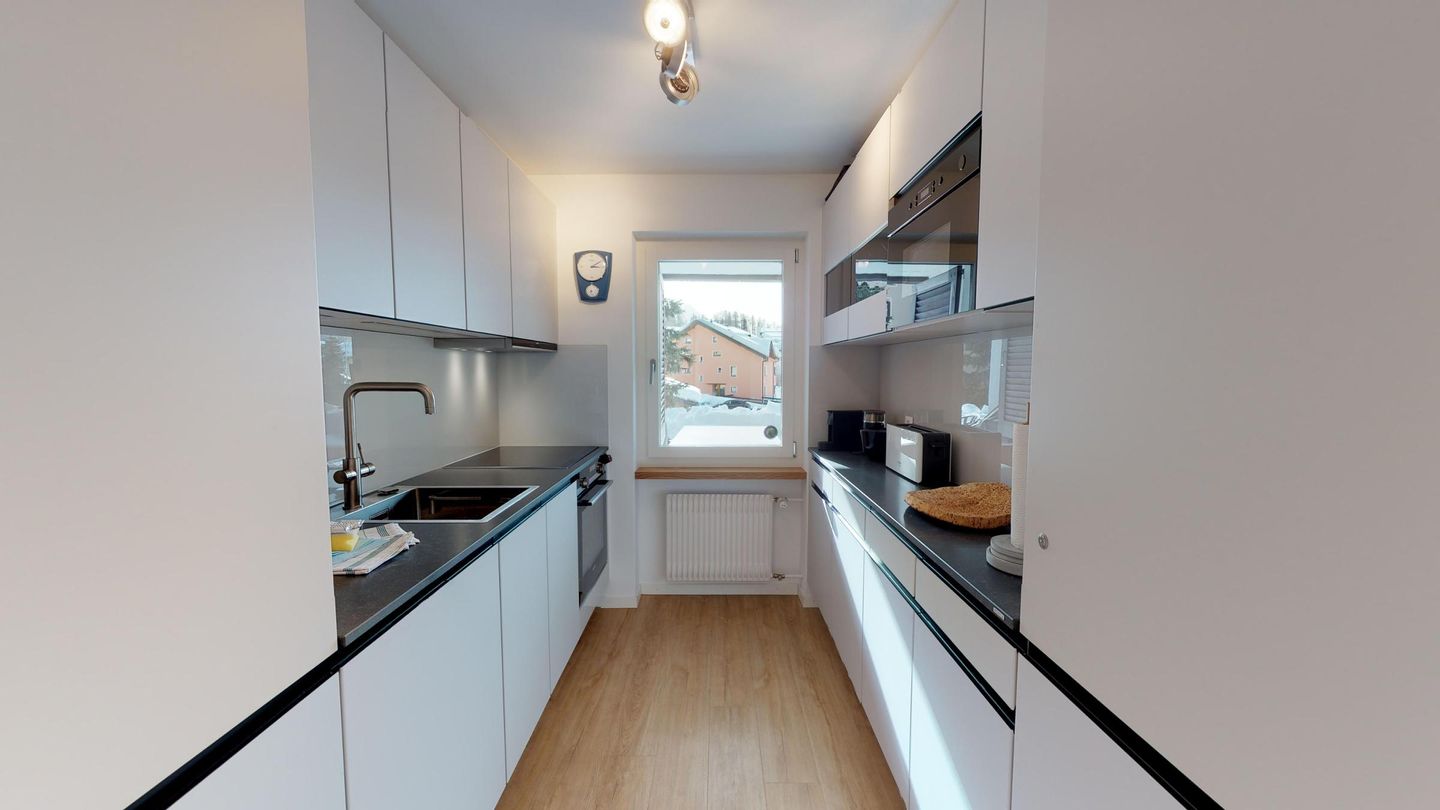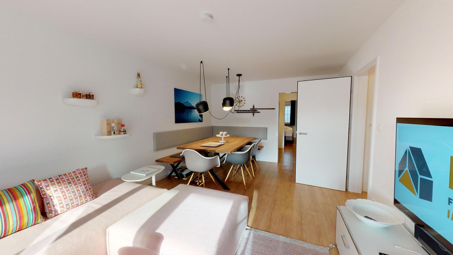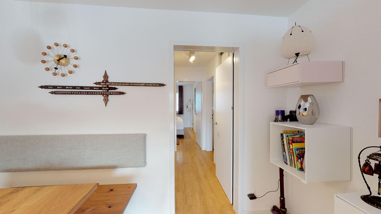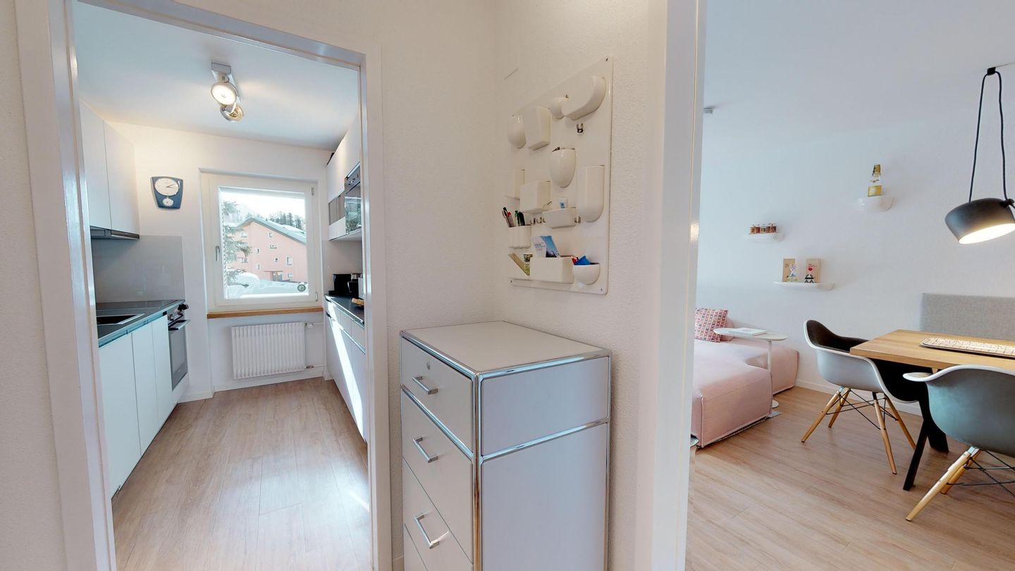 3 ½ -Zimmerwohnung in der 1. Etage (Hochparterre). Ca. 90 m², an sehr sonniger und ruhiger Lage direkt am Waldrand. Eingang mit Garderobe. Helles Wohnzimmer mit gemütlicher Essecke und direktem Zugang zum Balkon mit Südlage und wunderschöner Bergsicht. TV mit Sonos Soundsystem und Apple TV (bitte eigene Logindaten mitbringen), DVD-Player. Loungeecke und Tisch für sechs auf der Terrasse, Sonnenschirm, Weber Grill. 1 Doppelschlafzimmer. 1 Zimmer mit zwei Hochbetten. Badezimmer mit grosser Dusche/Dusch-WC/Lavabo. Geschlossene moderne Küche mit GROHE Wasserhahn, Backofen, Toaster, Wasserkocher, Kaffeevollautomat, Mikrowelle, Kühlschrank mit Tiefkühlfach und Geschirrspüler. Nespresso Kaffeemaschine, Milchschäumer. Bügeleisen. Waschmaschine und Tumbler im Haus. 1 Garagenplatz.