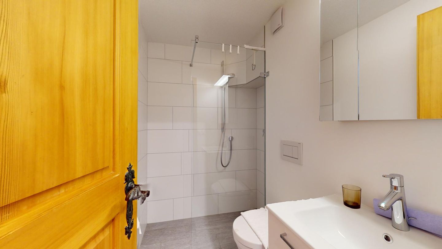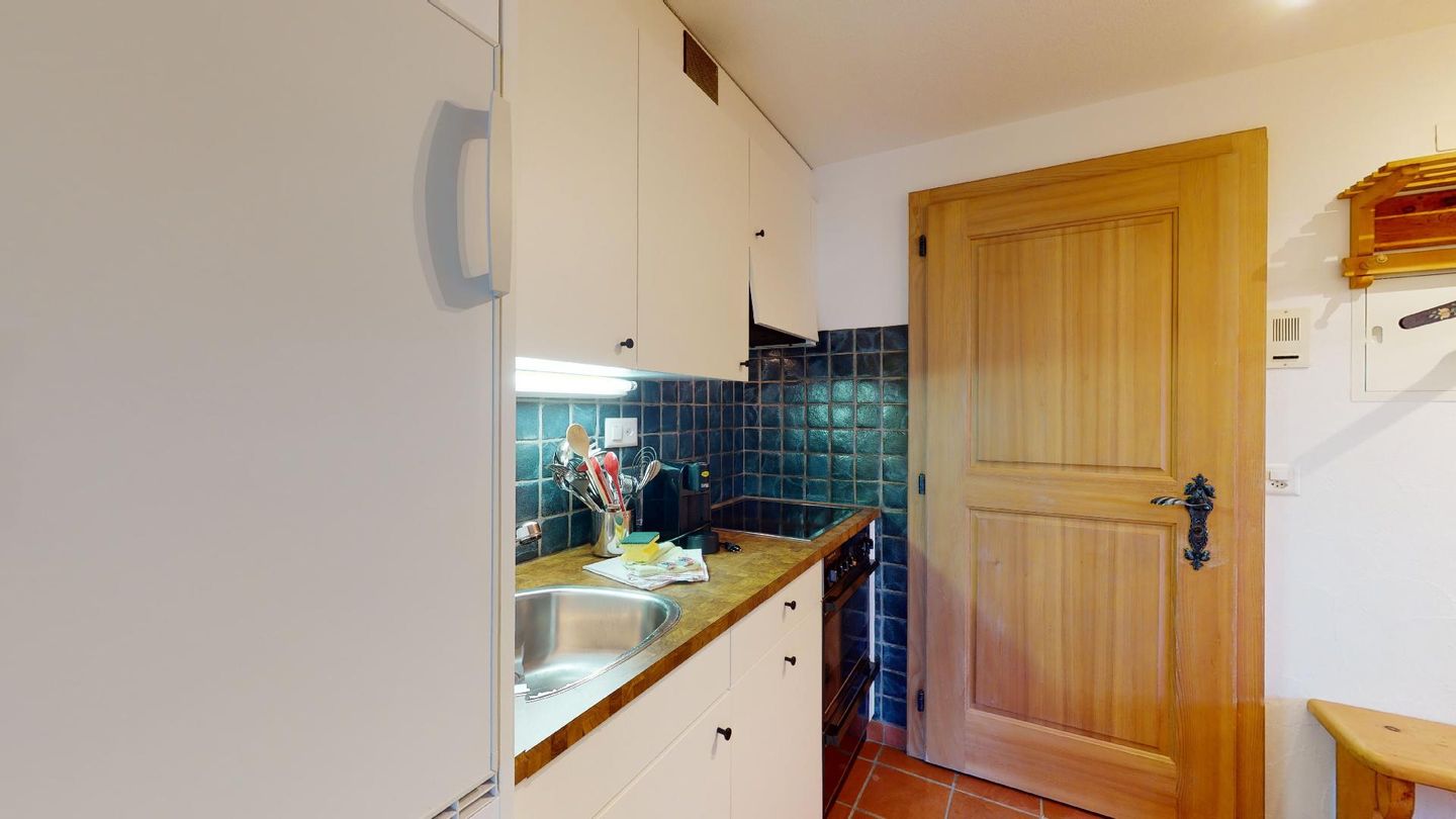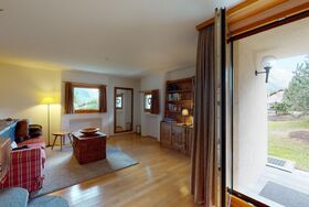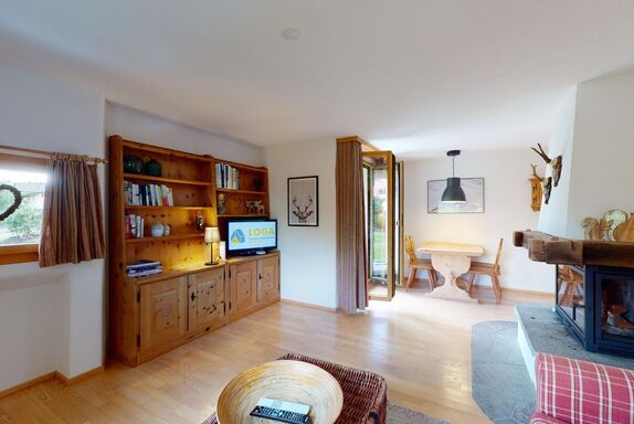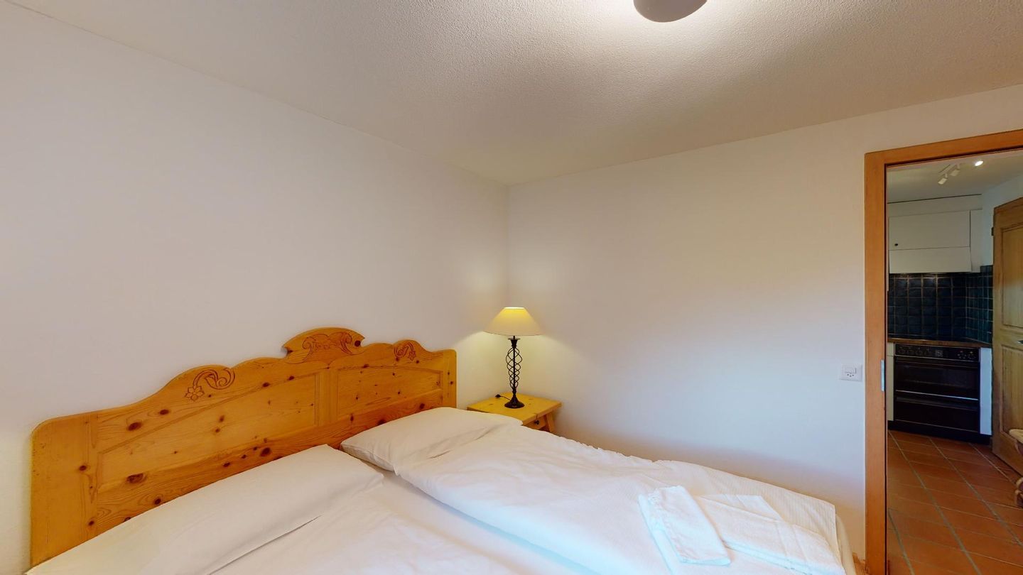 2-Zimmerwohnung im Erdgeschoss. Eingang mit Küchenzeile. Wohnzimmer mit TV, Cheminée und Terrassensitzplatz. Schlafzimmer mit Doppelbett. Neu renoviertes Badezimmer mit Dusche, WC und Lavabo. Privater Abstellraum beim Balkon. Ein Parkplatz in der Garage. Haustiere sind erlaubt. Gemeinschaftliche Waschküche.