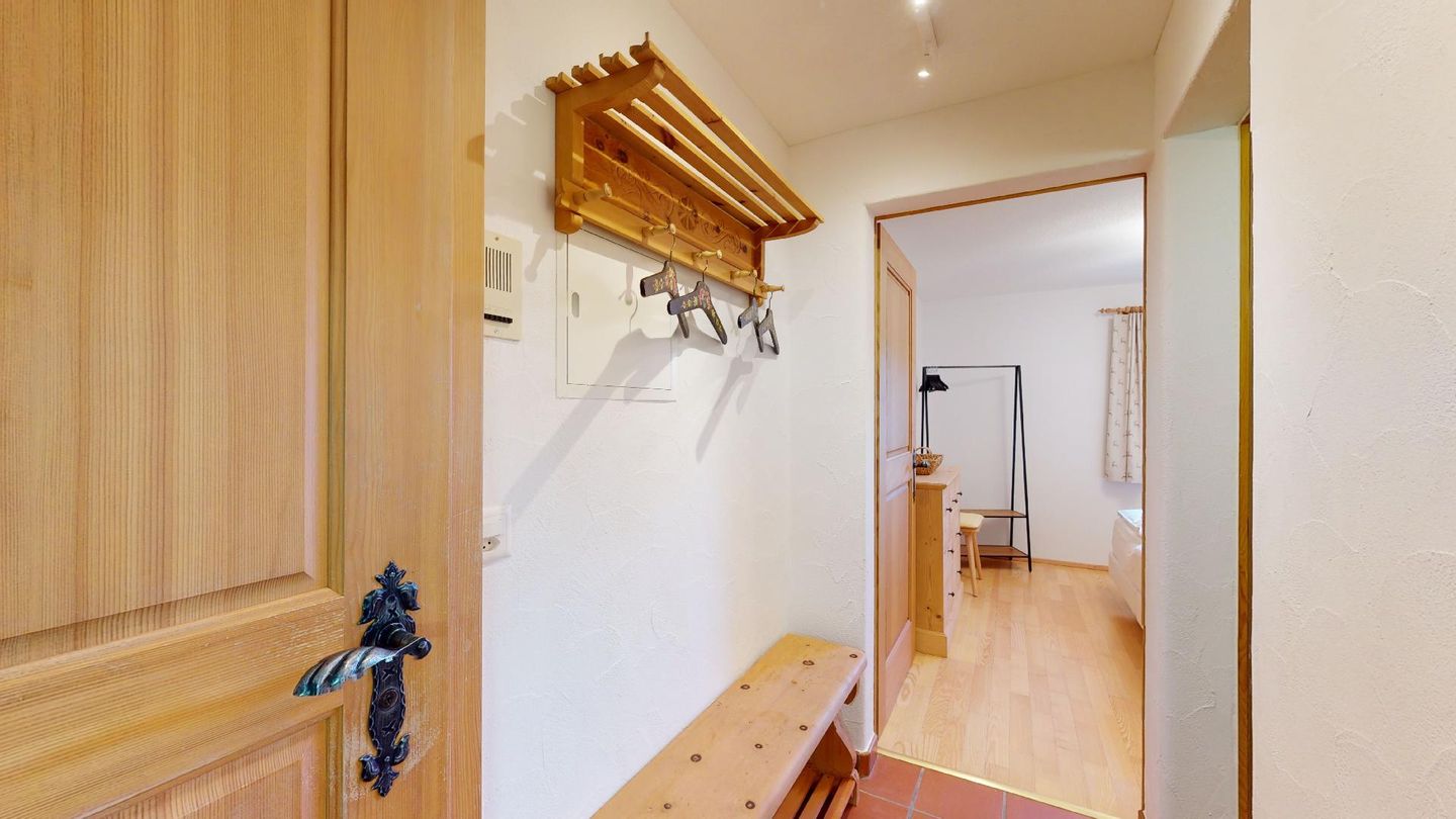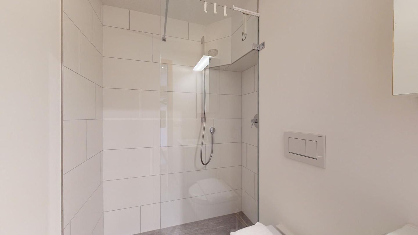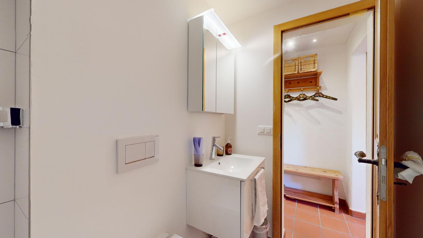 2-Zimmerwohnung im Erdgeschoss. Eingang mit Küchenzeile. Wohnzimmer mit TV, Cheminée und Terrassensitzplatz. Schlafzimmer mit Doppelbett. Neu renoviertes Badezimmer mit Dusche, WC und Lavabo. Privater Abstellraum beim Balkon. Ein Parkplatz in der Garage. Haustiere sind erlaubt. Gemeinschaftliche Waschküche.