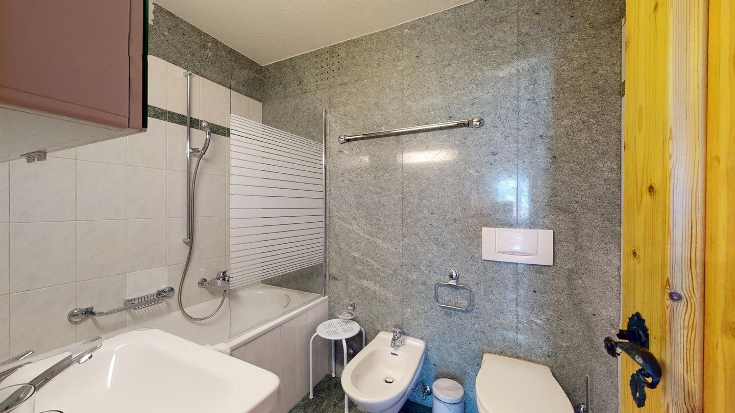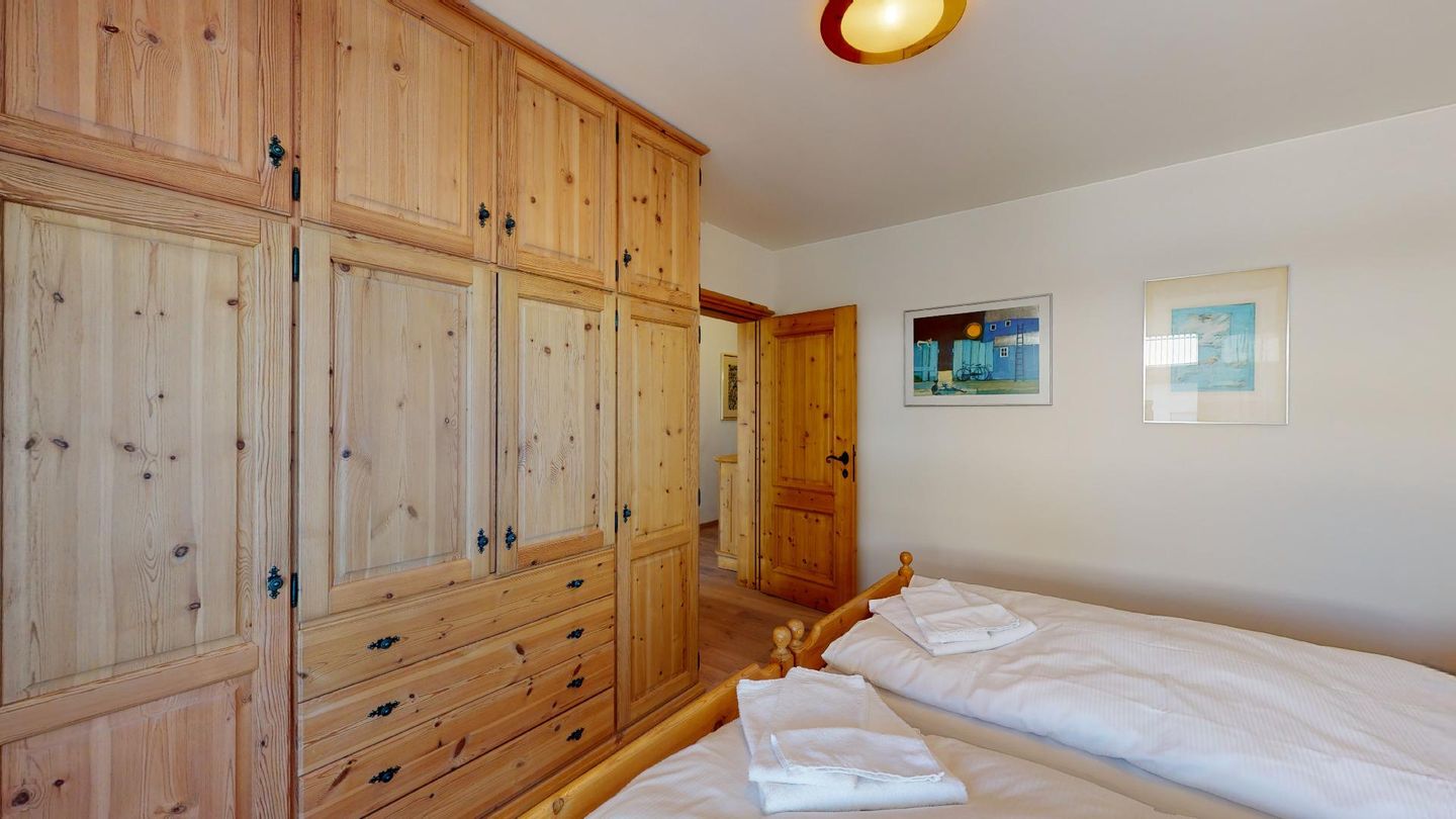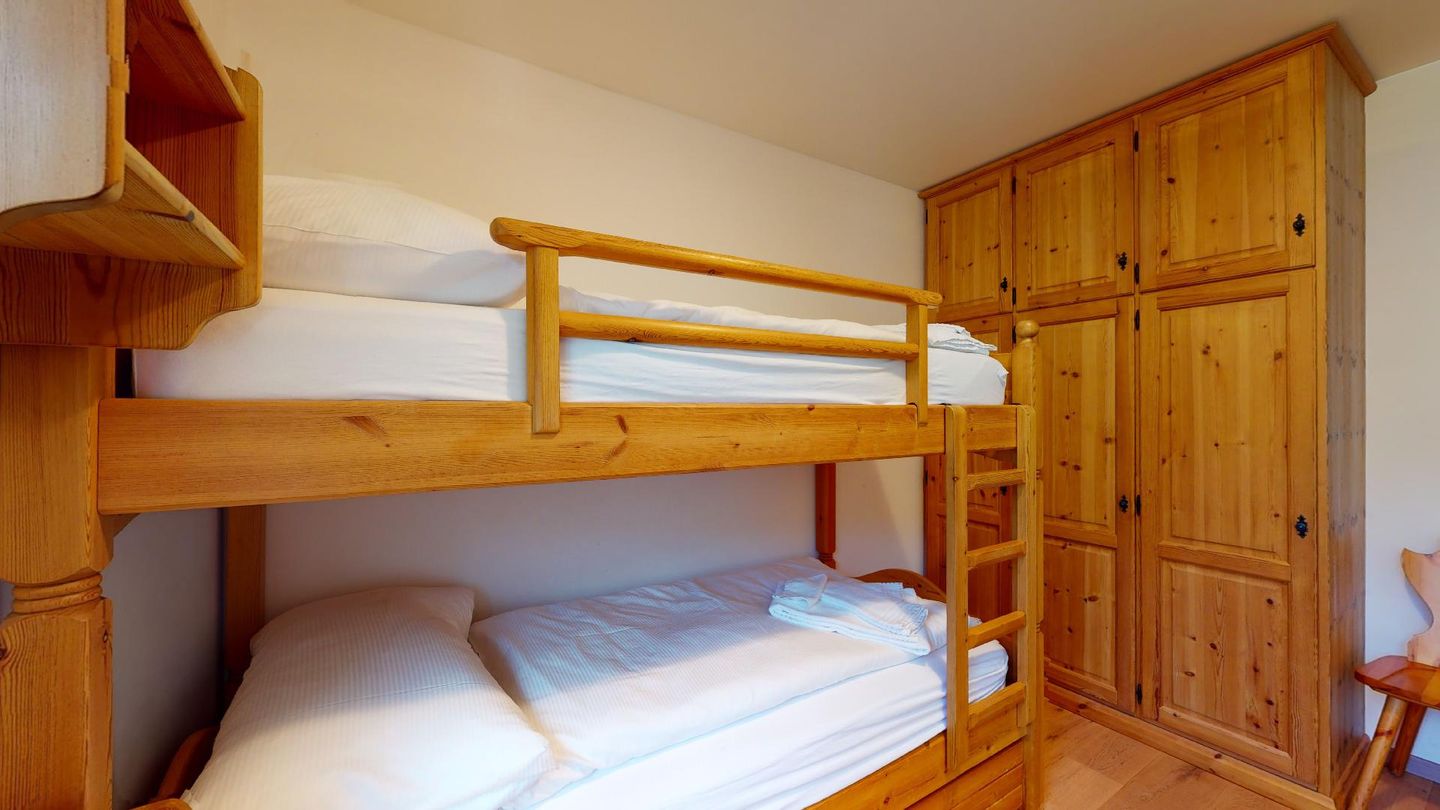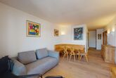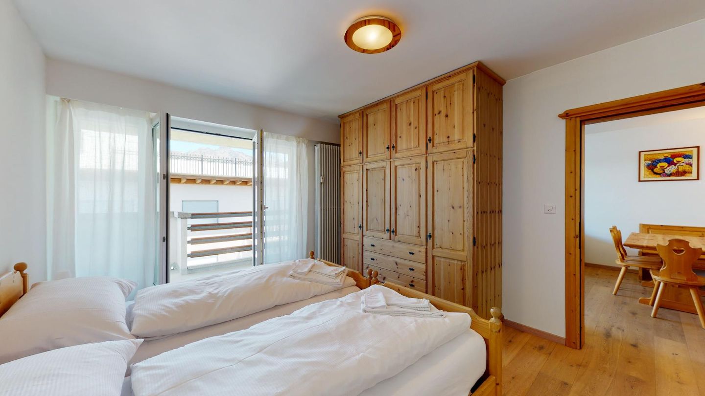 3-Zimmerwohnung im 4. Stock. Geschlossene Küche mit Herd, Ofen, Geschirrspüler. Wohnzimmer mit TV, Internet, Essecke und Balkon. Ein Doppelschlafzimmer (zwei Einzelbetten). Ein Schlafzimmer mit Etagenbett. Badezimmer mit Wanne, WC, Bidet und Lavabo. Aussenparkplatz. Haustiere sind erlaubt. Nichtraucherwohnung.