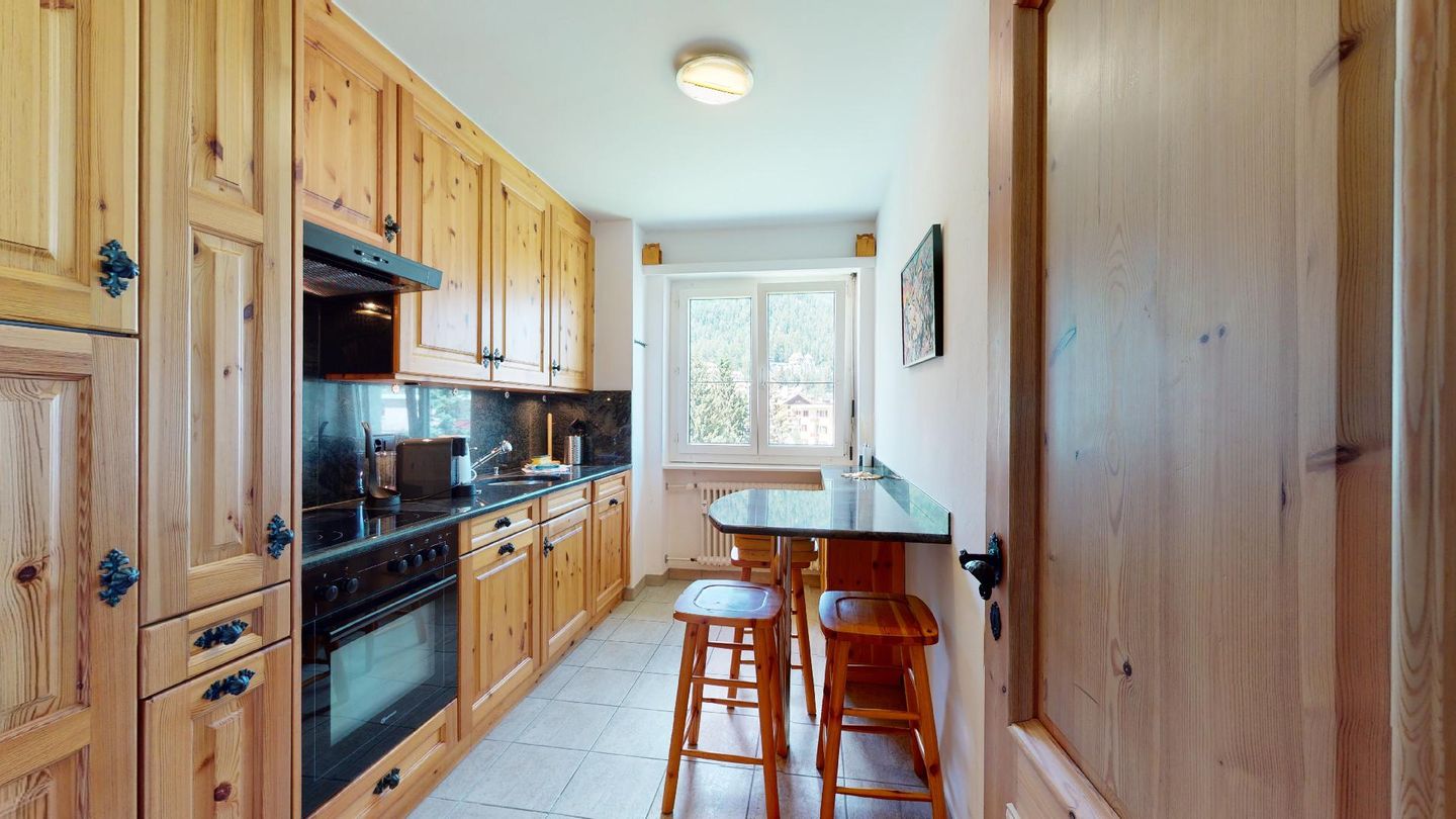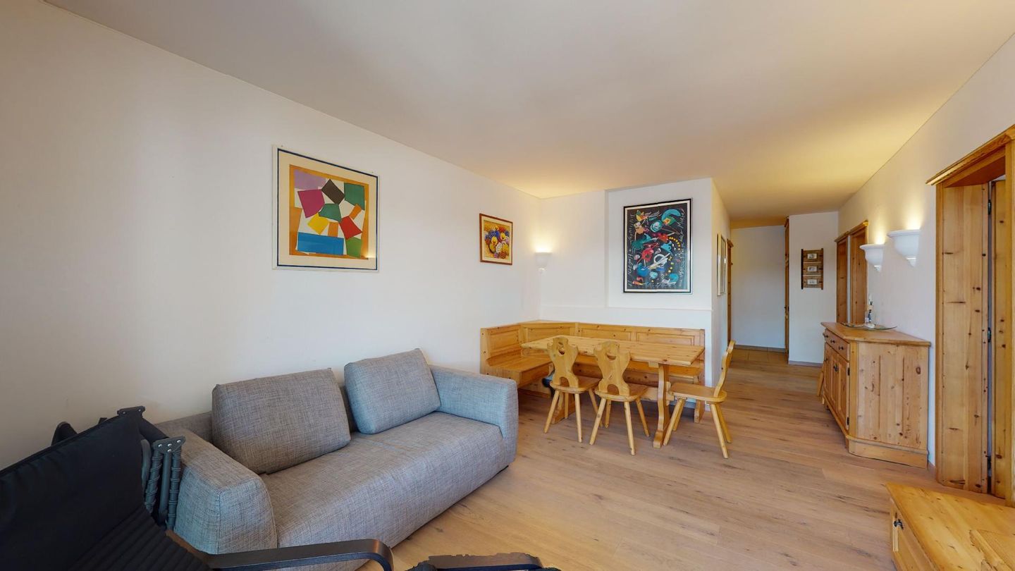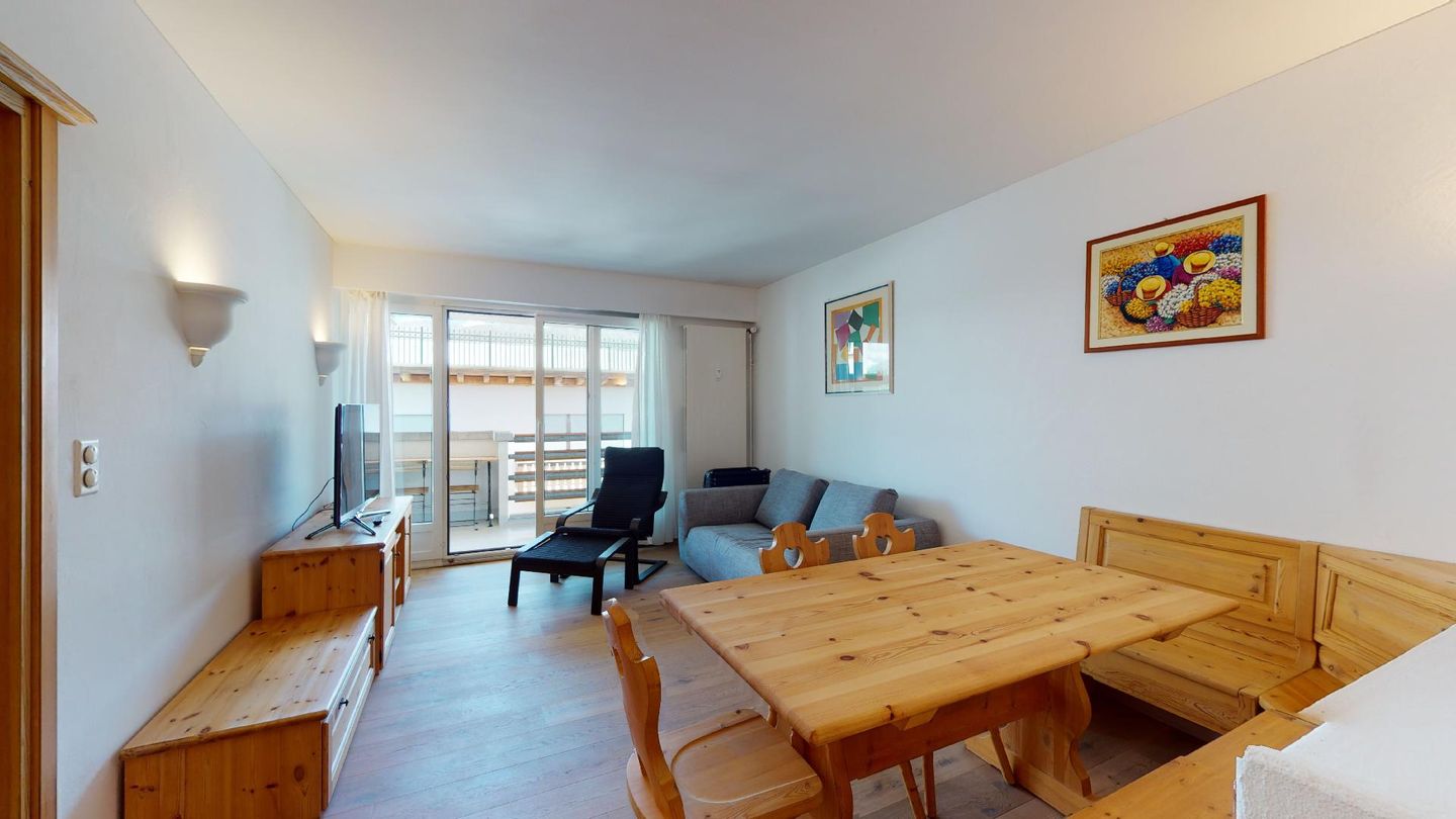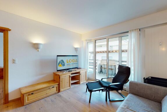 3-Zimmerwohnung im 4. Stock. Geschlossene Küche mit Herd, Ofen, Geschirrspüler. Wohnzimmer mit TV, Internet, Essecke und Balkon. Ein Doppelschlafzimmer (zwei Einzelbetten). Ein Schlafzimmer mit Etagenbett. Badezimmer mit Wanne, WC, Bidet und Lavabo. Aussenparkplatz. Haustiere sind erlaubt. Nichtraucherwohnung.