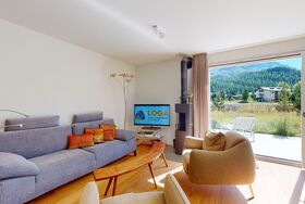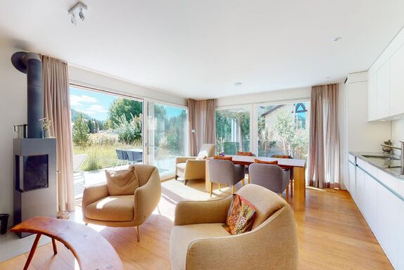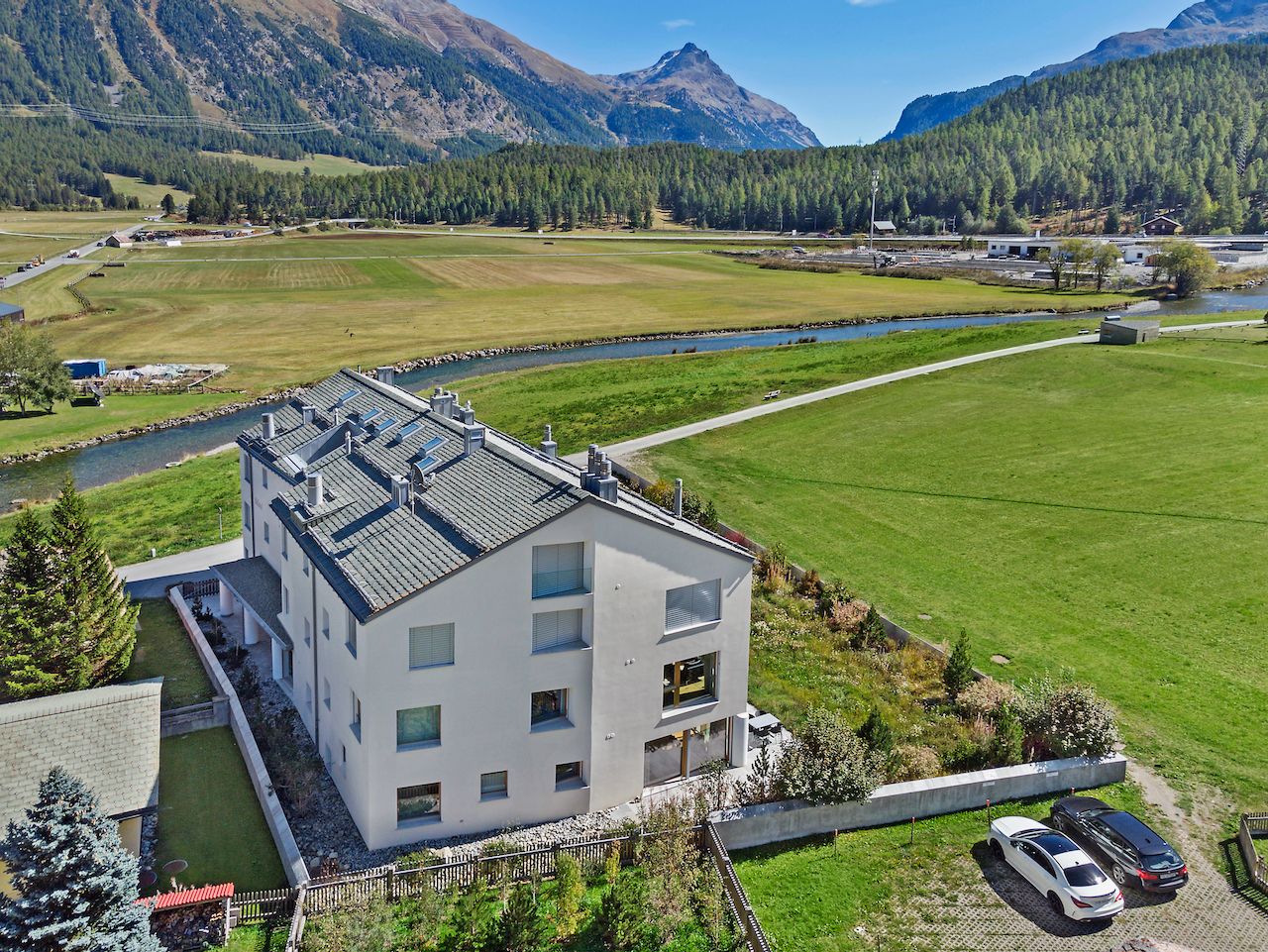 Neubau-Wohnung an idyllischer Lage direkt am Inn mit Aussicht. Post und Bahnhof sind ca. 200m entfernt. Die Bergbahn Saluver/Marguns ist ca. 500m entfernt und mit dem gratis Sportbus erreichbar. Die Langlaufloipen befinden sich vor dem Haus.