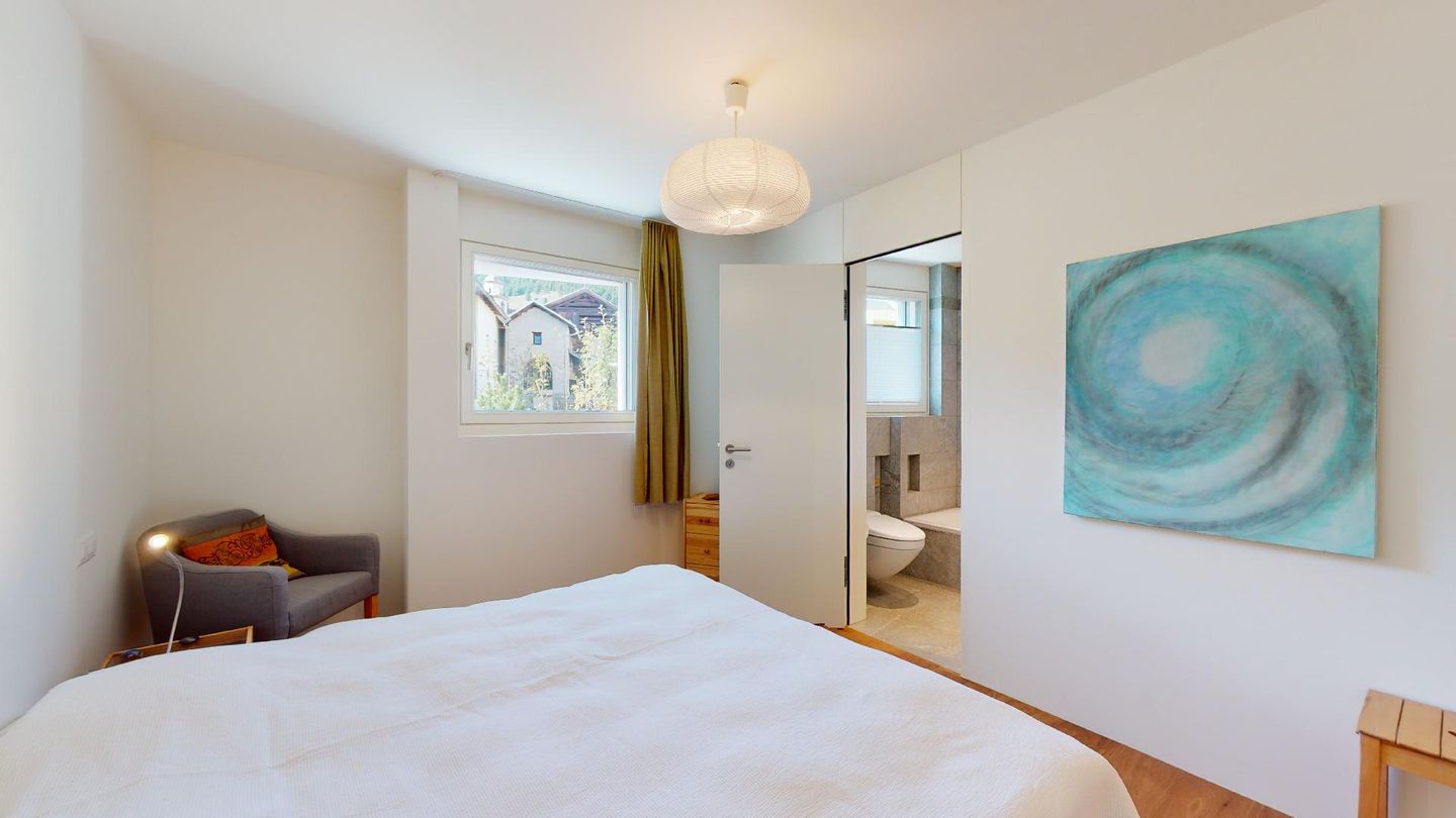 Eingang mit Garderobe. Grosses helles Wohnzimmer mit Schwedenofen, Ausgang auf die Terrasse mit schöner freien Aussicht auf die Berge, den Inn und die Kirche San Gian. TV und Internet. Offene Küche mit Backofen, Combisteam, Kühlschrank, Gefrierschrank, Geschirrspülmaschine, Kaffeemaschine Chicco d'Oro. Essecke mit Aussicht. Ein Doppelzimmer mit 2 Einzelbetten und eigenem Bad mit Badewanne/WC/Lavabo. Ein Zimmer mit Queensizebett (140/200) und eigenem Bad mit Dusche/WC/Lavabo. Ein Garagenplatz (E-Ladestation gegen Aufpreis vorhanden). Waschküche und Skiraum zur Mitbenutzung. Haustiere sind nicht erlaubt. Nichtraucher Wohnung. Bitte lassen Sie keine Schuhe im Treppenhaus stehen. Skischuhe uns Ski ebenfalls im Skiraum deponieren.