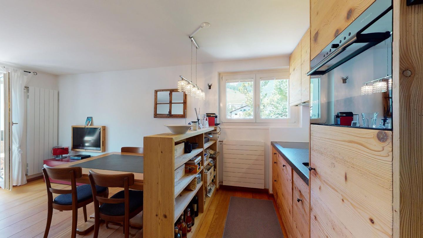 2-Zimmerwohnung im 1. Stock. Offene Küche mit Backofen, Kaffeemaschine, Wasserkocher, Fondue, Kühlschrank und Geschirrspüler. Wohn-/Esszimmer, Fernseher, Internet und Balkon. Bad/WC/Lavabo/Föhn. Ein Doppelzimmer. Garagenplatz (enge Einfahrt). Waschküche zur Mitbenützung. Haustiere sind nicht erlaubt.