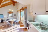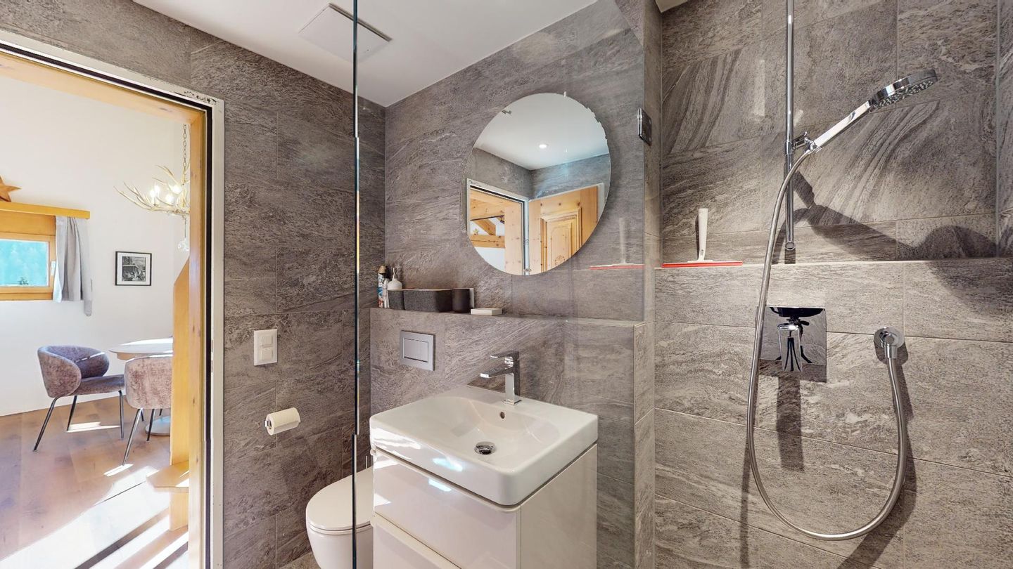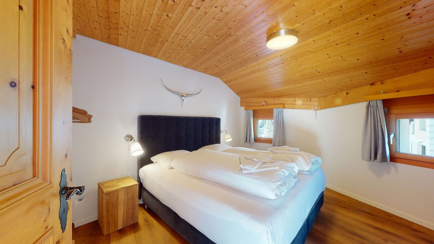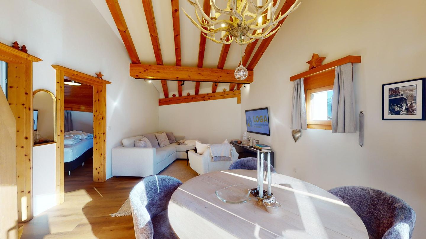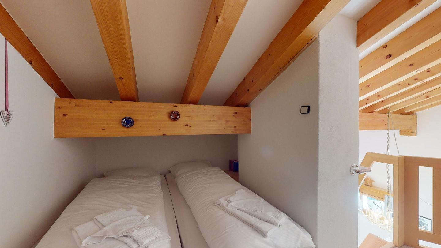 Schöne stilsicher eingerichtete 2-Zimmerwohnung im 2. Stock mit Galerie, 60 m2, an ruhiger und zentraler Lage. Wohn-/ Esszimmer mit Ausgang zum Balkon. Bergsicht. Internet und TV. Offene Küche mit Geschirrspüler und Backofen. Kaffeemaschine Chicco d'Oro. Bad mit Dusche/WC/Lavabo. Doppelzimmer mit Boxspringbett. Empore mit Doppelbett (2 Matratzen) unter Dachschräge, sehr steile Treppe. Neue, komfortable Einrichtung. Garagenplatz. Waschküche und Skiraum zur Mitbenützung. Nichtraucherwohnung. Haustiere sind nicht erlaubt.