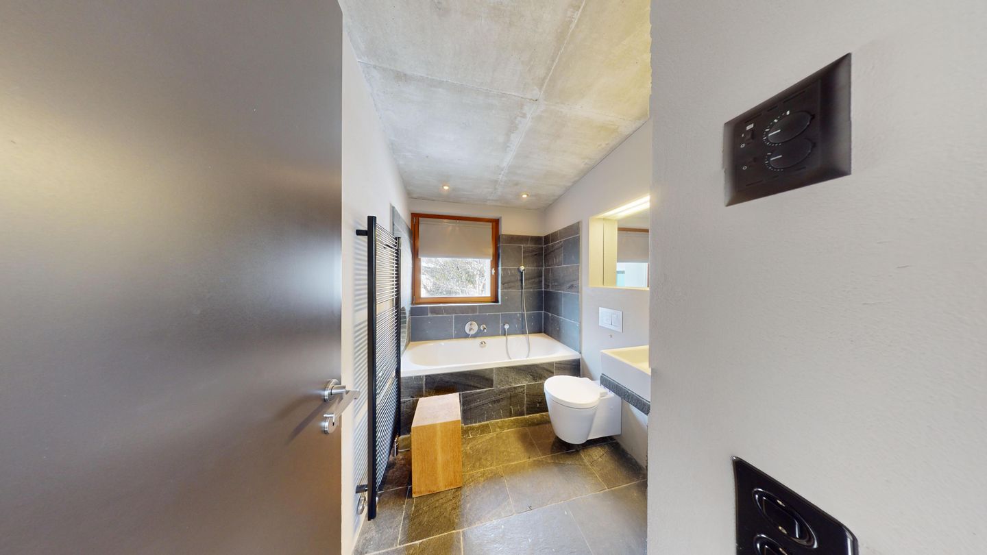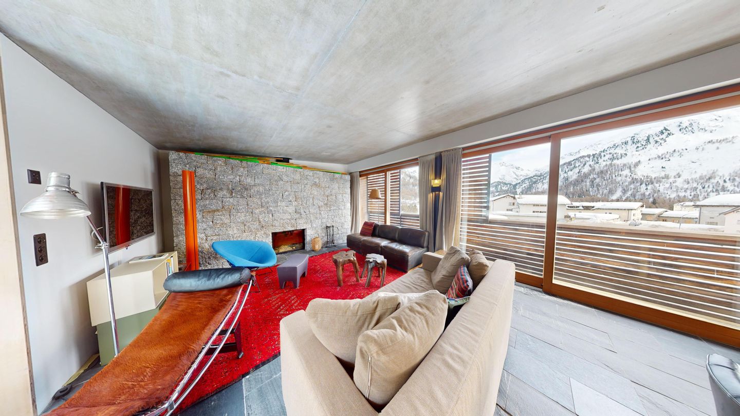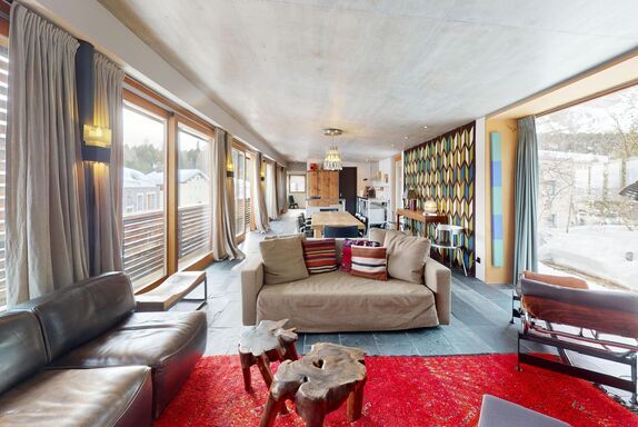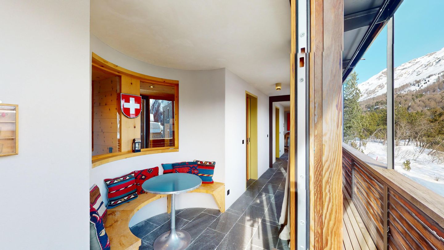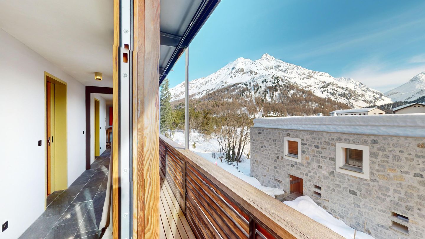 Moderne, helle 3½ Zimmerwohnung auf zwei Etagen (2. & 3. Stockwerk) mit direktem Zugang zum Garten in sonniger, ruhiger Lage im charmanten Künstlerdorf Maloja.