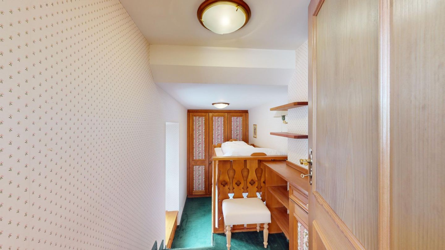 3½ Zimmerwohnung, im 2. Stock. Wohnzimmer mit TV, Essecke und Balkon. Geschlossene Küche mit Backofen, Kühlschrank und Geschirrspüler. Ein Doppelzimmer, mit Zugang zum Balkon. Ein Badezimmer mit Wanne, WC und Lavabo. Zweites Badezimmer mit Dusche, WC und Lavabo. Ein Schlafzimmer mit Etagenbett. Ein Parkplatz in der Garage und ein Aussenparkplatz. Gemeinschaftliche Waschküche. Nichtraucherwohnung. Haustiere sind erlaubt.