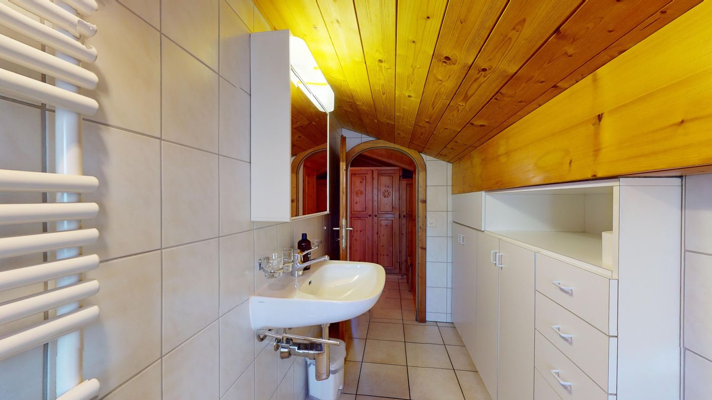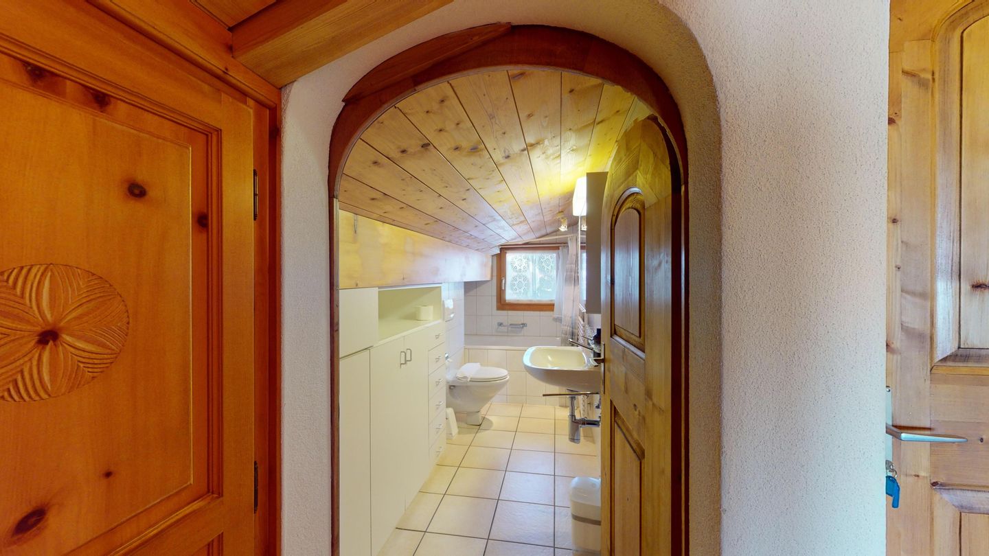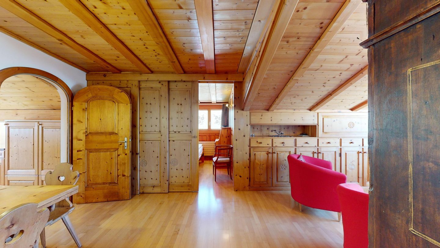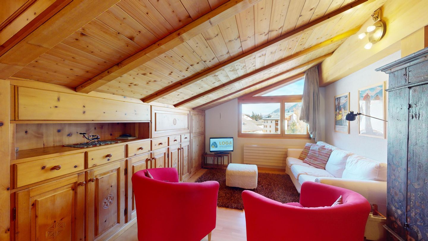 3-ZWG im Dachgeschoss. Entrée mit Garderobe. Wohn-/ Esszimmer mit Schlafbereich (zwei Einzelbetten). Kann durch Schiebetüre vom Rest abgetrennt werden. Sep. Küche mit Chicco d'Oro Kaffeemaschine. 1 Schlafzimmer mit Doppelbett. Badezimmer mit Wanne/WC/Lavabo. Achtung! Ausgeprägte Dachschräge im Badezimmer. TV und Internet. Kein eigener Parkplatz vorhanden (Aus- und Einladen vor dem Haus möglich), öffentliche Parkplätze im Quartier vorhanden. Nichtraucherwohnung. Haustiere nicht erlaubt.