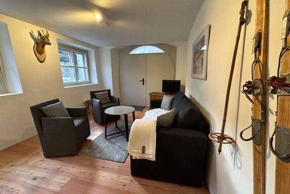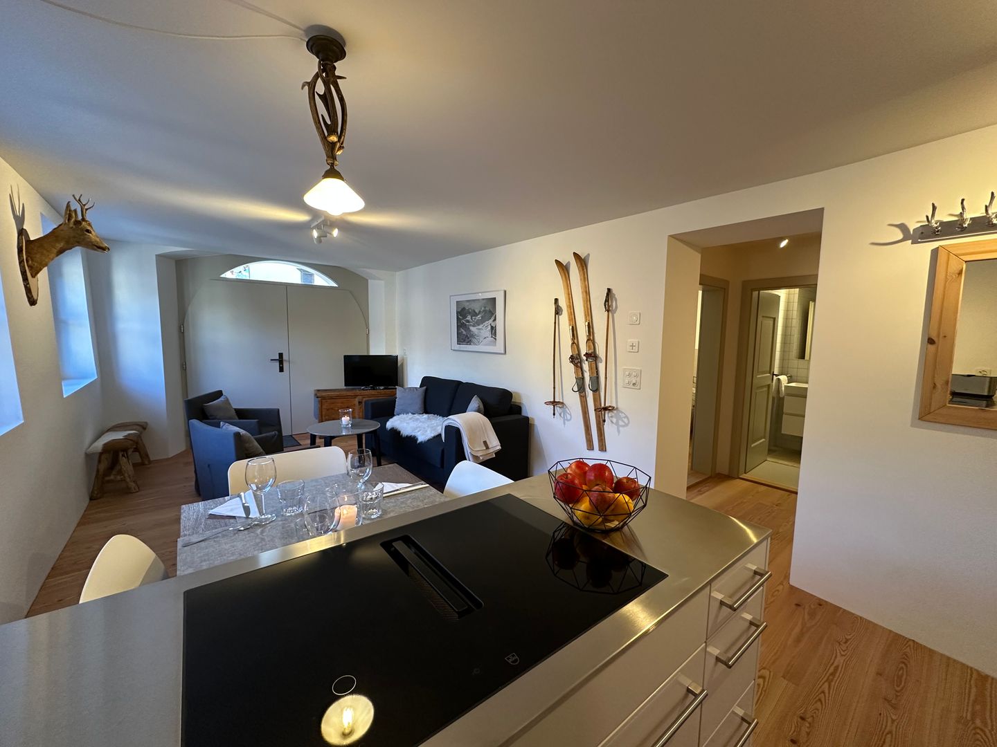 Die Bijou-Wohnung befindet sich in einem liebevoll renovierten, historischen Engadinerhaus und vereint den unverwechselbaren Charme der Region mit zeitgemässem Komfort. Dieses gemütliche 2.5-Zimmer-Apartment eignet sich perfekt für 2 Gäste, kann dank des komfortablen Bruno-Bettsofas auch von bis zu 3 Personen genutzt werden.