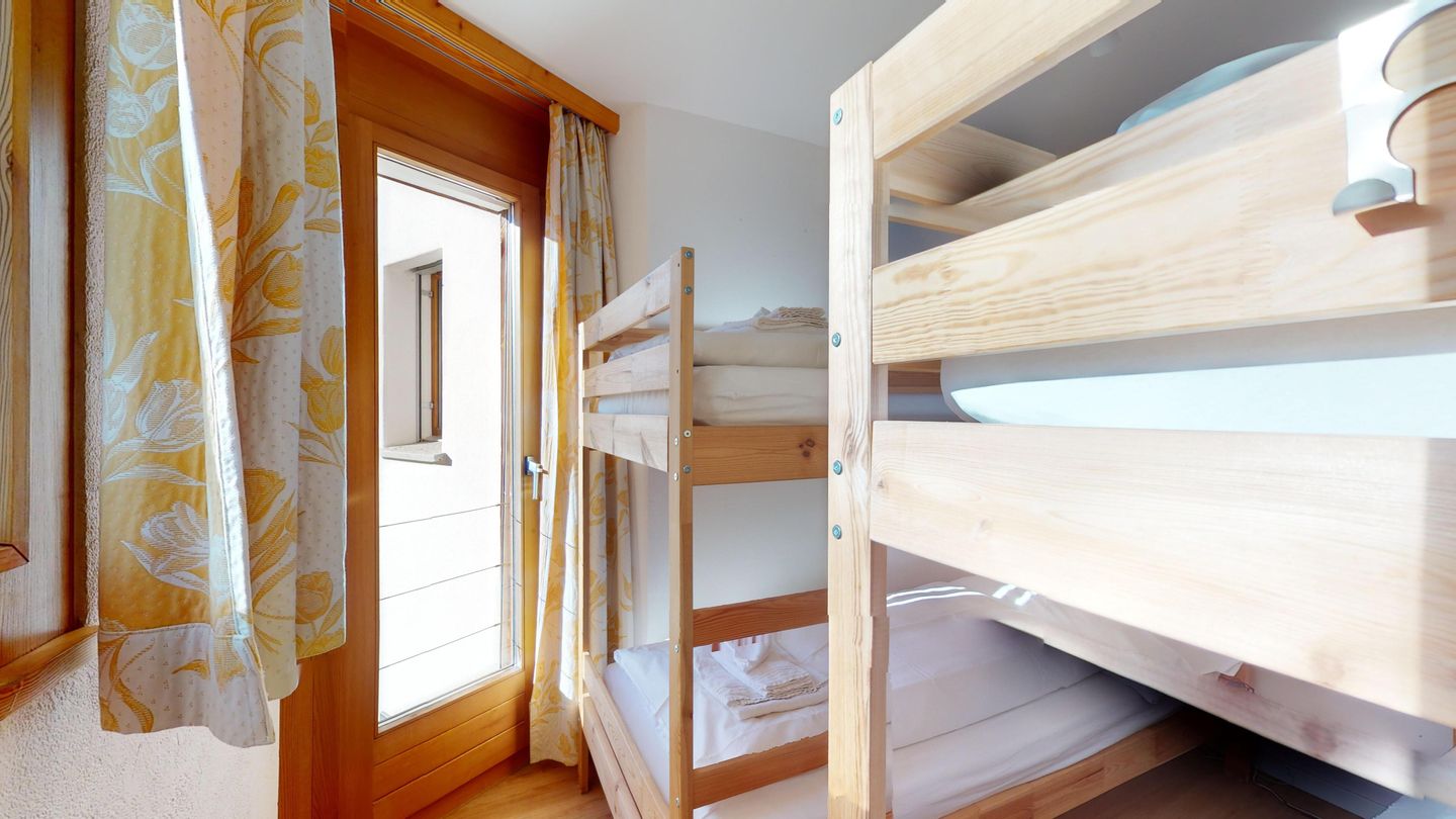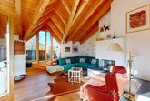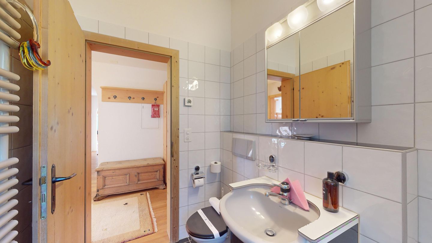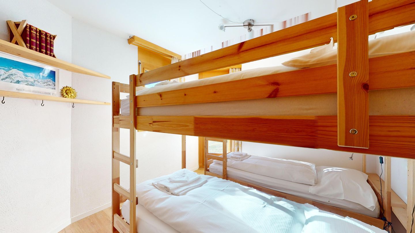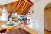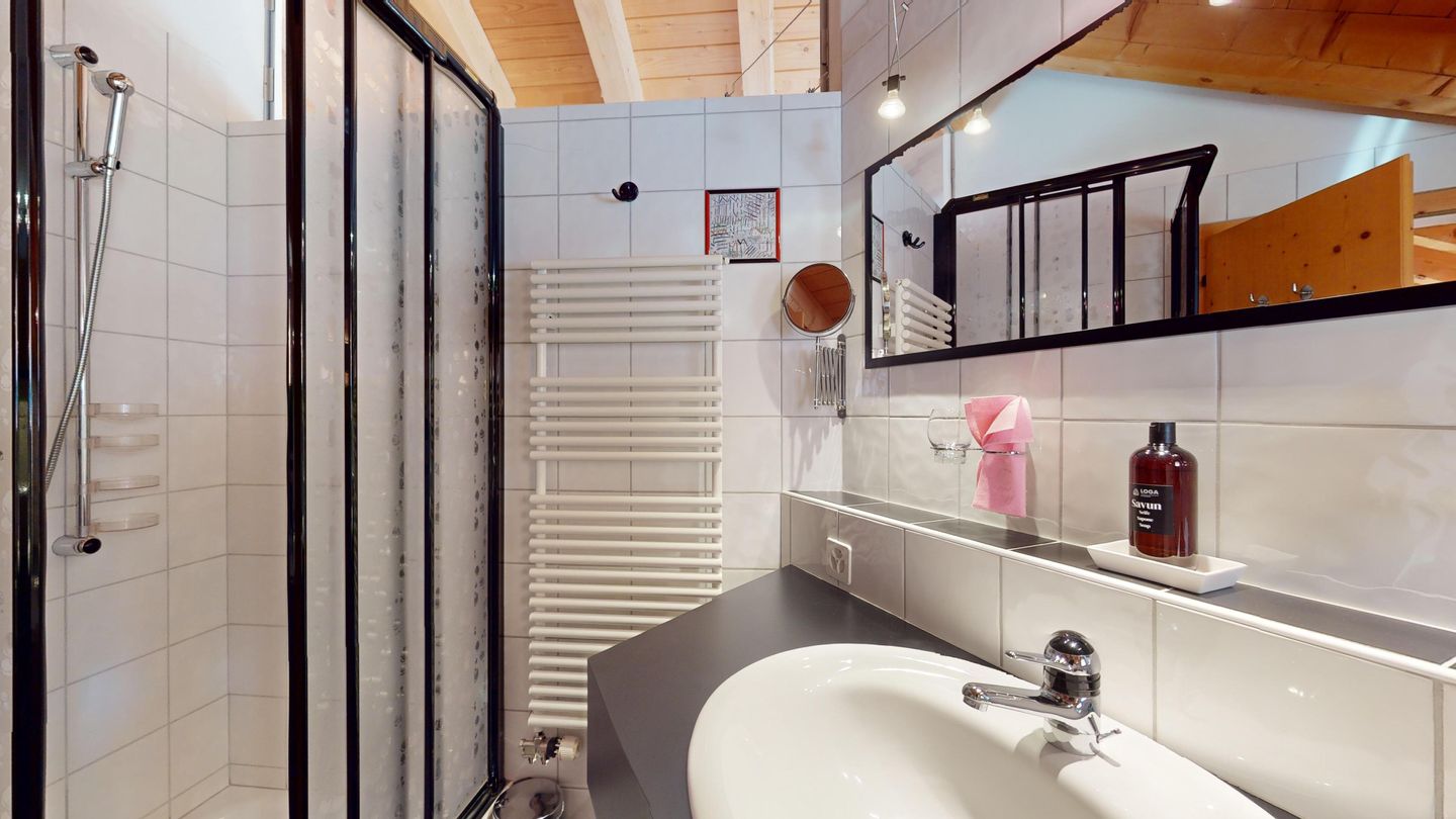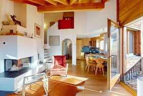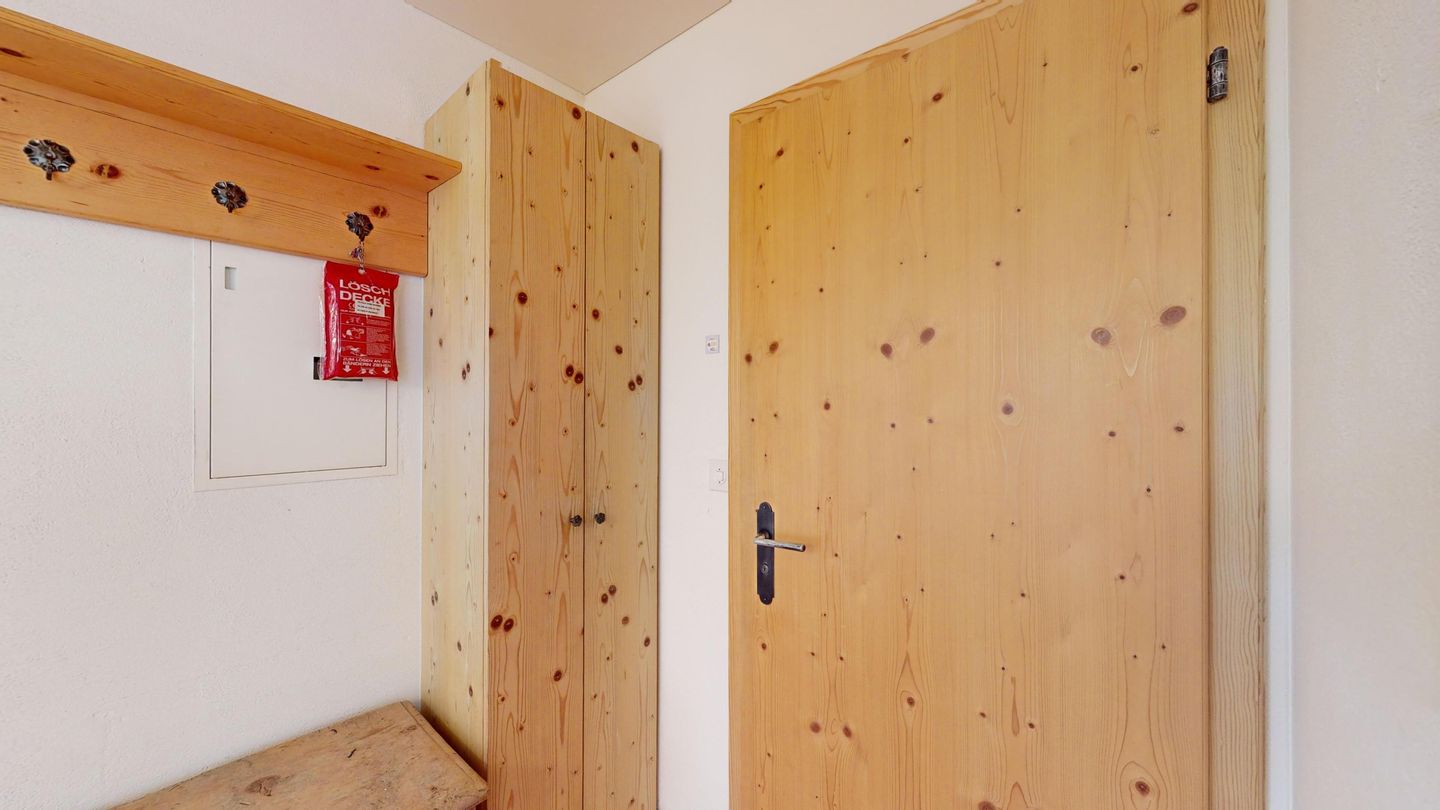 Maisonette 4-Zimmerwohnung im 1. Obergeschoss, Entrée mit Garderobe. Offene Küche mit Kühlschrank, Herd, Ofen und Geschirrspüler. Wohnzimmer mit Essecke, TV, Kamin und Ausgang auf den Balkon mit schöner Bergsicht. Ein Doppelzimmer mit Balkon und Treppe zur Wiese mit Gartensitzplatz (Gartenmöbel vorhanden). Badezimmer mit Dusche, WC, Lavabo, Waschmaschine und Tumbler. Ein Schlafzimmer mit zwei Etagenbetten. Auf der oberen Etage ein zweites Doppelzimmer und ein Badezimmer mit Wanne, Dusche, WC und Lavabo. Zwei Parkplätze in der Garage (Höhe 200cm, Breite 280cm). Nichtraucherwohnung. Haustiere sind nicht erlaubt.