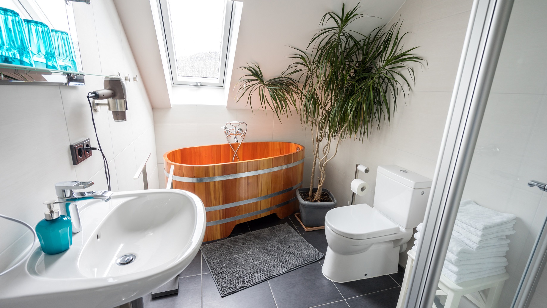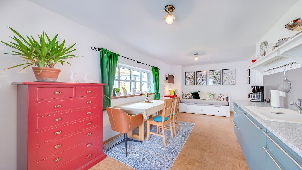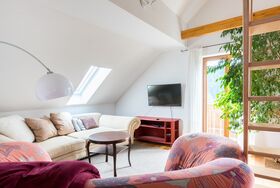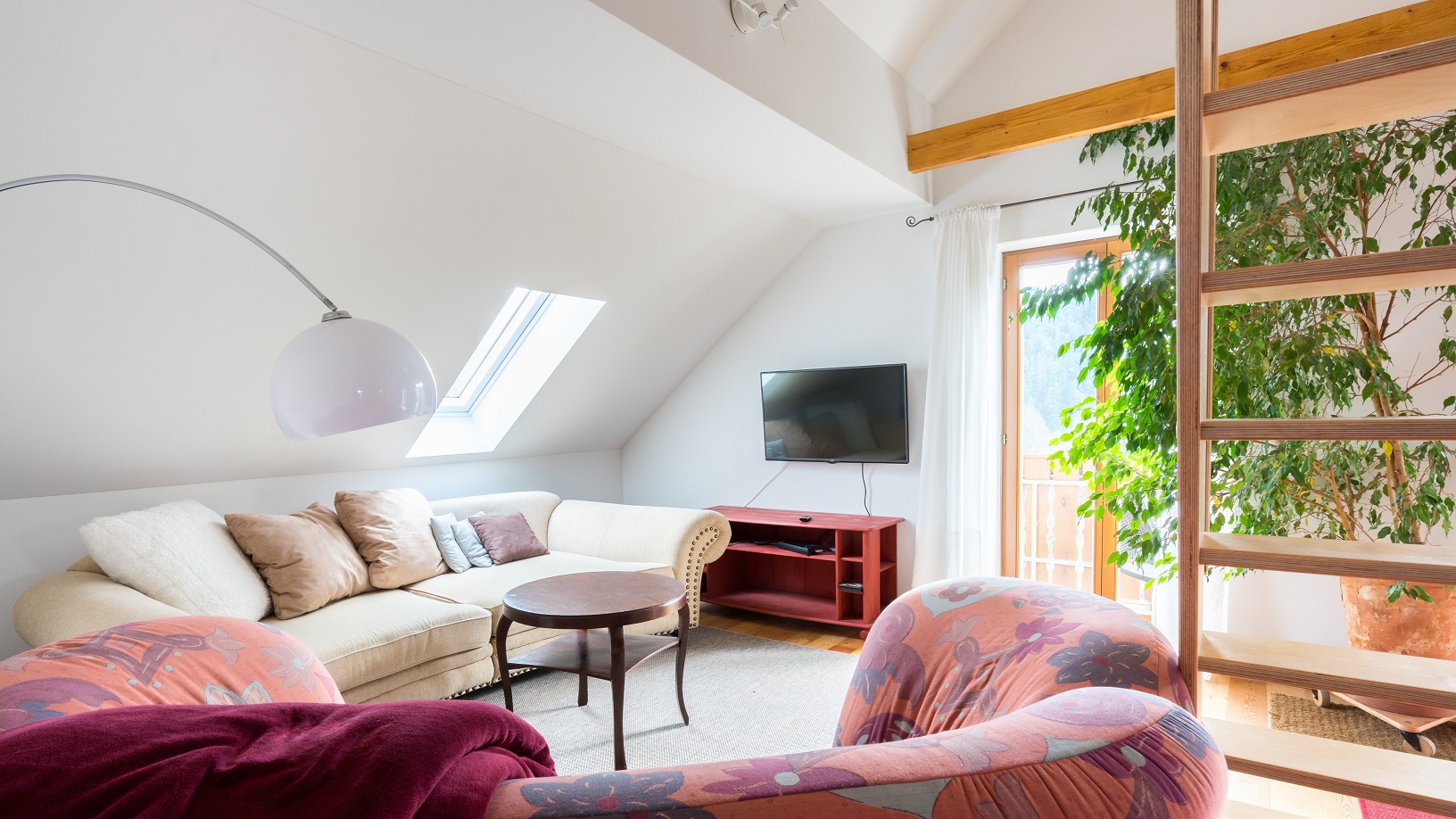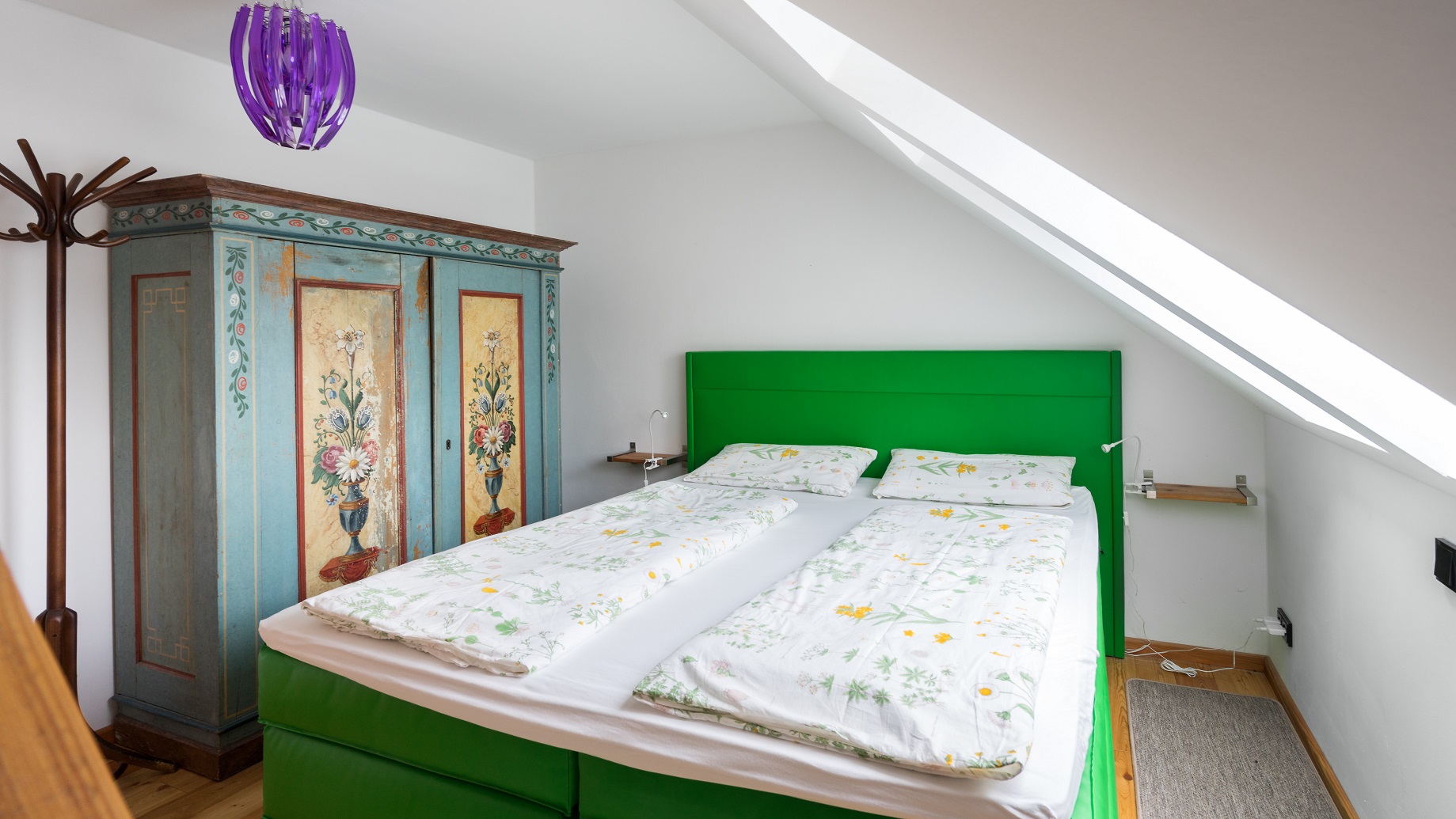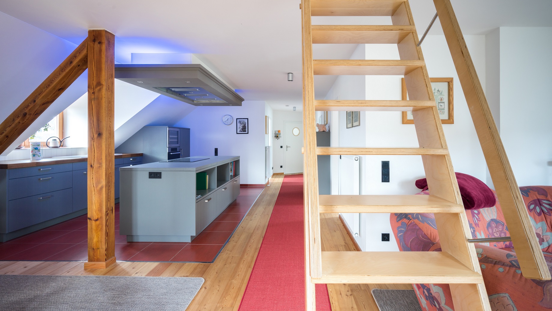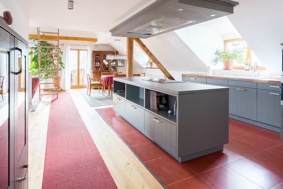 Die erste von unseren Ferienwohnungen wurde 2015 unter dem Dach des Bauernhauses fertiggestellt. Auf 86 qm erwarten Sie 2 Schlafzimmer, ein offener Wohn- und Eßbereich mit Gallerie, sowie eine Küche mit Kochinsel, die kaum Wünsche offen lassen kann. Das Bad lädt mit einer Lärchenholzbadewanne zu Ruhe und Entspannung ein. Vom Balkon schweift ihr Blick auf Wald und das Pfreimdtal. Seit 2018 ist die Wohnung mit 4 Sternen vom Deutschen Tourismusverband ausgezeichnet.