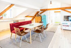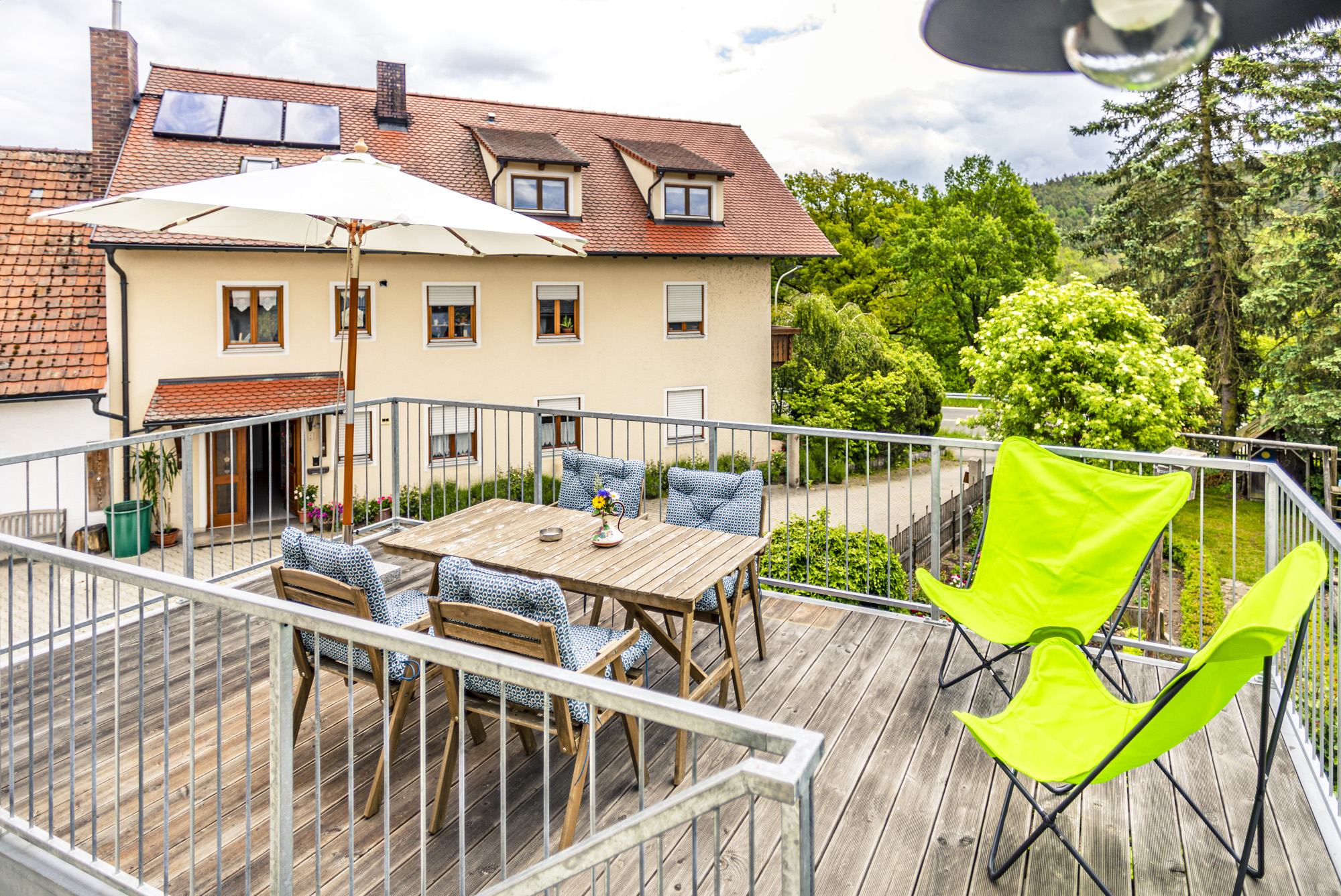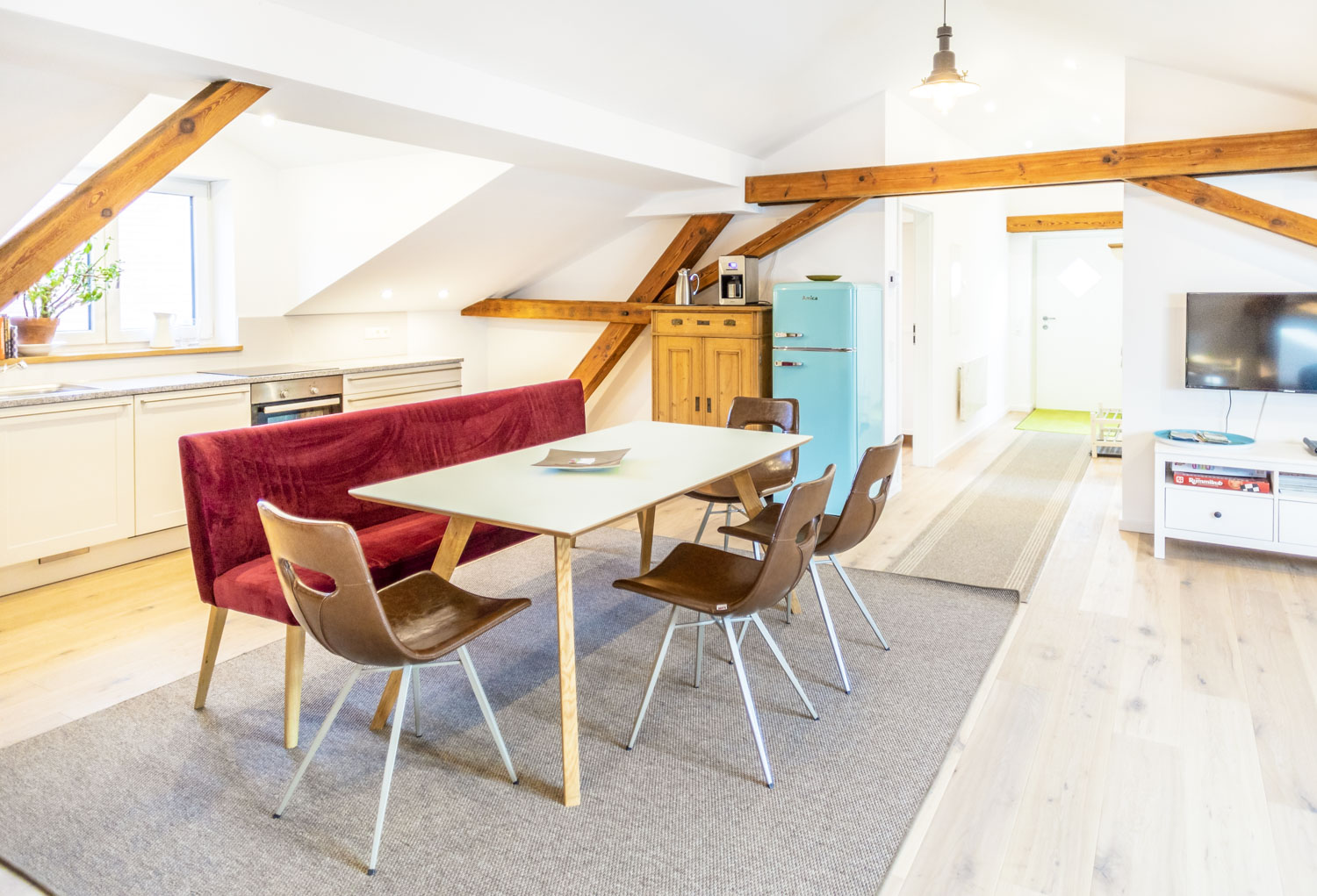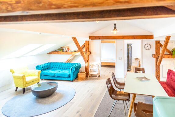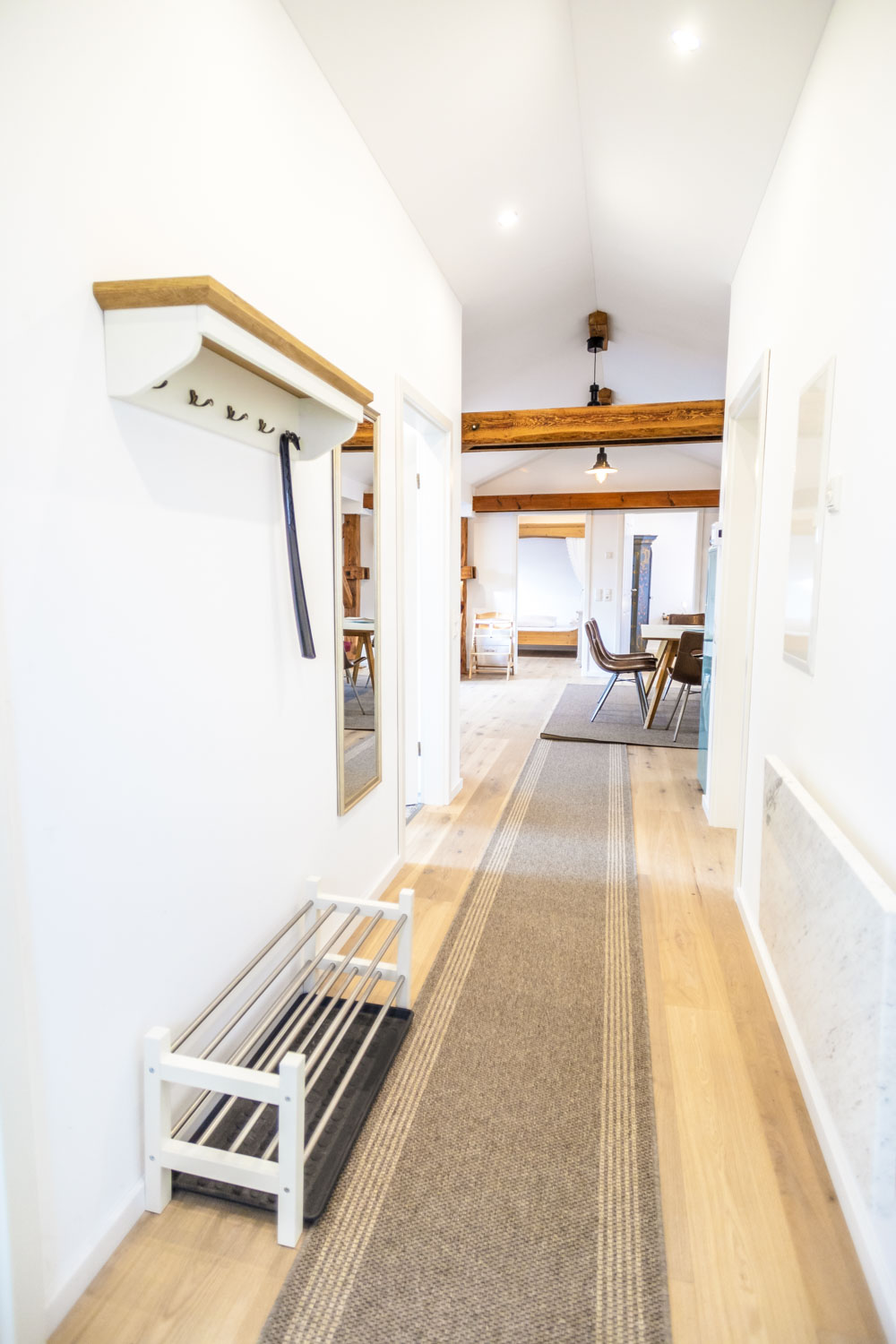Im Jahr 2019 ist im ehemaligen Getreidelager die große Ferienwohnung Eiche entstanden. Über eine separate Eingangstreppe mit angrenzendem, großzügigen Balkon, gelangen Sie in eine optisch offen gehaltene Wohnung. Es erwarten Sie hier 3 Schlafzimmer, ein Bad mit freistehender Emailbadewanne und Dusche, separaten WC mit Waschmaschine, sowie eine komplett eingerichtete Küche mit großem Esstisch und angrenzendem, gemütlichen Wohnbereich.