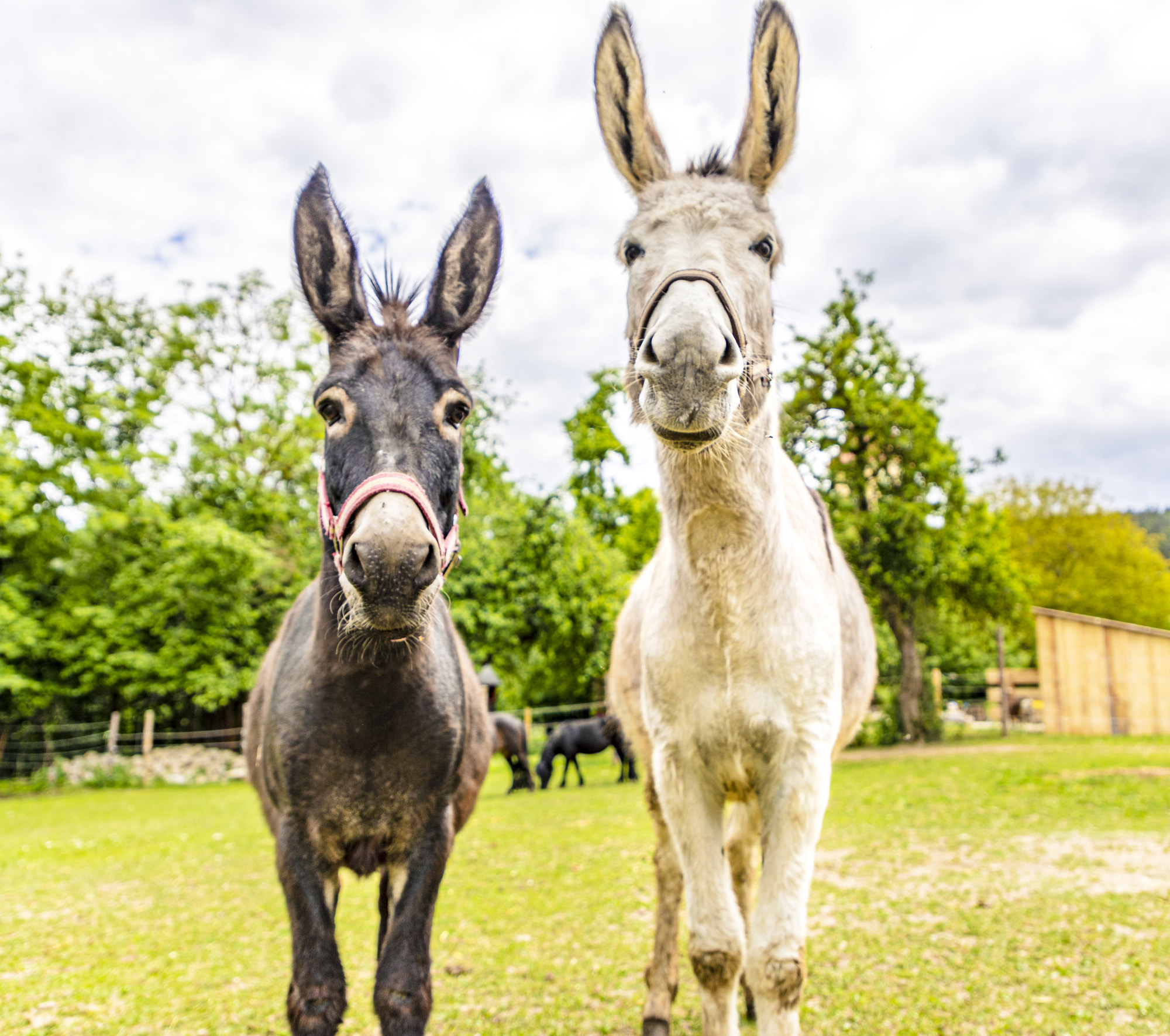 Unsere zutraulichen Tiere – darunter Esel, Ponys, Pferde, Schafe, Ziegen, Hasen, Meerschweinchen, Tauben, Minischweine, Hund und Katzen – freuen sich über liebevolle Streicheleinheiten. Für kleine Gäste gibt es geführtes Ponyreiten und spannende Eselswanderungen.